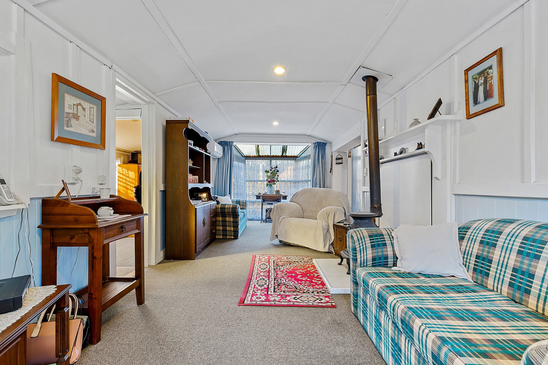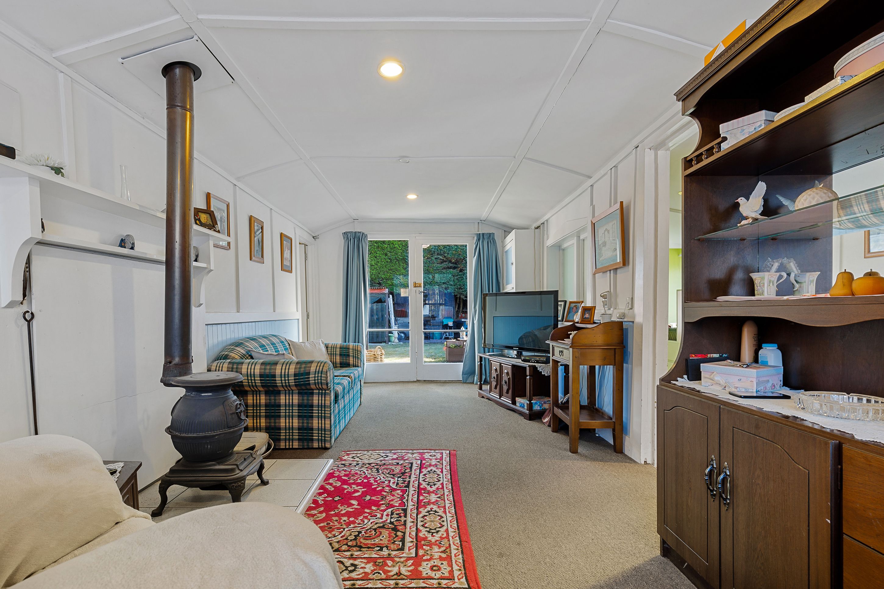 The home itself, also known as the "Blue House", offers cosy and peaceful daily living. Accommodation is provided by two bedrooms - one single bedroom currently set up as an office & one genuine double bedroom which adjoins a sunroom or child's nursery. The open plan dining/living stretches the length of the home (so very well heated by the pot belly fire), French doors lead to the covered deck and backyard beyond and the functional kitchen with an upright stove has plenty of storage space. Equally as functional is the bathroom and combined laundry, maximising space and is mighty convenient too!
