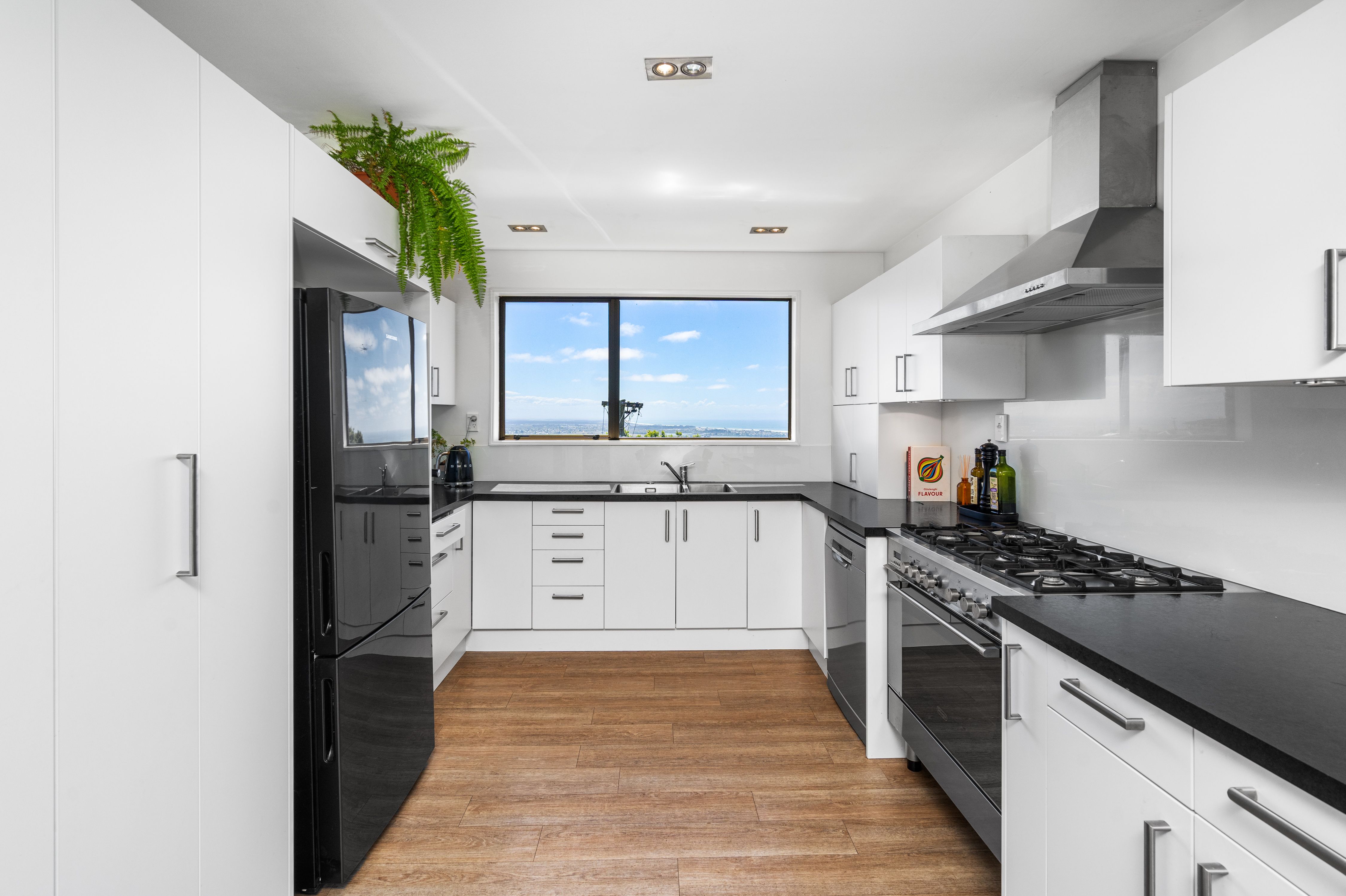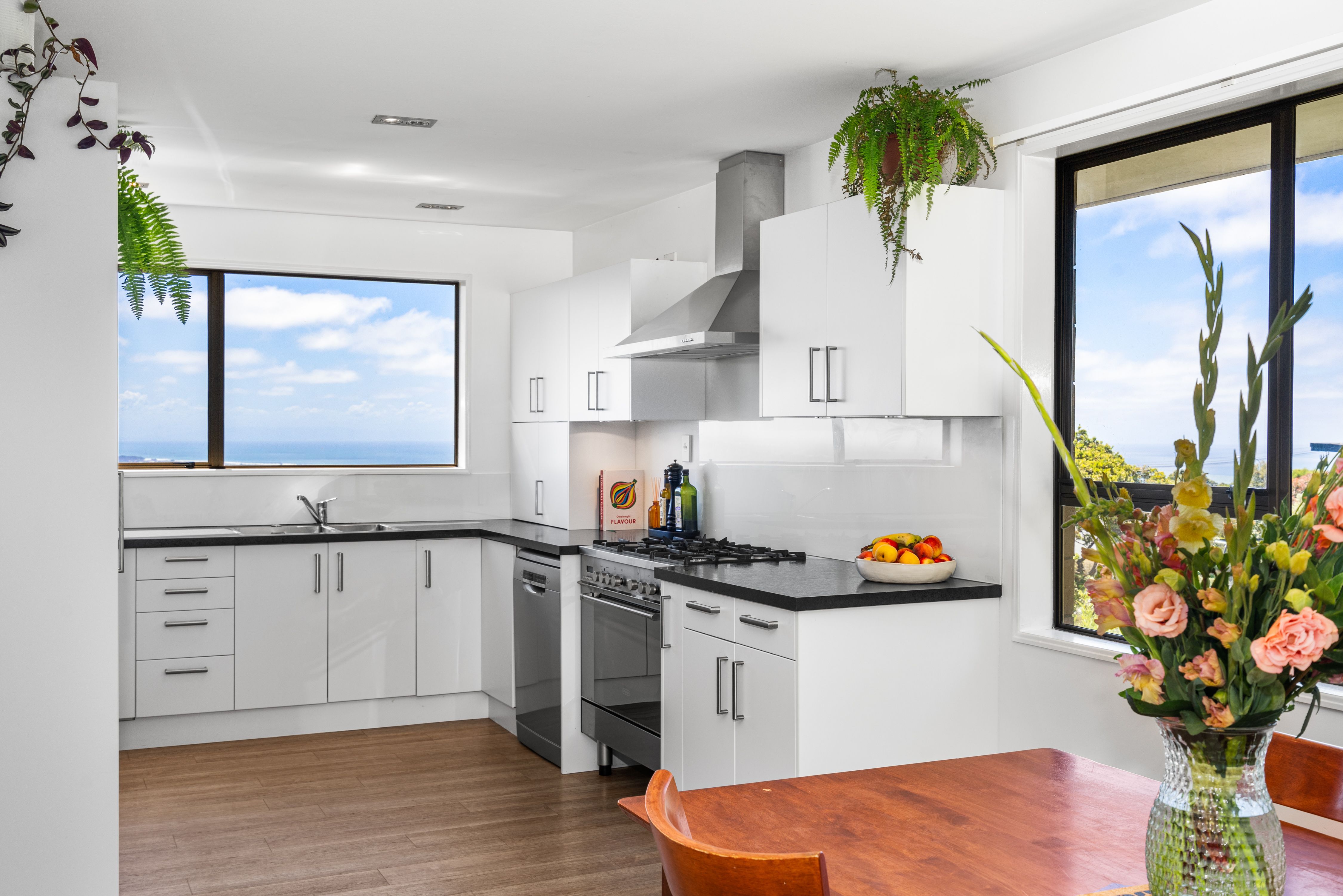 The spilt level layout maximizes space and outlooks. The sun-soaked living room is positioned to take in the sweeping vistas, while the open-plan kitchen and dining area extend the panorama, blending practicality with style, plenty of bench space, new appliances and a lovely outlook.