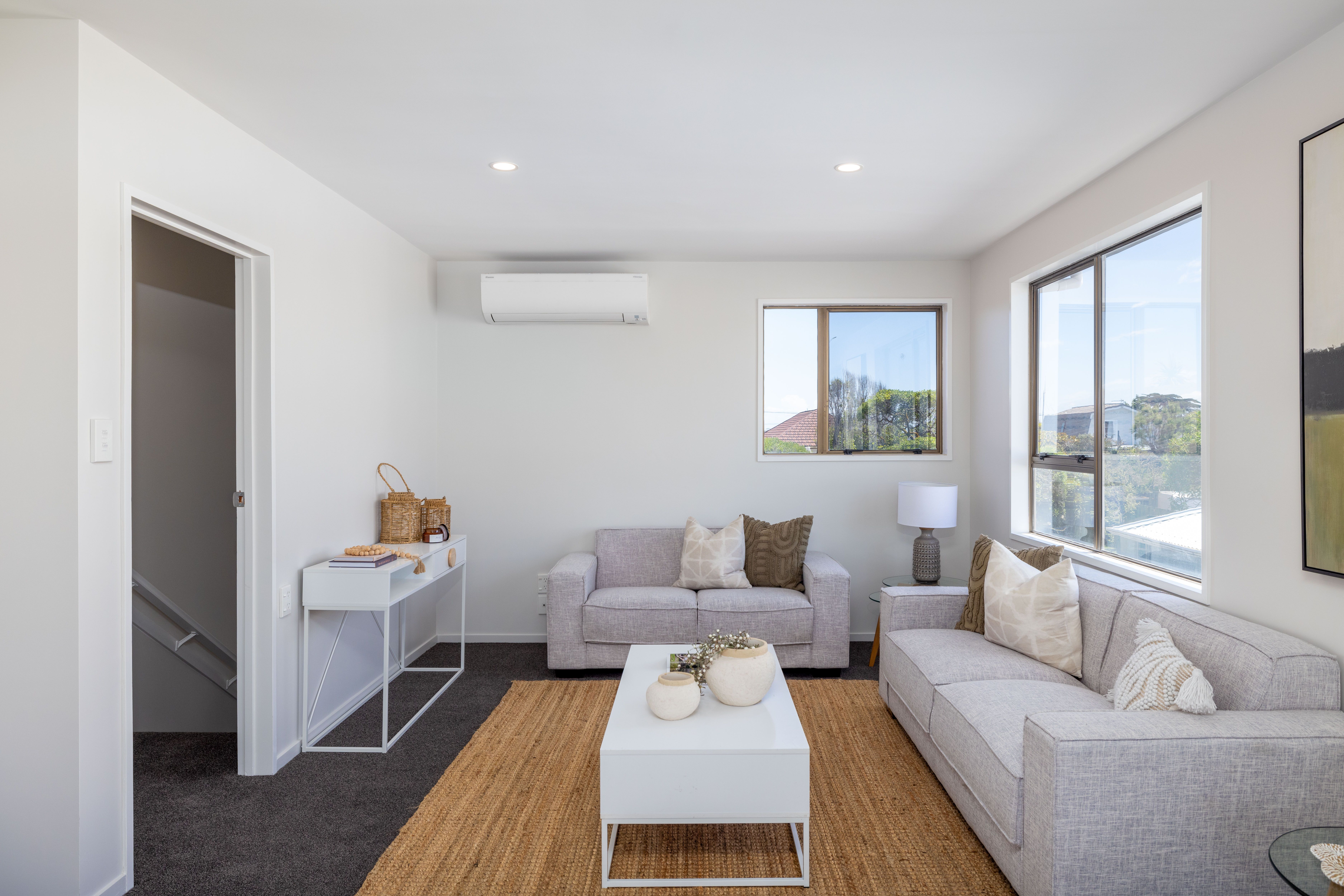 - Upstairs living room with balcony access