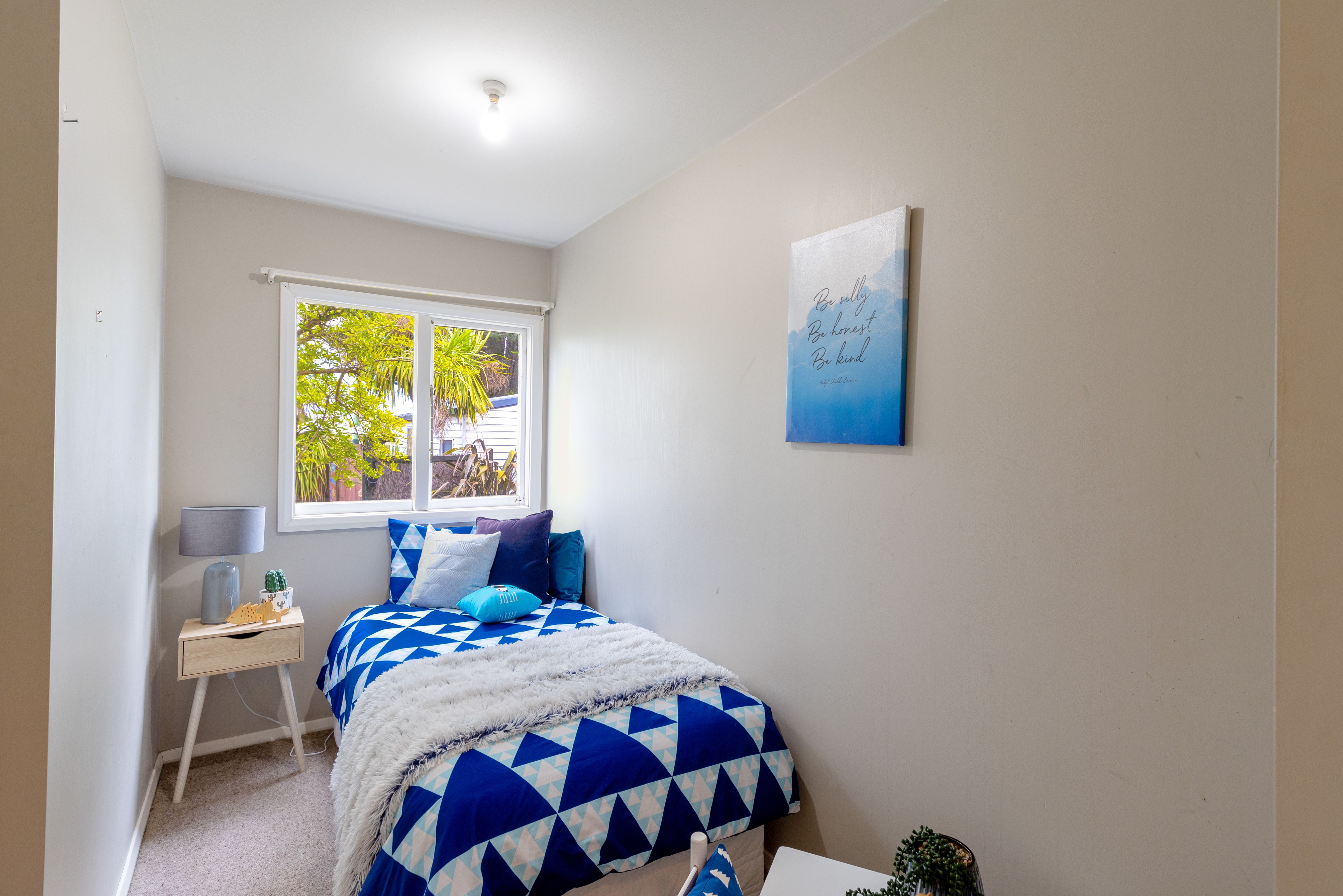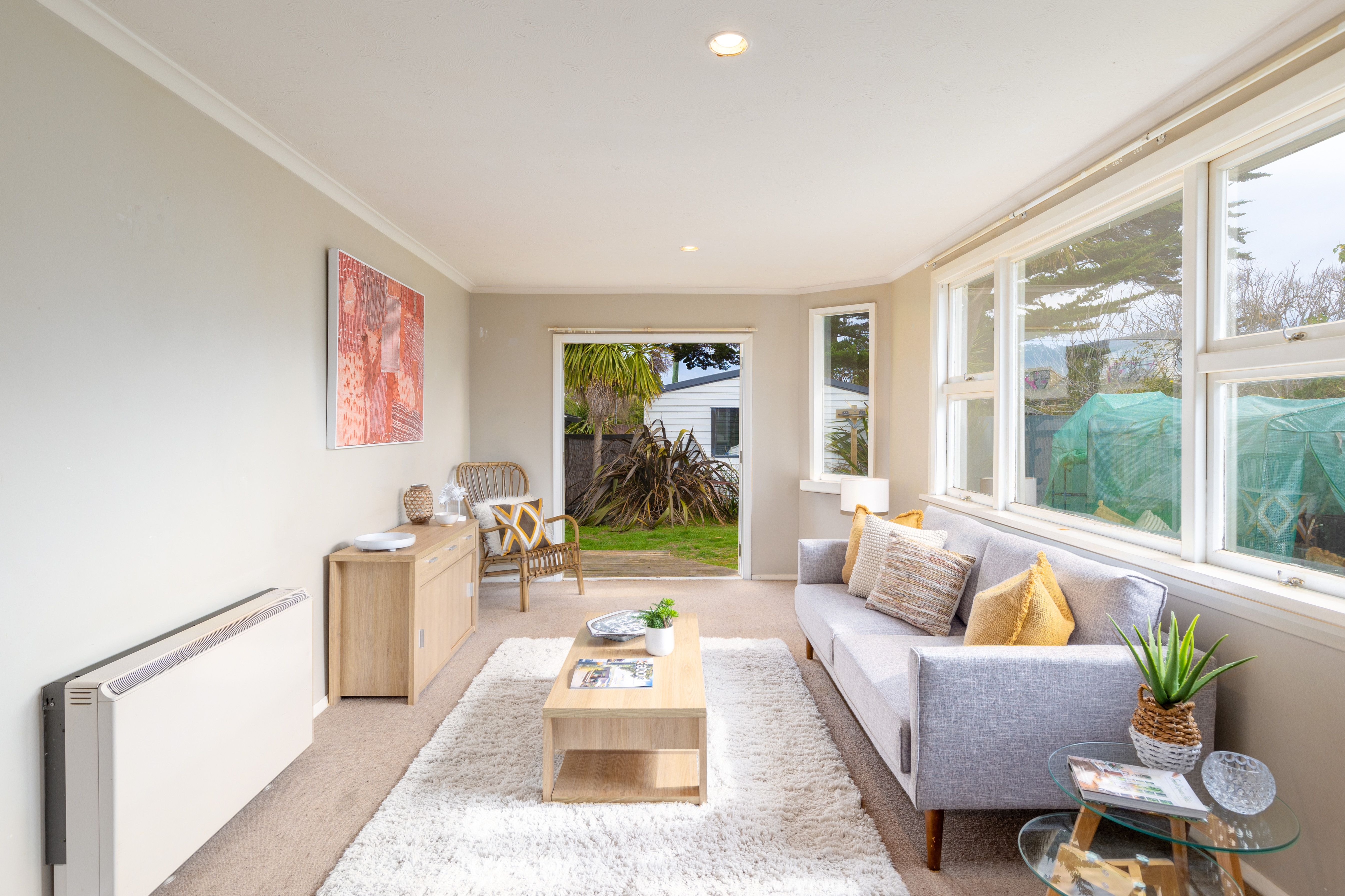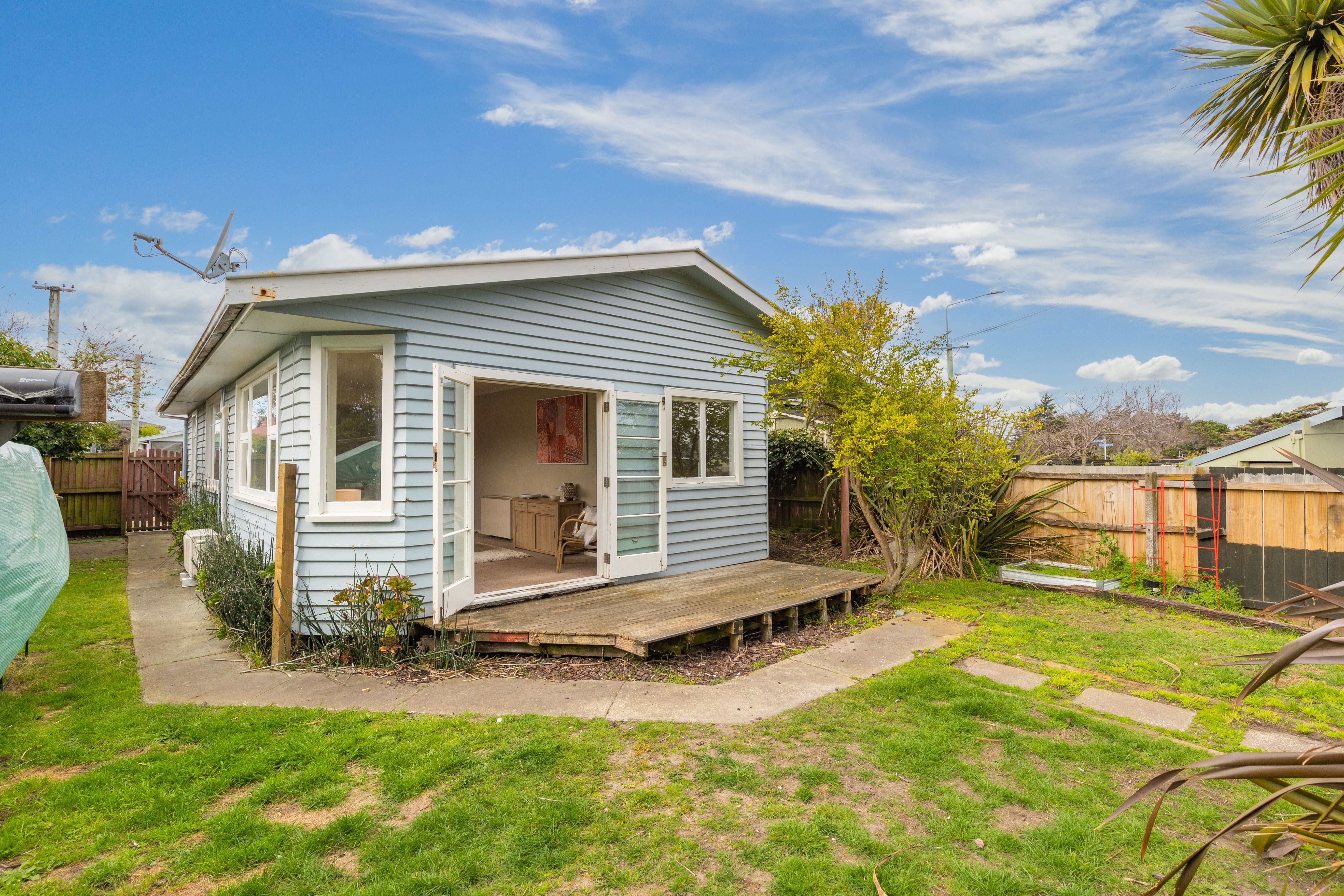 Currently two double bedrooms & one single. Open plan kitchen / dining / living with french doors to deck and yard.