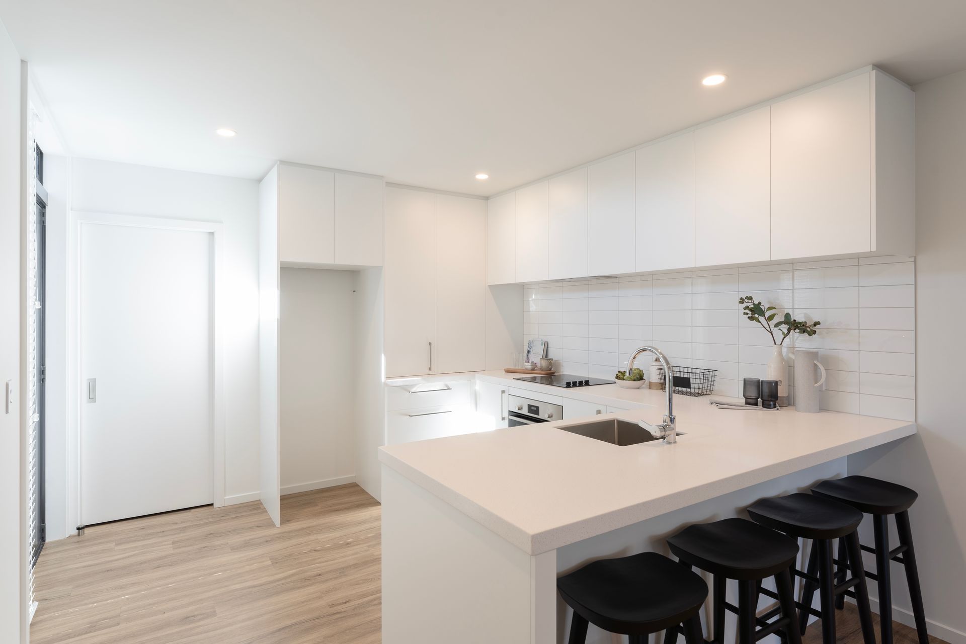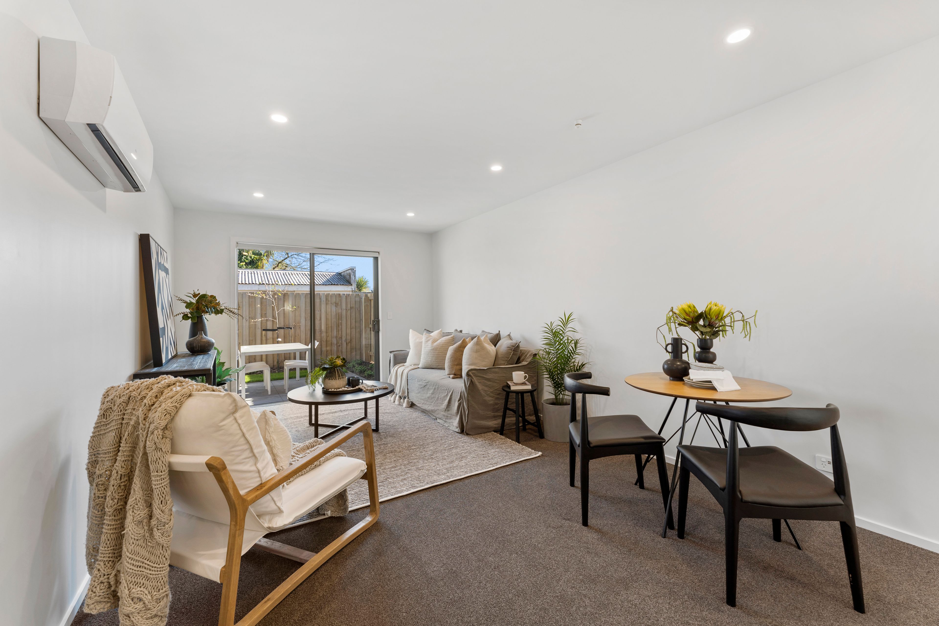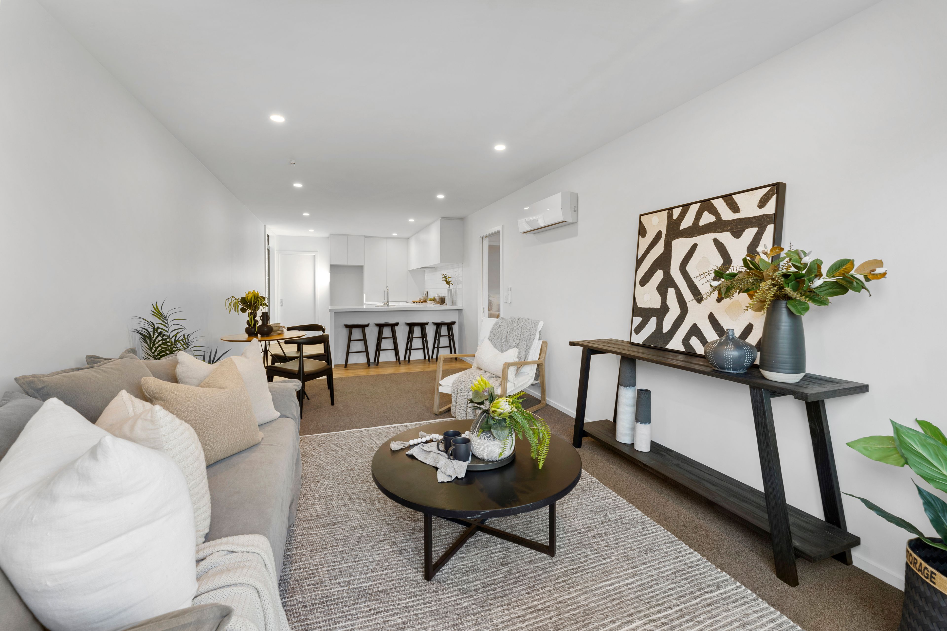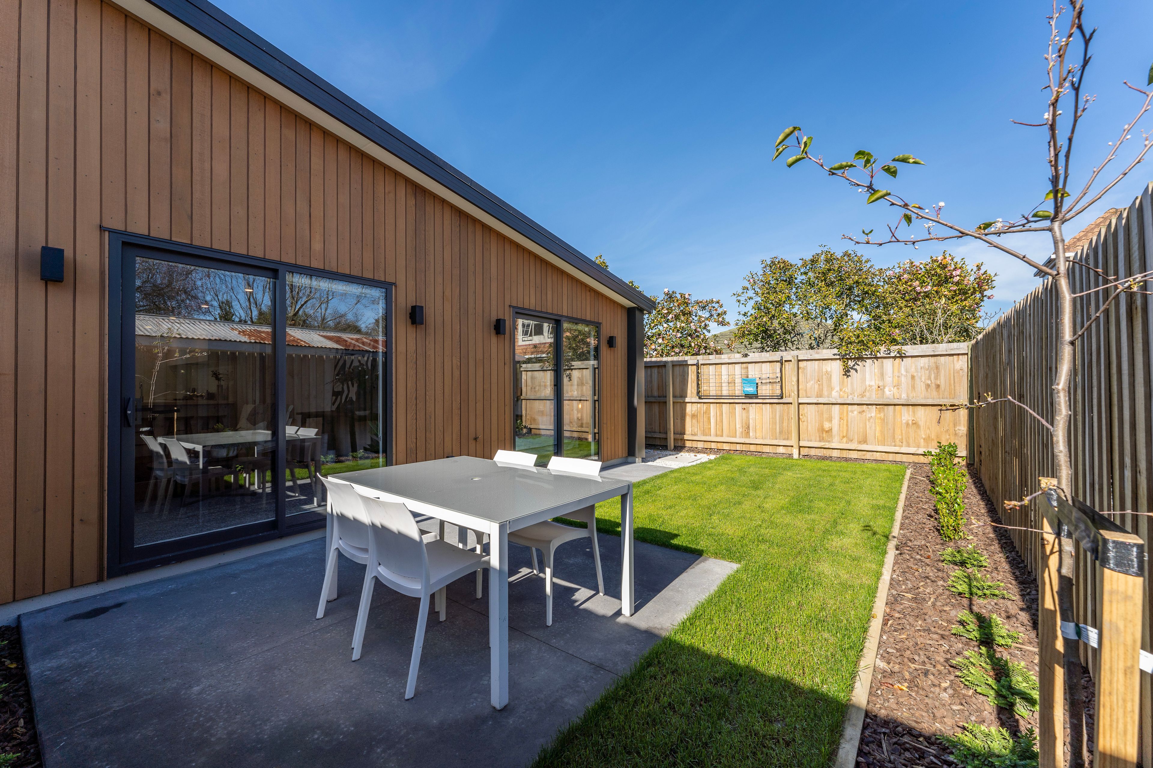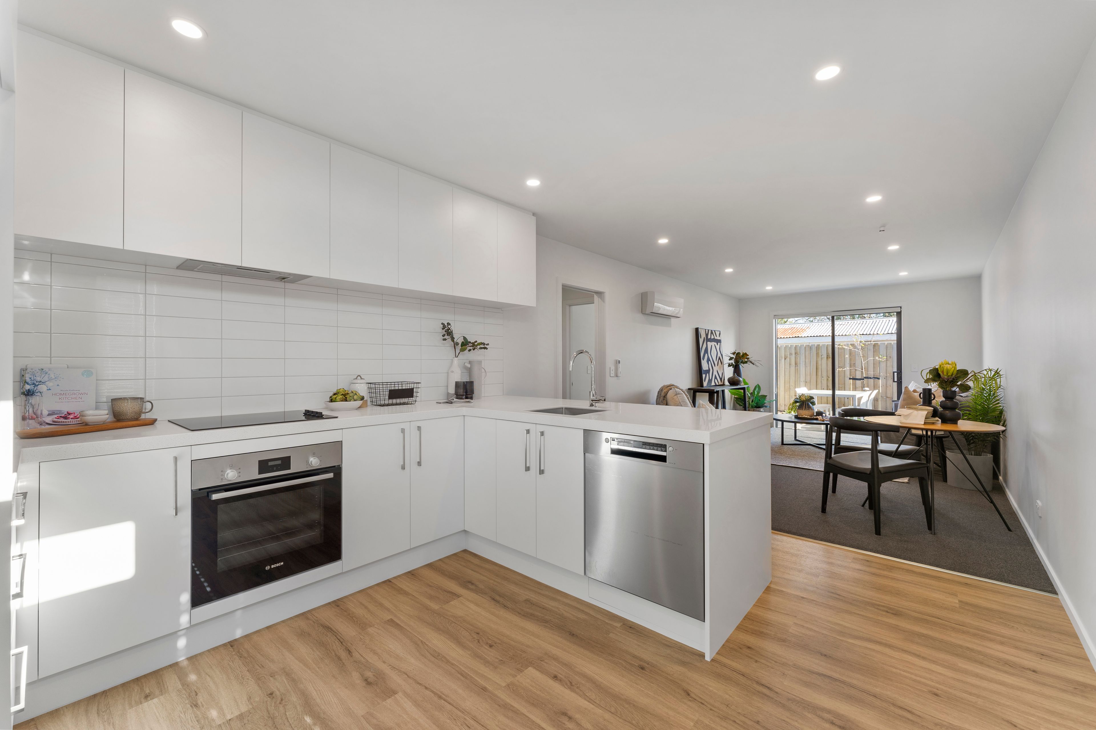 A thoughtful layout maximizes the space and offering a seamless flow. The open-plan living and dining area is designed to inspire relaxation where you can unwind in a space that also offers privacy. The modern kitchen is equipped with Bosch appliances, ample storage, and chic countertops, making cooking an enjoyable experience. The bathroom boasts sleek fixtures and a clean design. Secure internal access garaging adds to the convenience.
