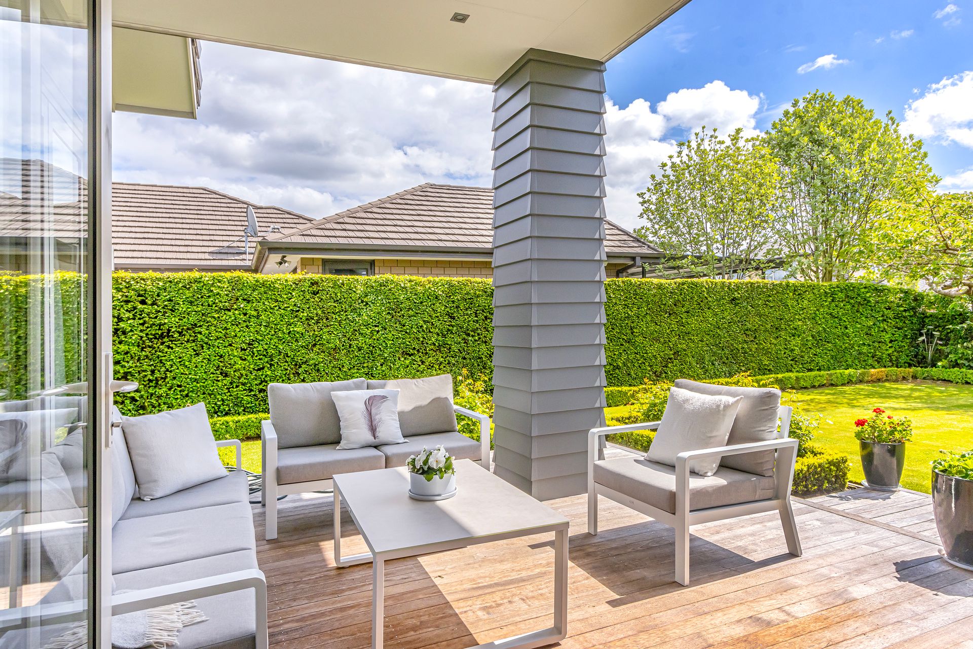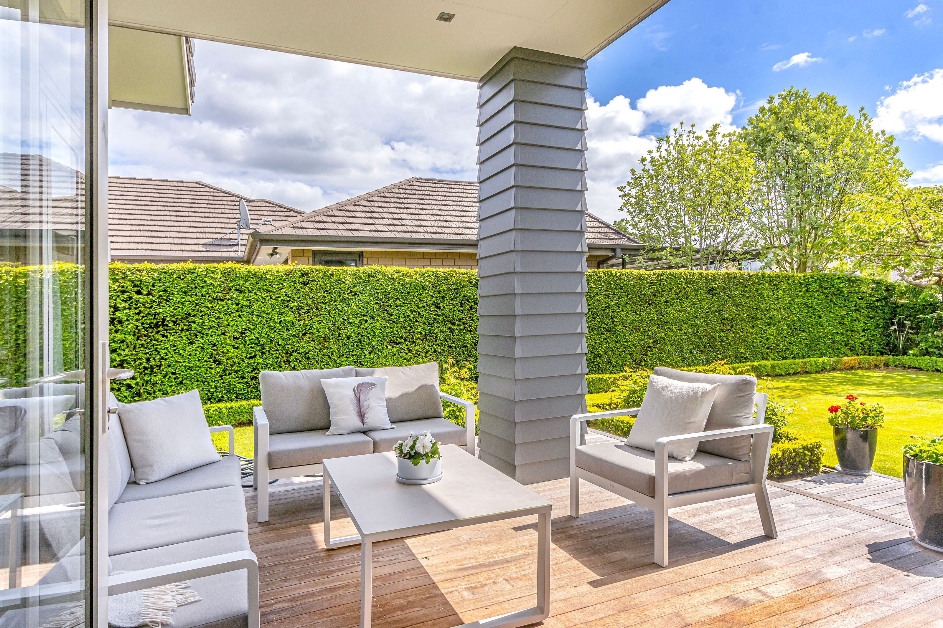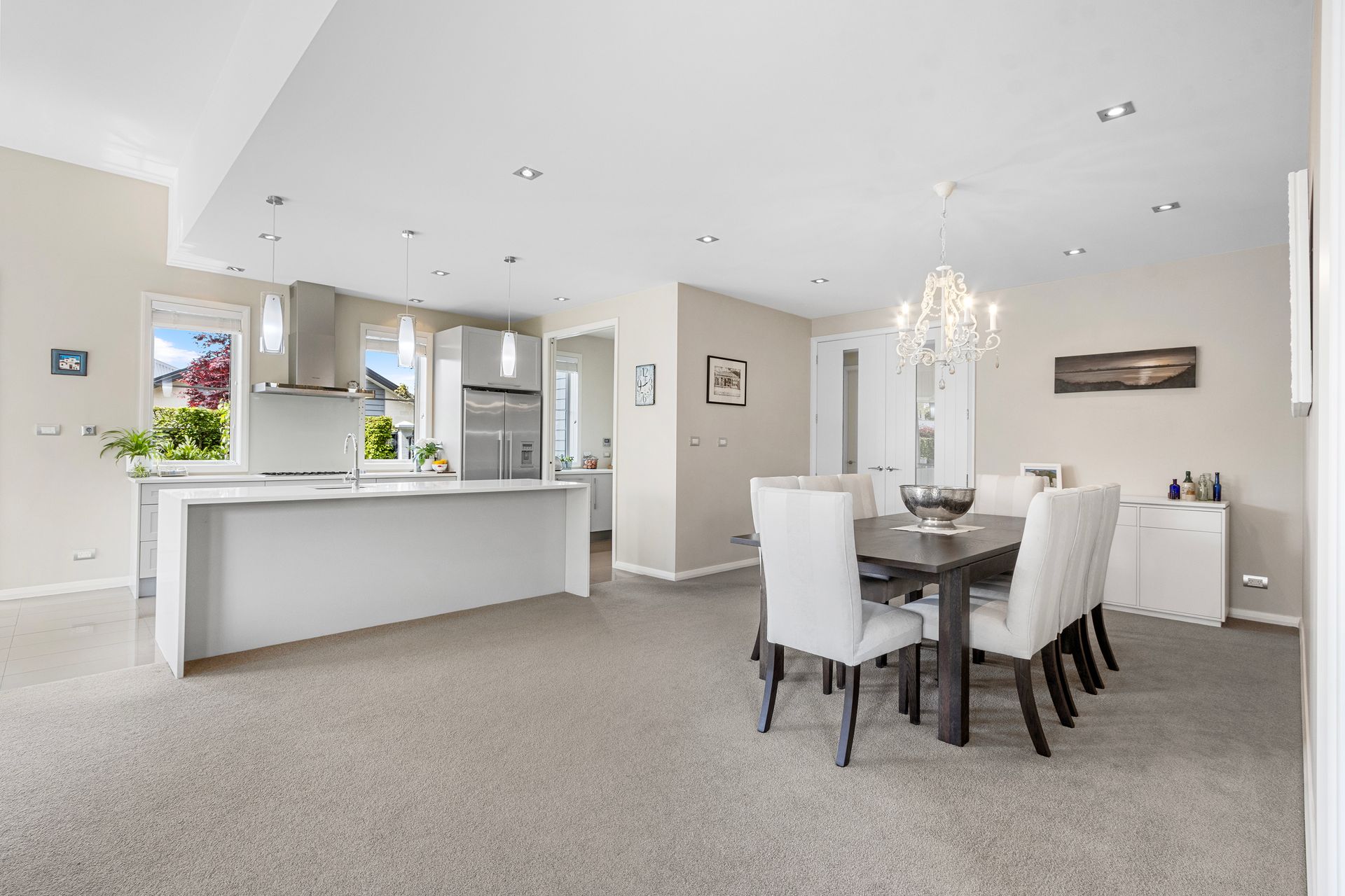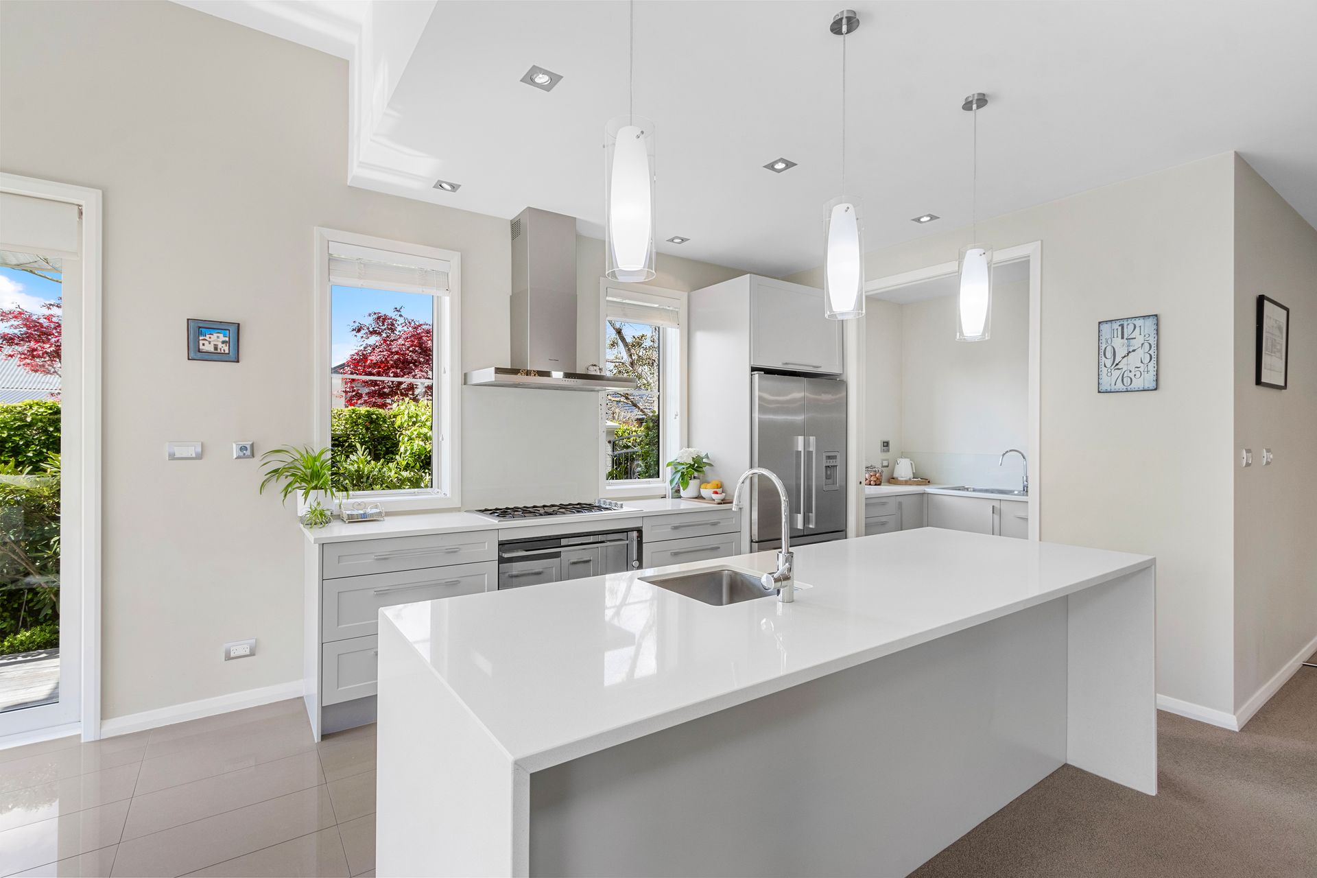 The home is drenched in natural light with doors leading to two decking areas overlooking established manicured gardens where you can easily imagine relaxing with a morning coffee, or alfresco dining anytime.