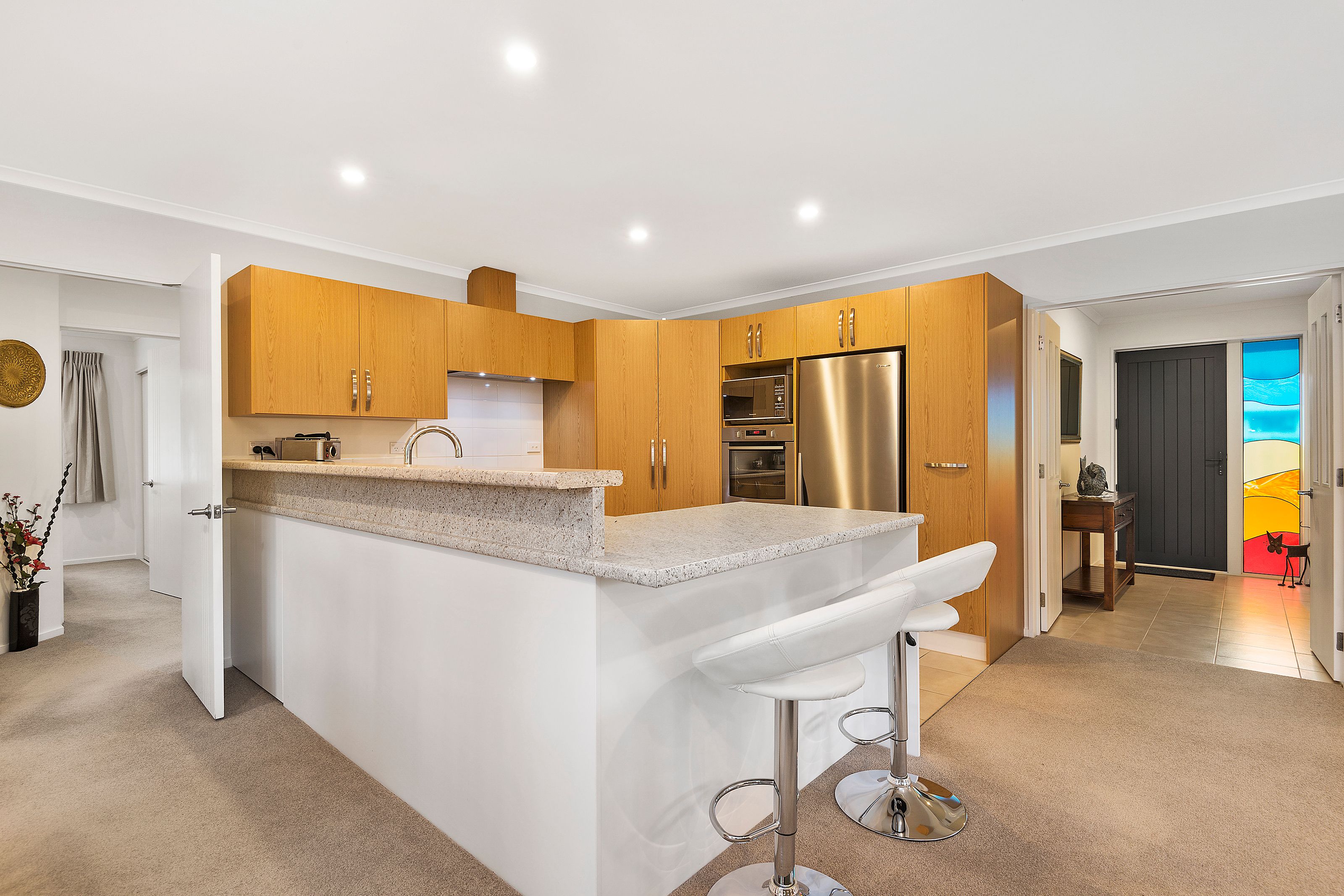 Built in 2014, this home offers more than just space to call your own. From the entrance of the home you will find the foyer beautifully detailed with stained glass which bathes the entranceway in a multitude of coloured light from afternoon to evening. This space of the home is great for greeting family and guests alike or simply just kicking of the shoes and boots at the end of the day before you head on through to rest of the home.