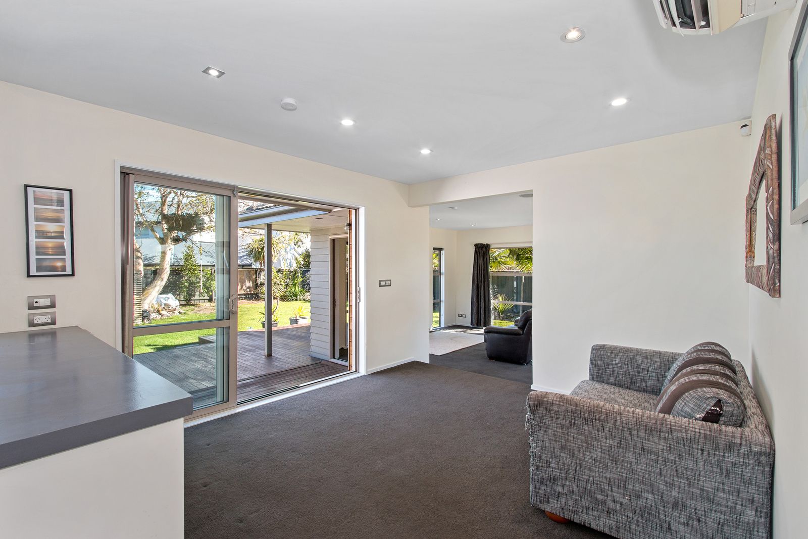 - Open plan living and dining with two sets of sliding doors