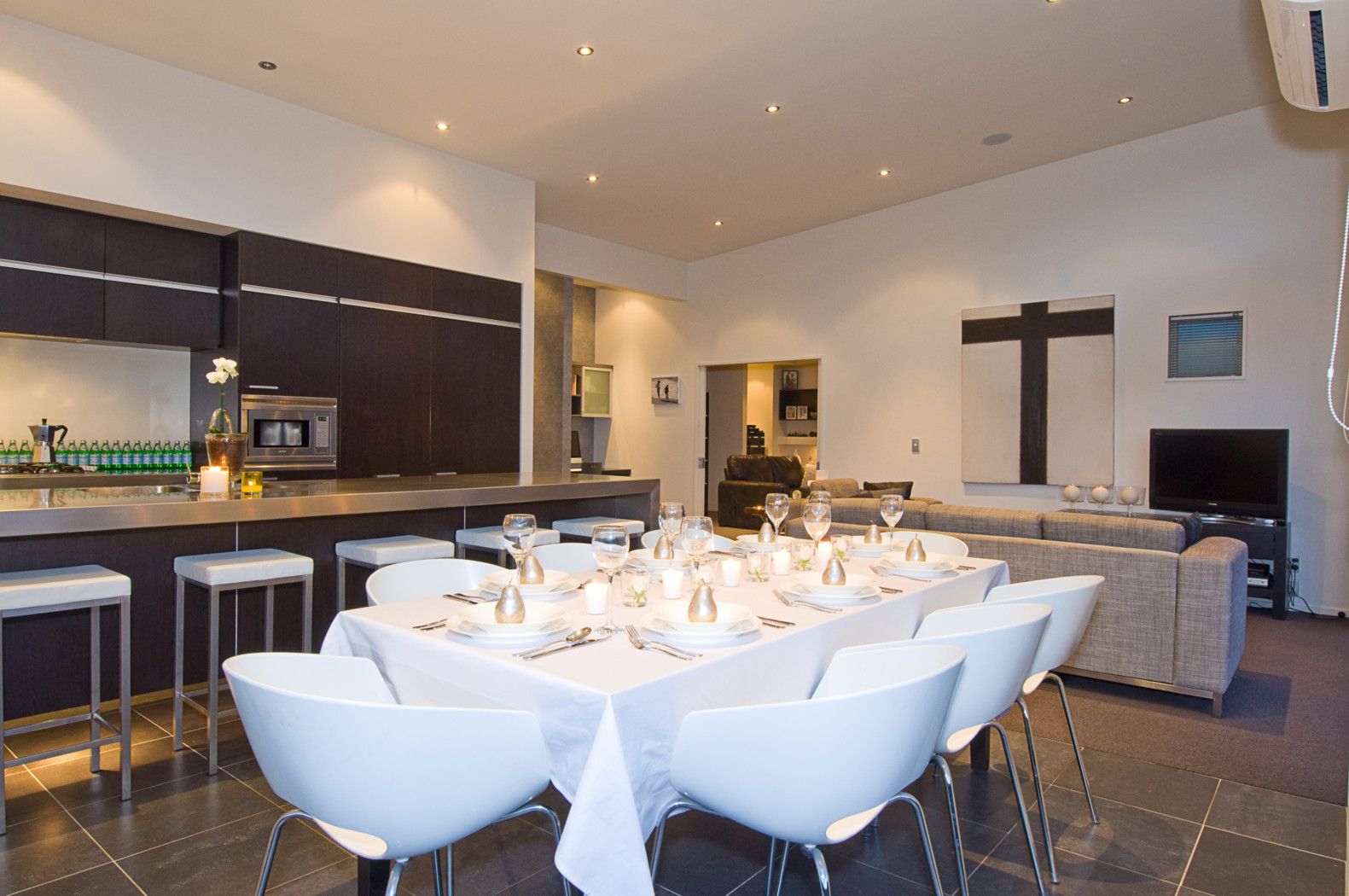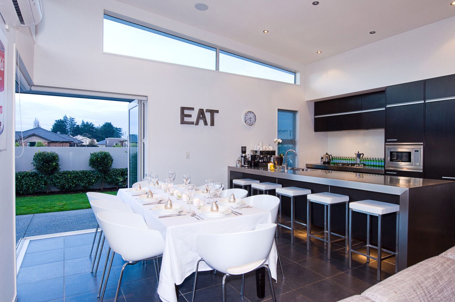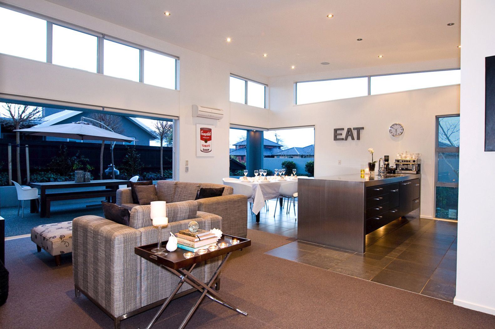 The impressive entrance is your first chance to grasp the scope and class of this home, while the appealing polished block detailing and Celcrete exterior construction offers the reassurance of solidity. The high ceilings and clerestory windows create natural light and warmth for the informal living areas which are complemented by a fully integrated designer kitchen of uncompromising quality.