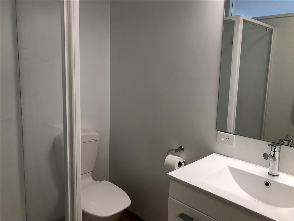 Open plan modern kitchen and living with ranchslider out to private courtyard. Good size bedroom, with good storage.