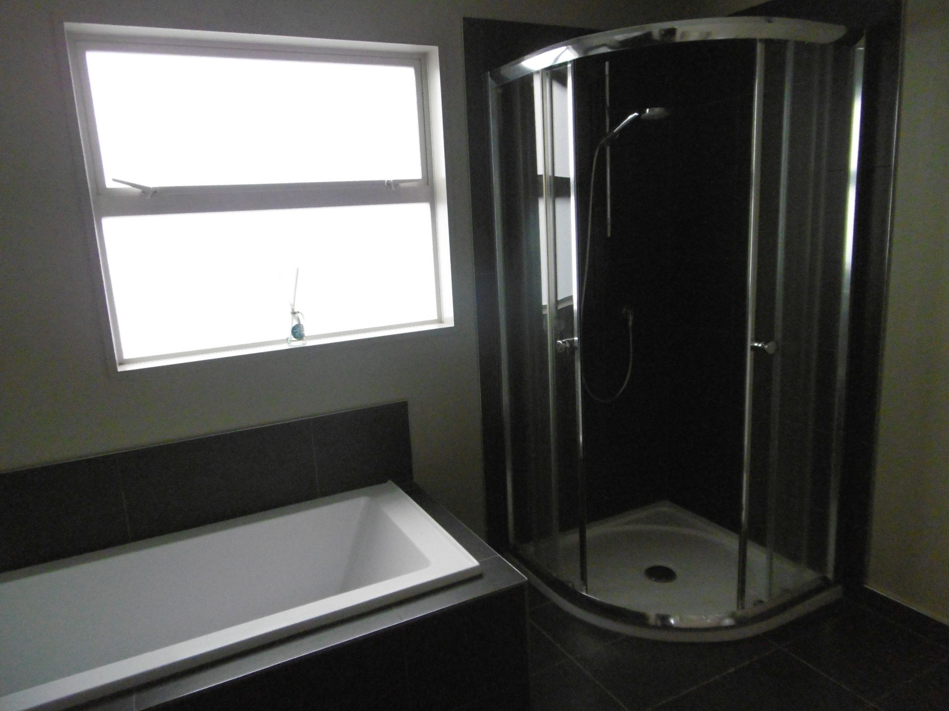 - Large bathroom with shower and bath upstairs, separate toilet with basin downstairs