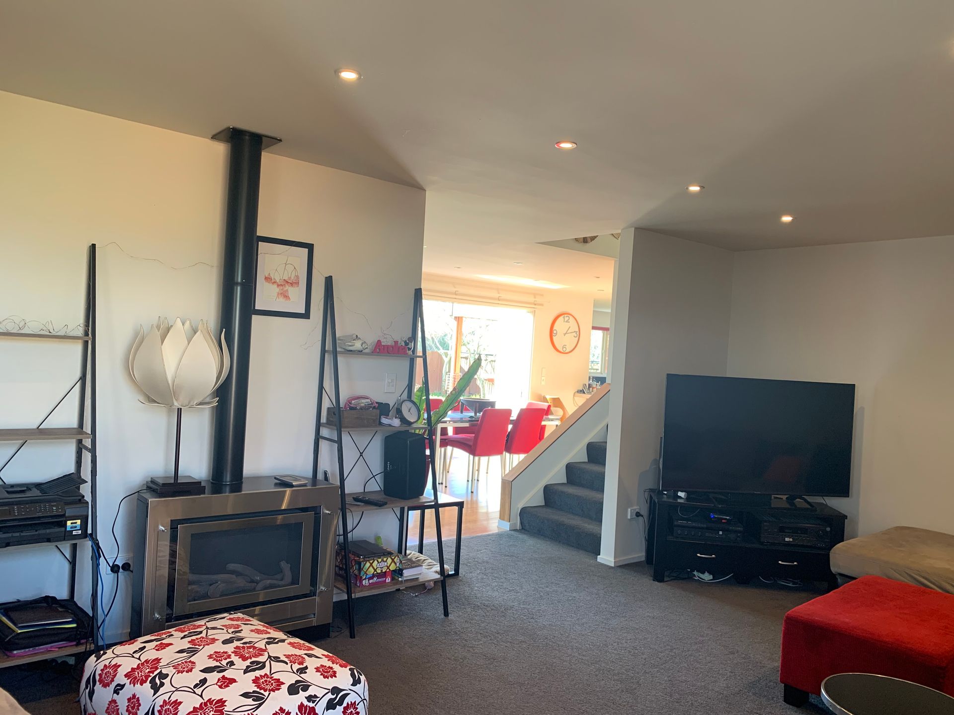 There is a gas fire, big heat pump and double glazing. Solar Panels reduce the power bills! Quality carpets, drapes etc.