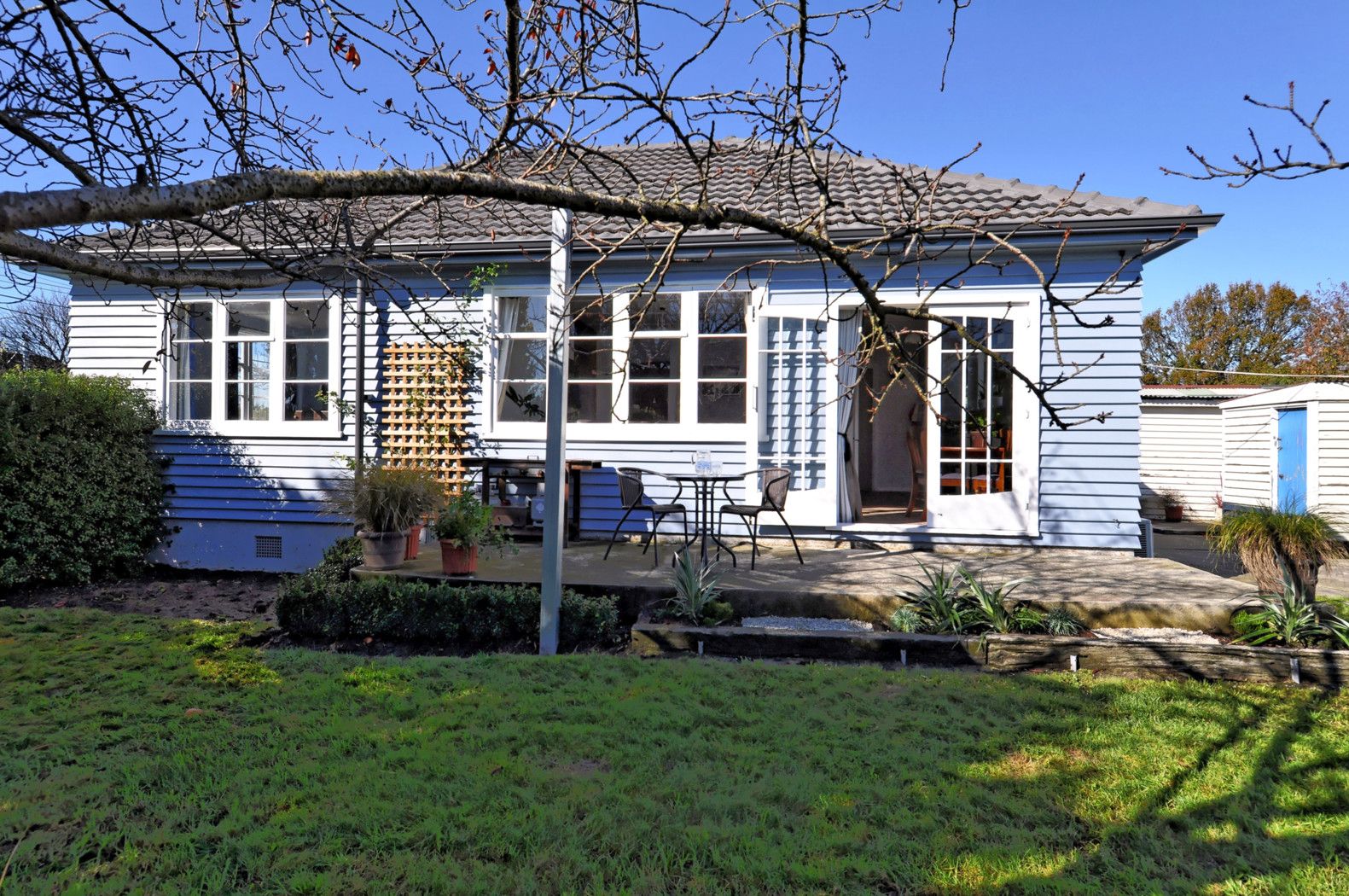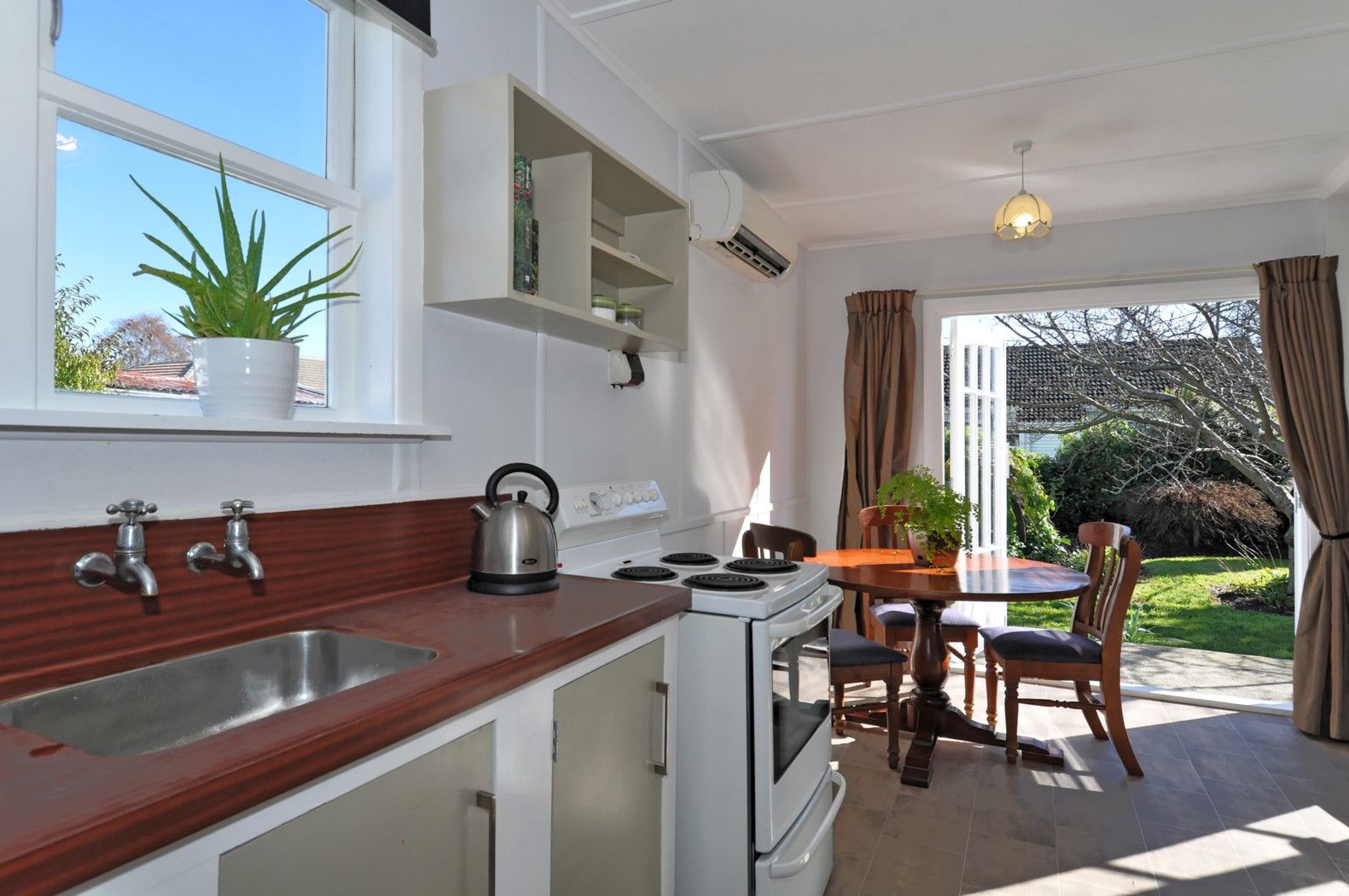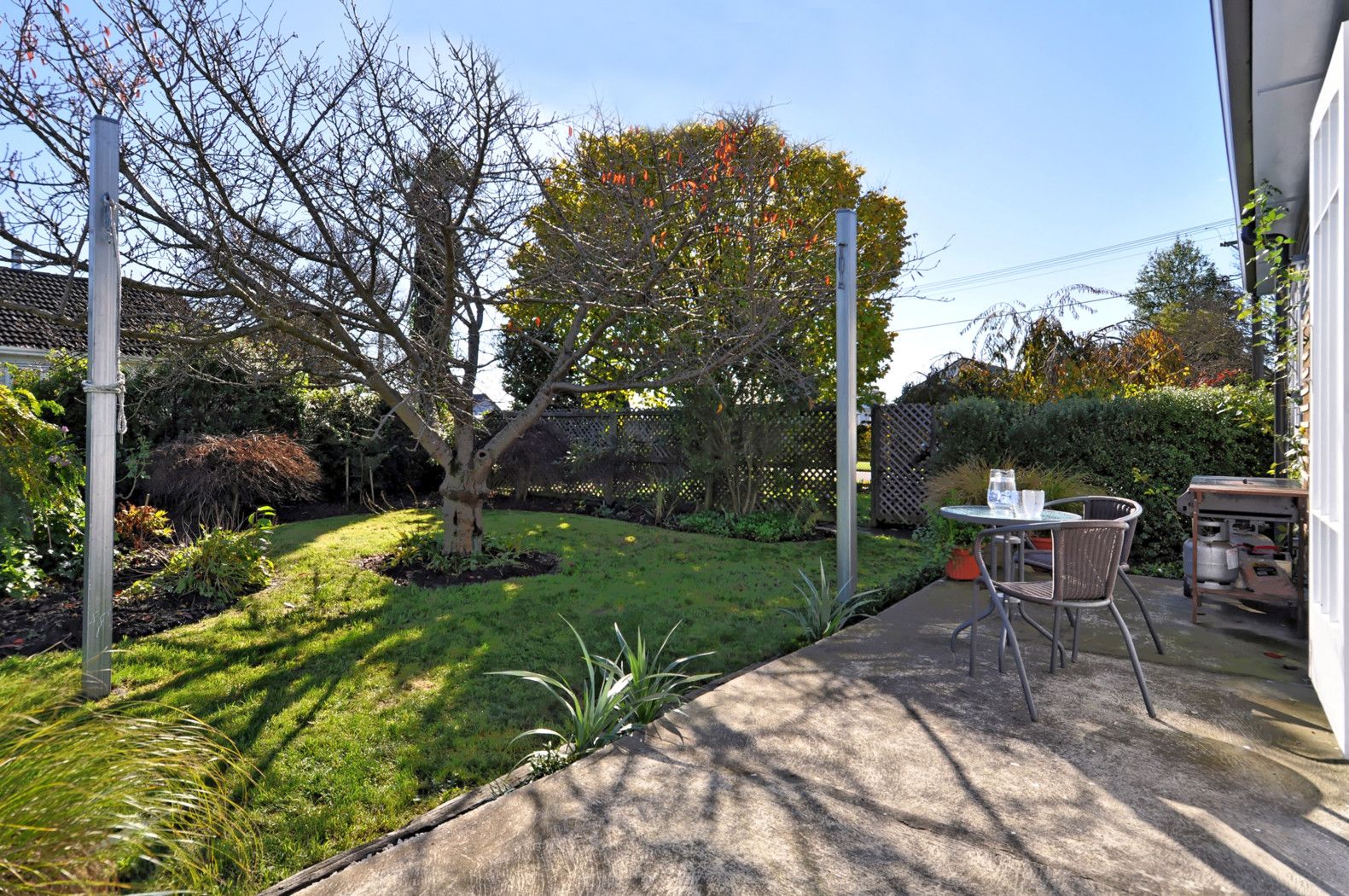 The sunny open plan living with heat pump for those winter chills, spills out to the fabulous outdoor patio - great for an evening meal or Summer drinks. This BBQ PERFECT area is private with an established garden and mature trees.