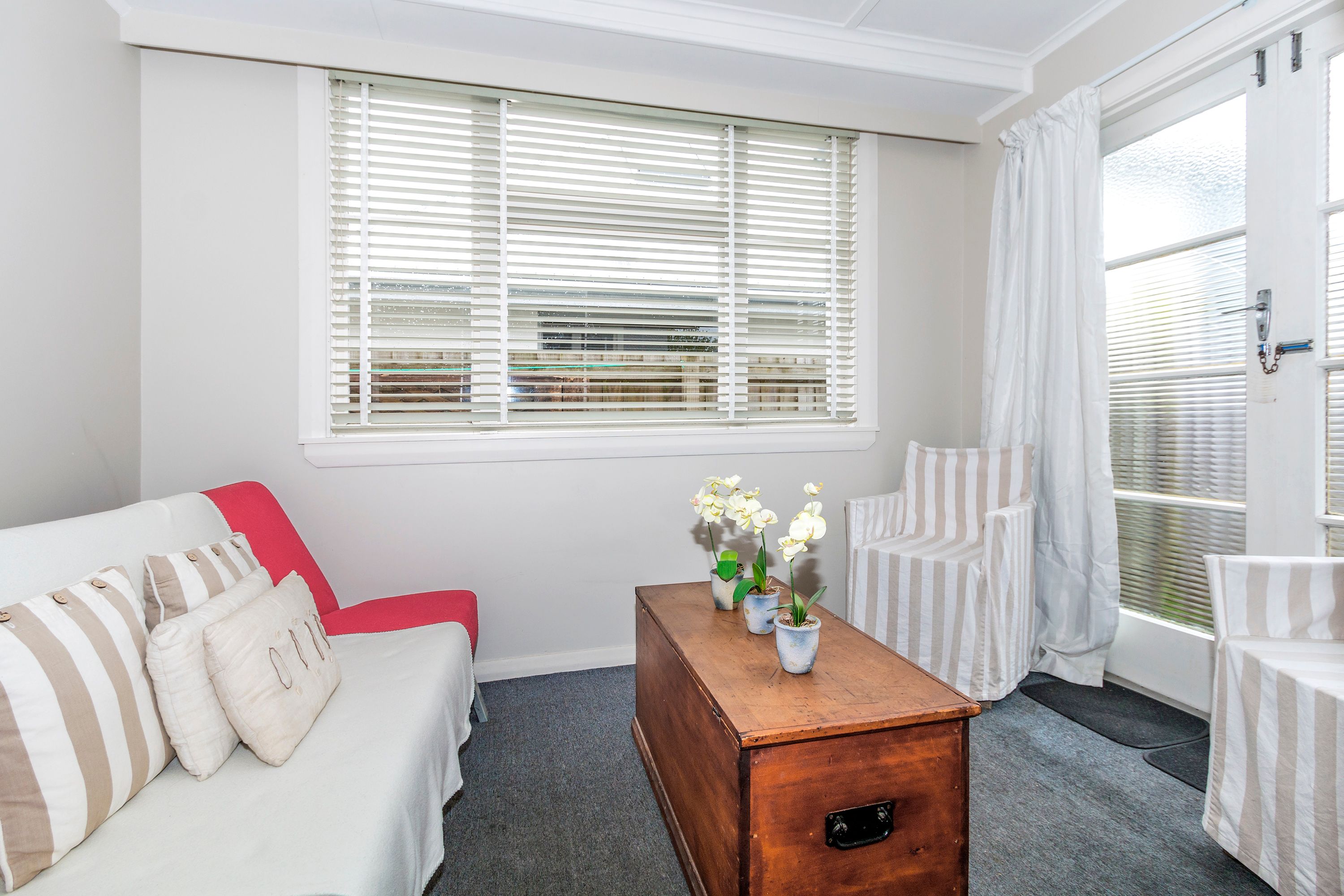 There are three double bedrooms with built in wardrobes, a large lounge with a heat pump, a large kitchen with adjacent sunroom and very large laundry/amenities area with a second shower. The bathroom has a bath and separate shower. There is plenty of potential here to reconfigure and refurbish the home to maximise the outdoor spaces. There is off street parking available for two vehicles.