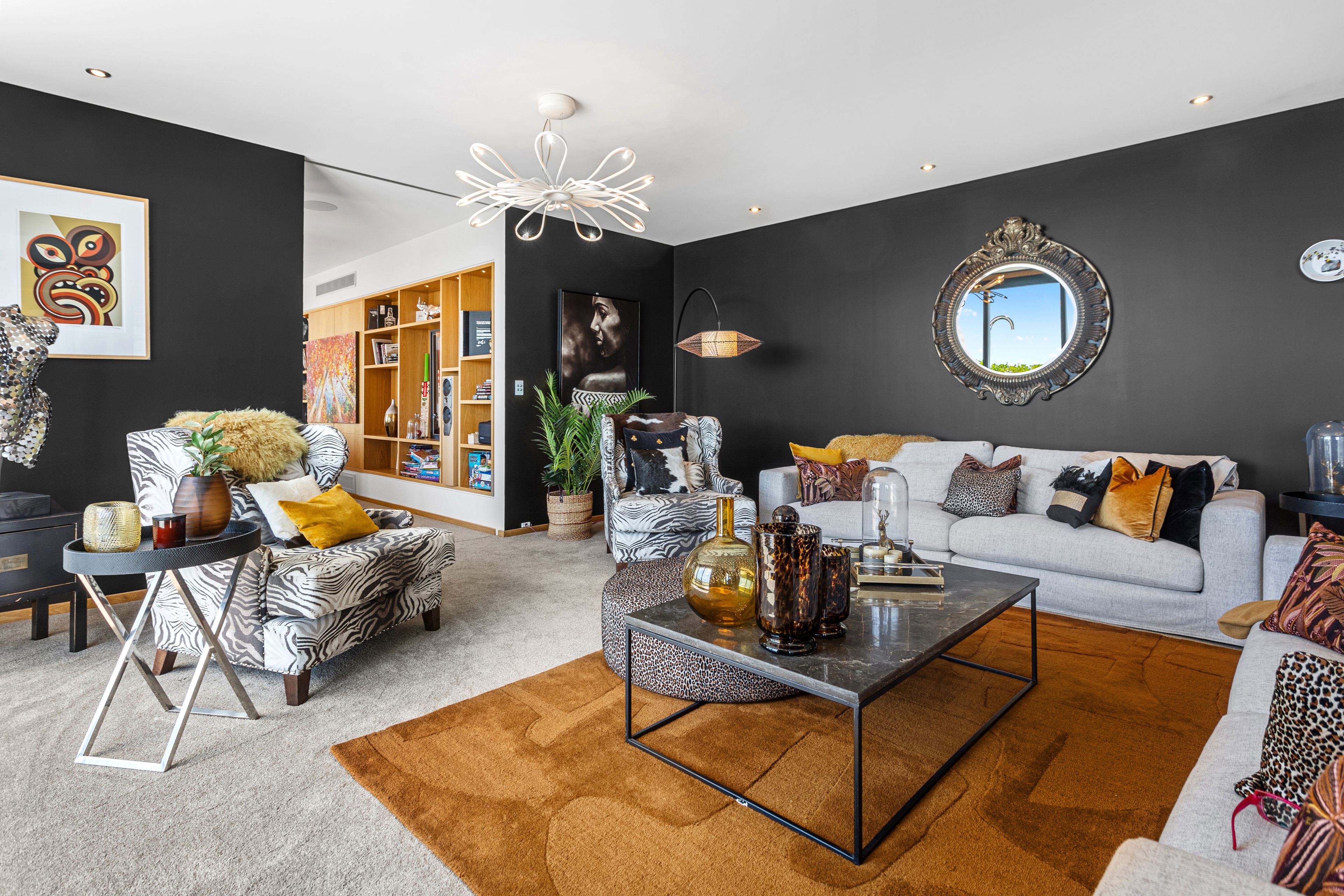 Outdoors, the home extends into an all-season environment, bringing together a heated, salt water infinity lap pool, a spa pool, outdoor shower, timber and tiled terraces, an inbuilt bbq and a louvred terrace featuring a gas fire that keeps the alfresco domain functioning across every season and well into the evening.