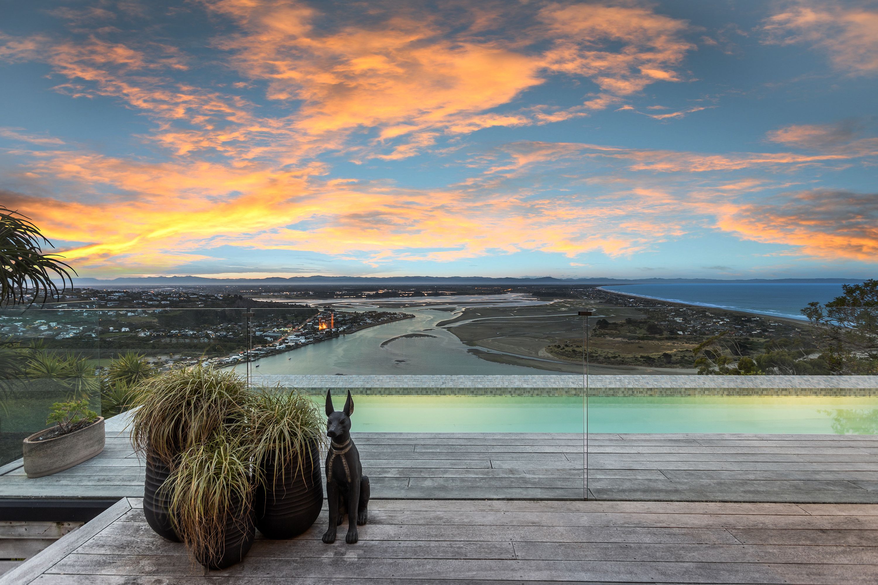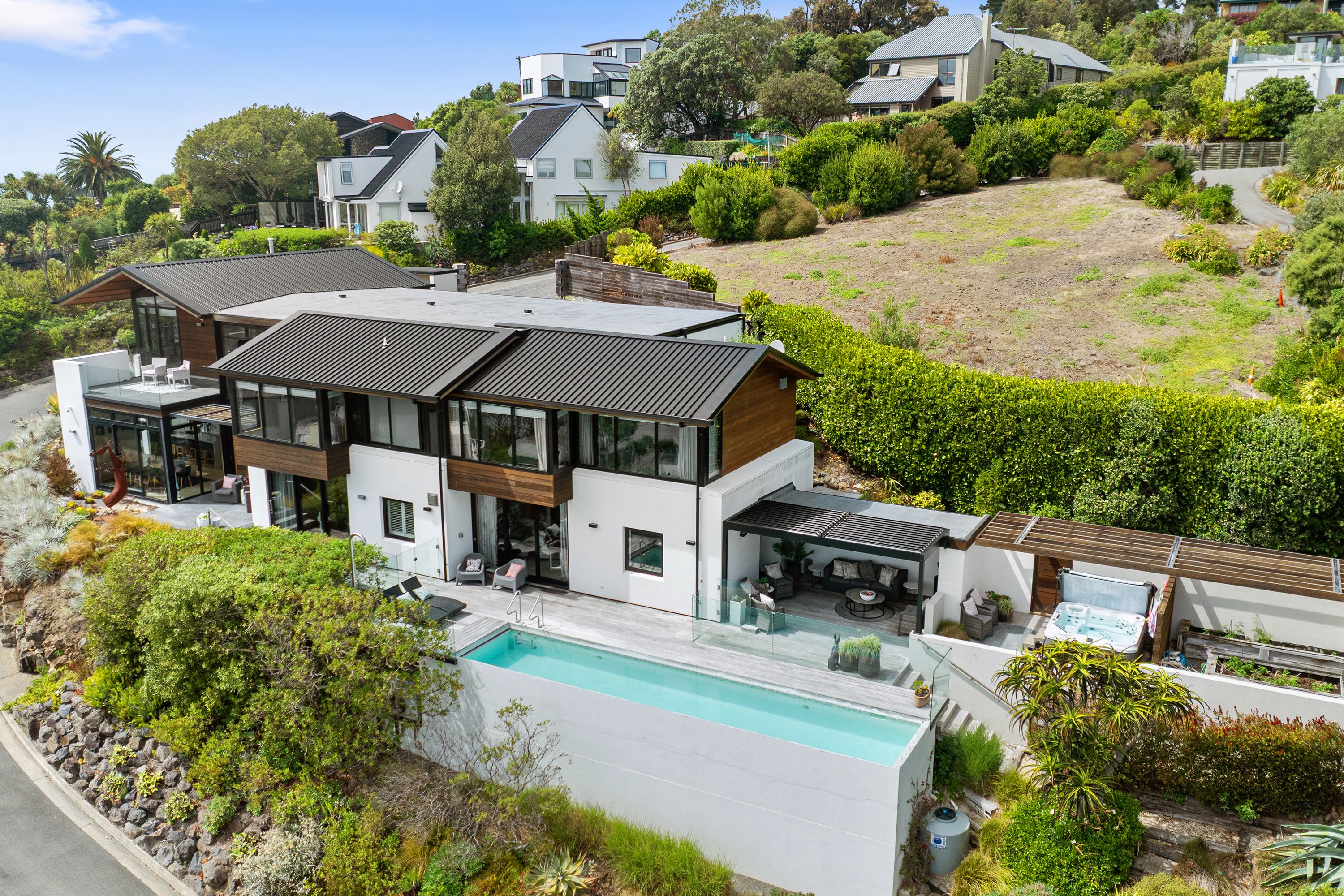 Designed and completed in 2014 by Wilson & Hill Architects with meticulous planning and engineering. Every detail has been considered to achieve perfect form and function in perfect harmony. Its 444sqm approx floor plan captures an extraordinary panorama, stunning by day and spectacular at night from the Sumner surf line to the distant Kaikoura ranges, a view that stays in play from room to room alongside all day sun.