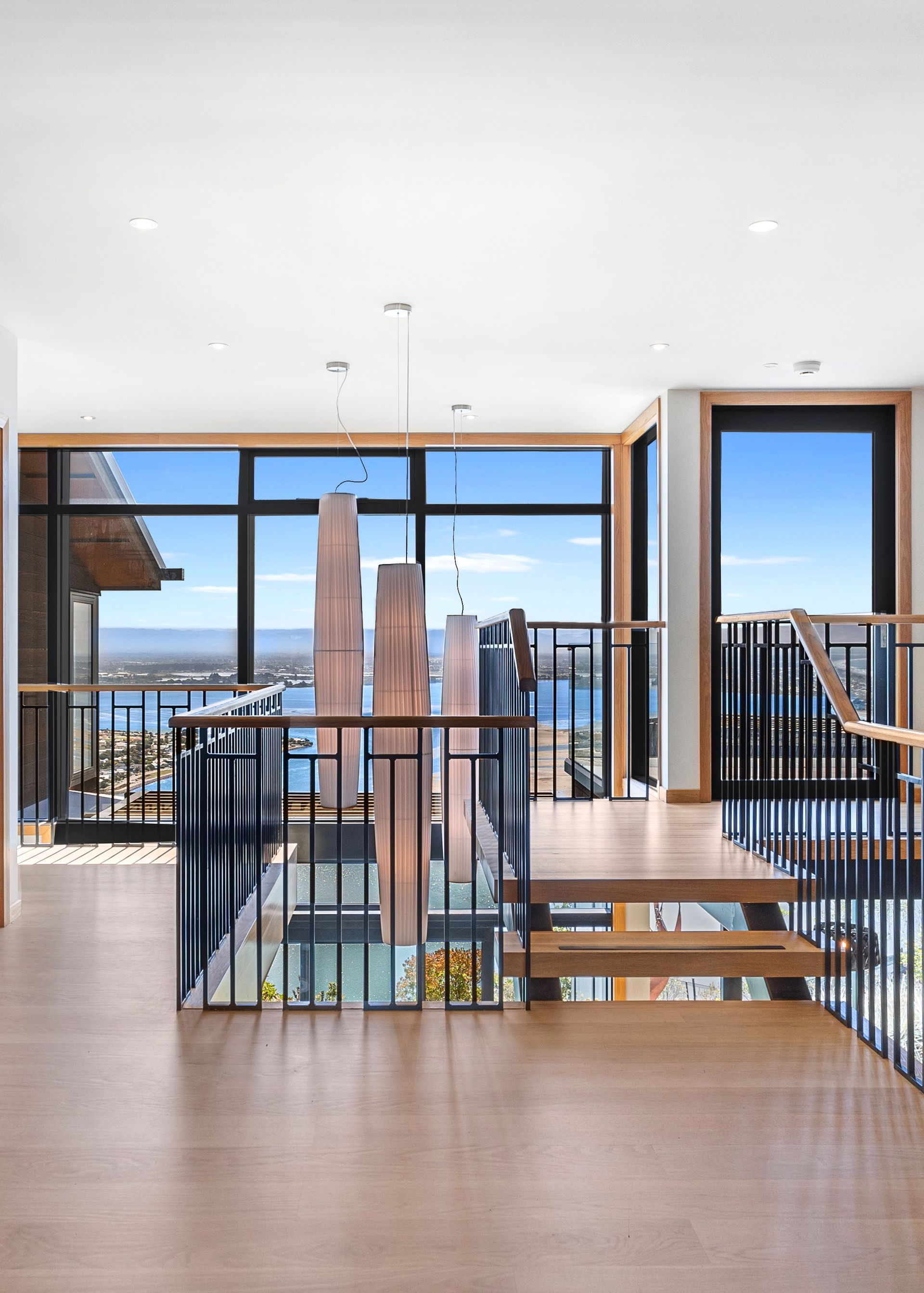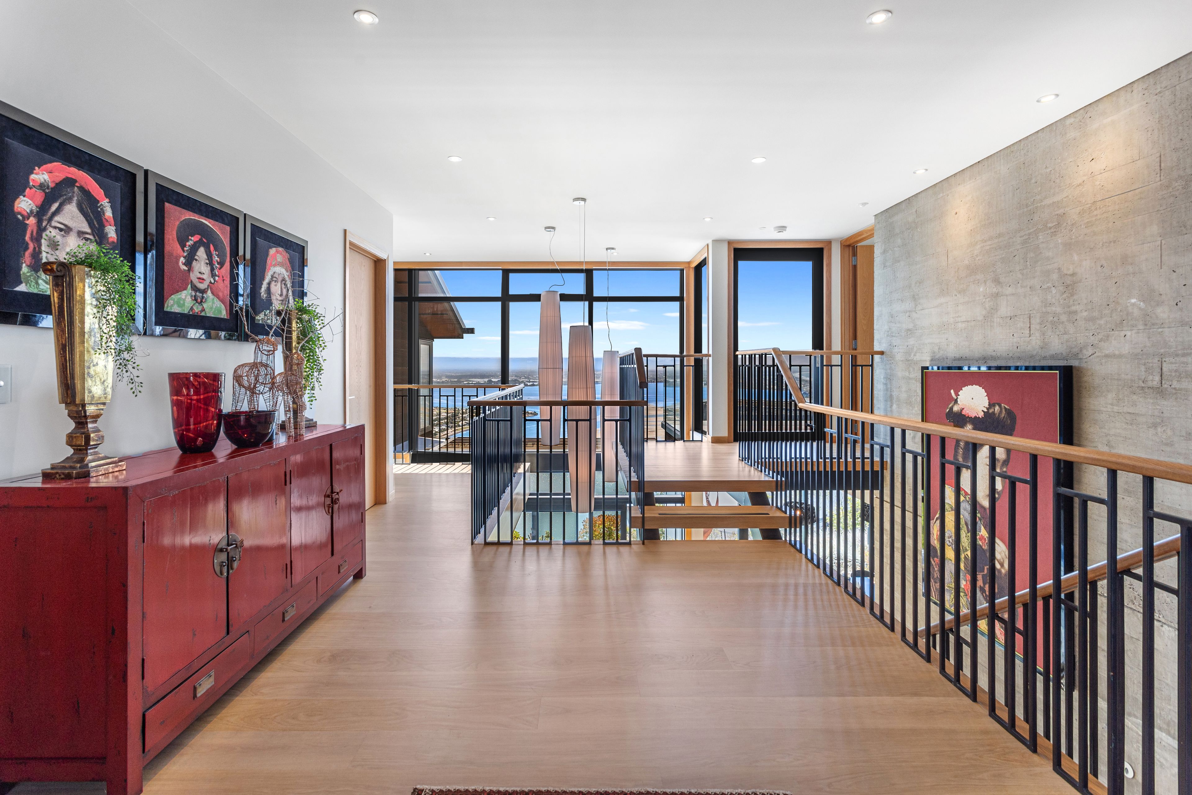 Highly specified throughout, the grand copper entrance door gives a direct line to the breathtaking ocean views, while a solid American Oak staircase, in-built cabinetry, over height ceilings and expansive glazing deliver an immediate architectural impact.