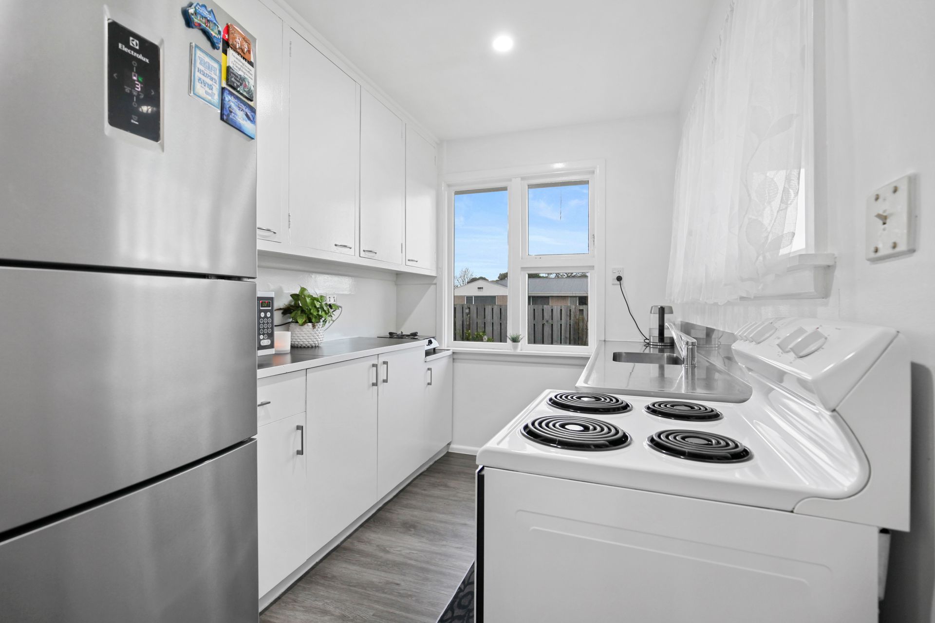 This home is made of permanent materials with large open plan living and dining, which opens to sun room, for great sun exposure. This home offers two generous size bedrooms, modern updated bathroom with laundry in it, LED lights right through the house with new carpet, good size heat pump in lounge to keep you warm right through winter and off course it has double glazed windows.