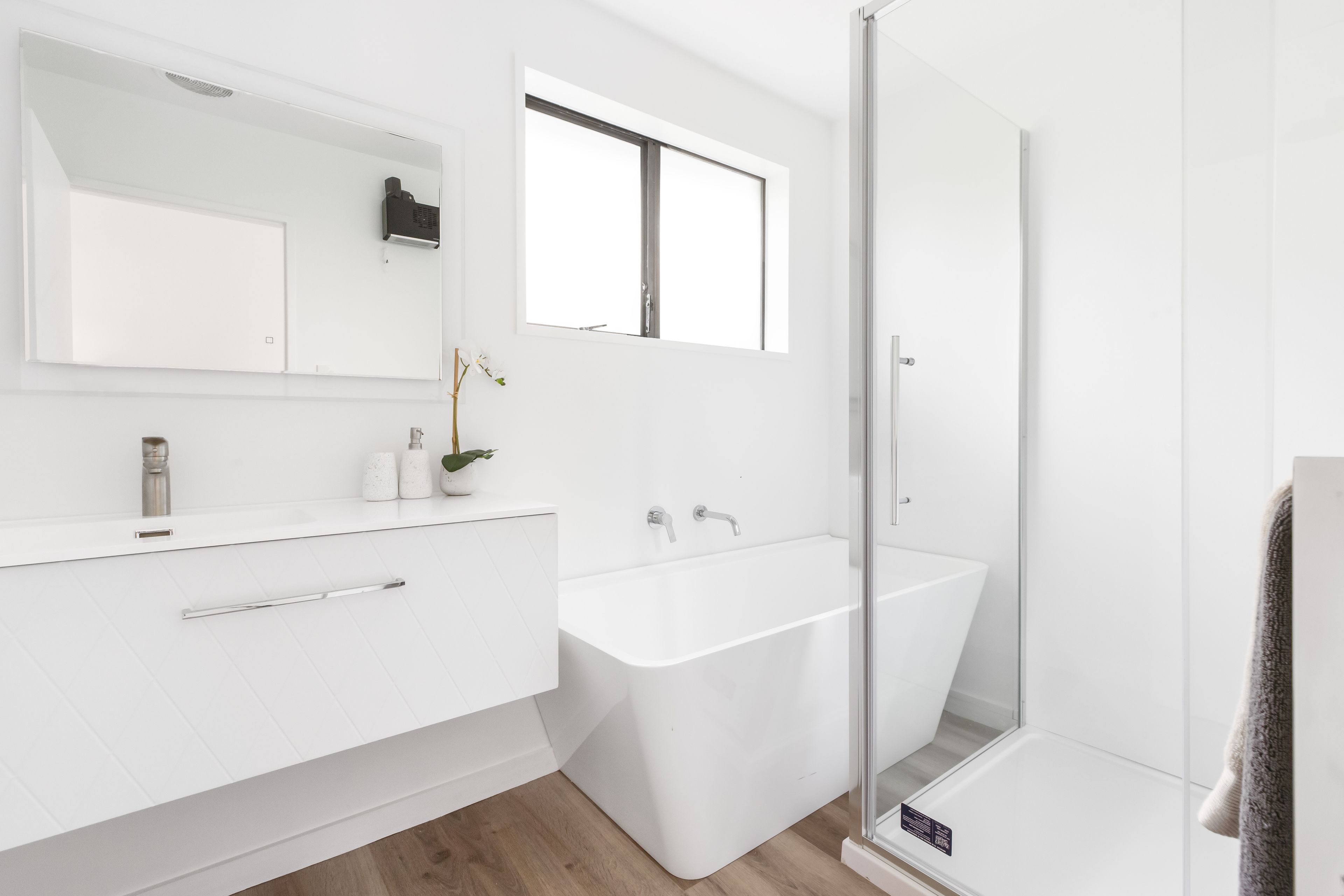 Each of the three bedrooms are spacious and have built-in wardrobes, and are serviced by a contemporary new bathroom that features a stunning vanity, freestanding bath, shower, and a separate toilet.