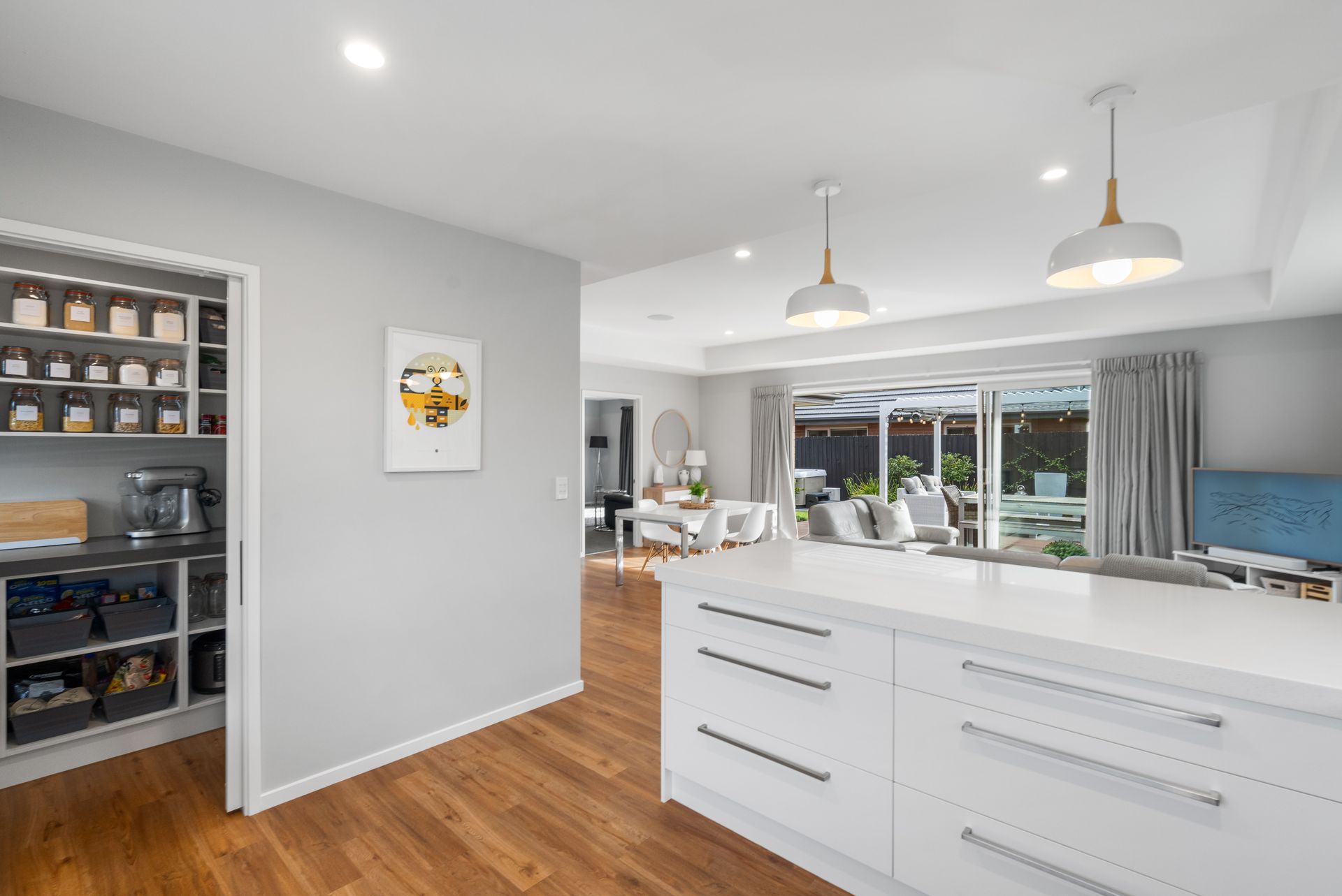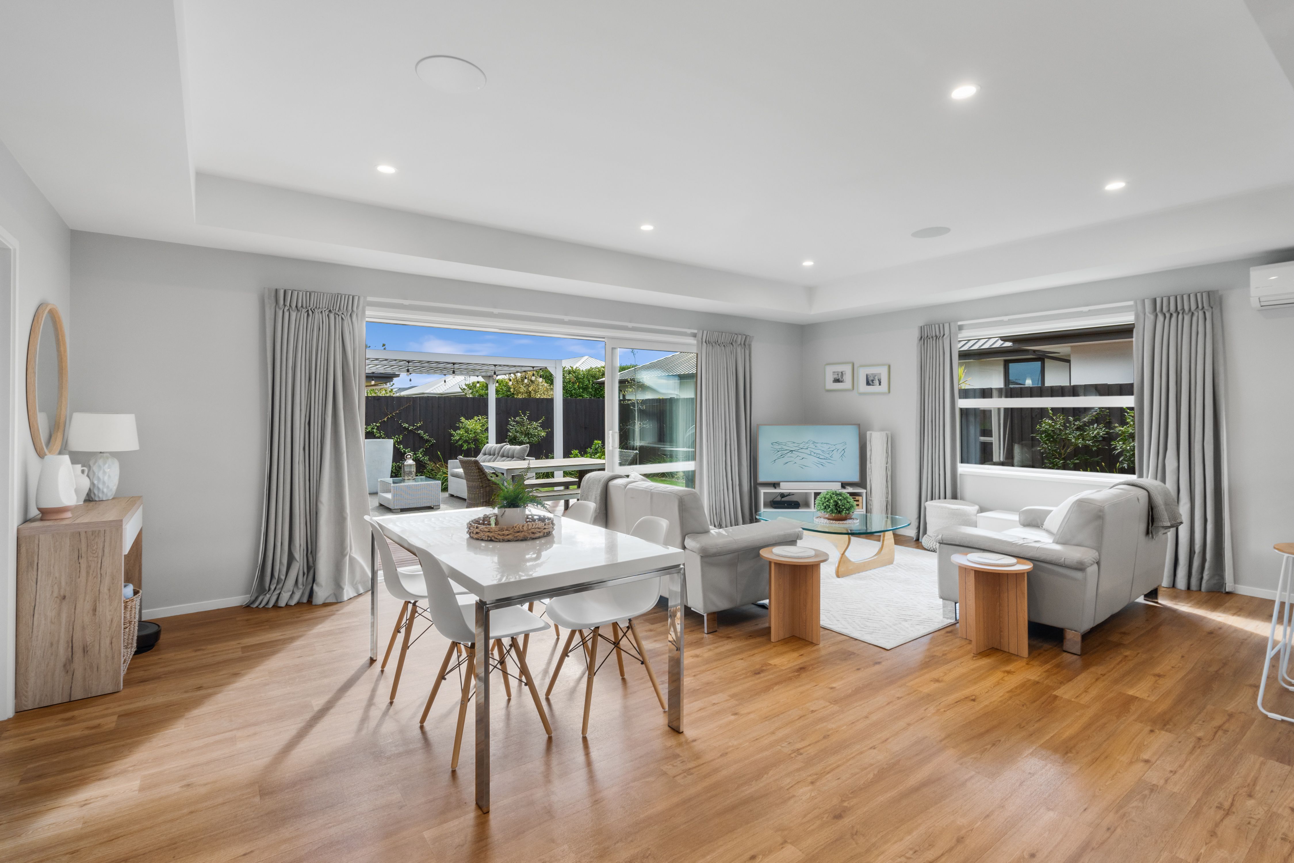 As you step inside, you're greeted by a generous living area that effortlessly combines dining and everyday living. The open-plan design is complemented by a beautifully appointed kitchen featuring ample bench space and a walk-in scullery, perfect for the home chef. The living space is enhanced by a dedicated separate lounge, offering a cozy retreat for relaxation or entertaining. Both areas boast seamless indoor-outdoor flow, leading to a private, established backyard.