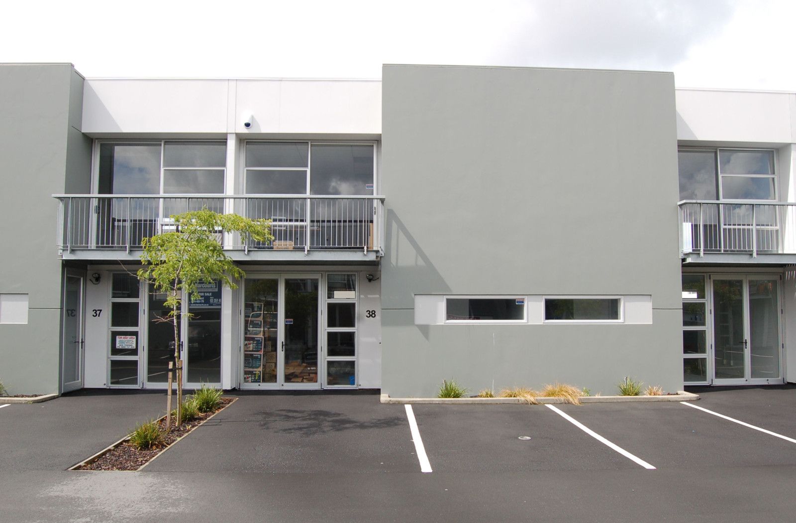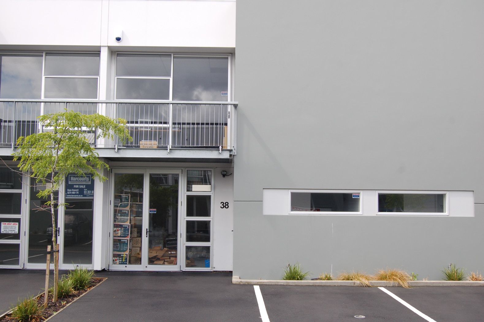 This unit has a toilet and kitchenette downstairs with a large area suitable for office/business space or warehousing and two car parks directly in front of the main doors. Upstairs is an open fully carpeted space with a sliding door opening up to a balcony.