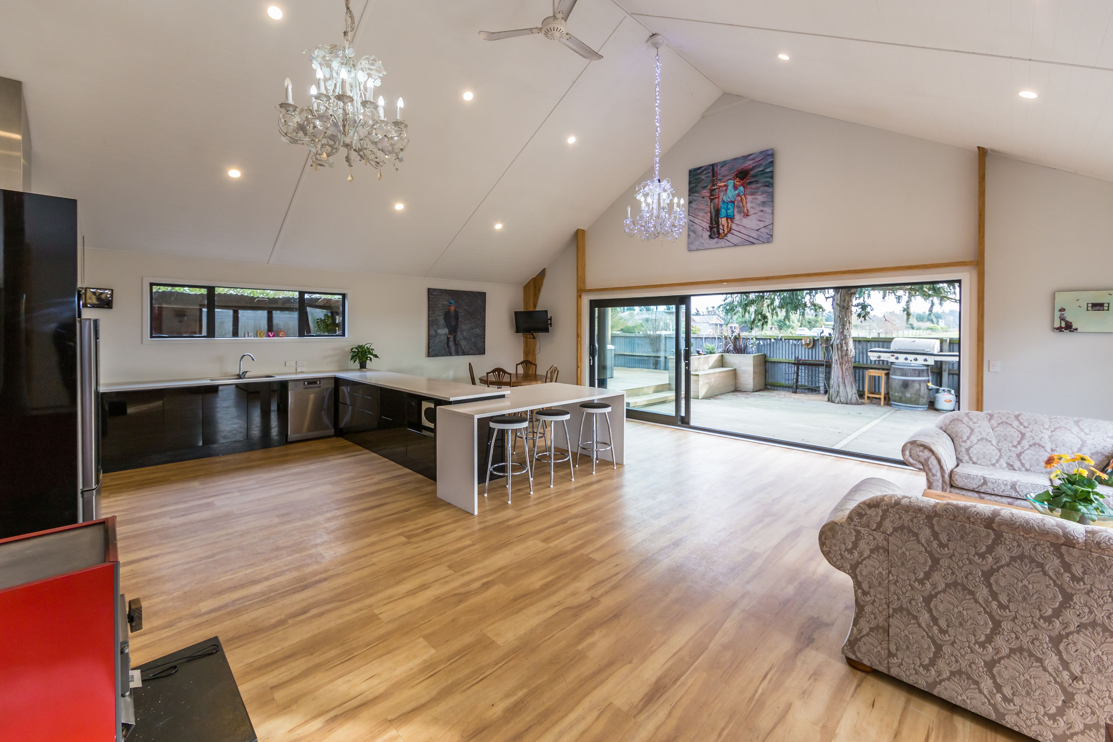 STOP PRESS! This is one out of the box! If you have been craving the country community lifestyle, but wanting a warm and modern home, we have found the place for you! The stunning open plan kitchen living dining room with amazing high A framed ceiling & beautiful chandeliers which dominate & add beauty to this amazing room. The seamless flow through to the outdoor area with envious views over farmland through to the stunning snow capped Alps are also enjoyed from the living areas while keeping toastie & warm in front of the fire. A separate lounge creates another cosy space, great for watching movies on the cold wet winter days. The master bedroom is serviced with an ensuite & the further 2 bedrooms are large doubles with double wardrobes. This lovely property is then further complimented by a huge loft upstairs which runs over half the length of the home which is an amazing rumpus room or turn it in to a further 2 rooms. The upstairs landing or open study, overlooks the living areas. This great property is a must to view and has so much to offer. Call Ange or Big Red now to arrange your private inspection, or see you at the open home!