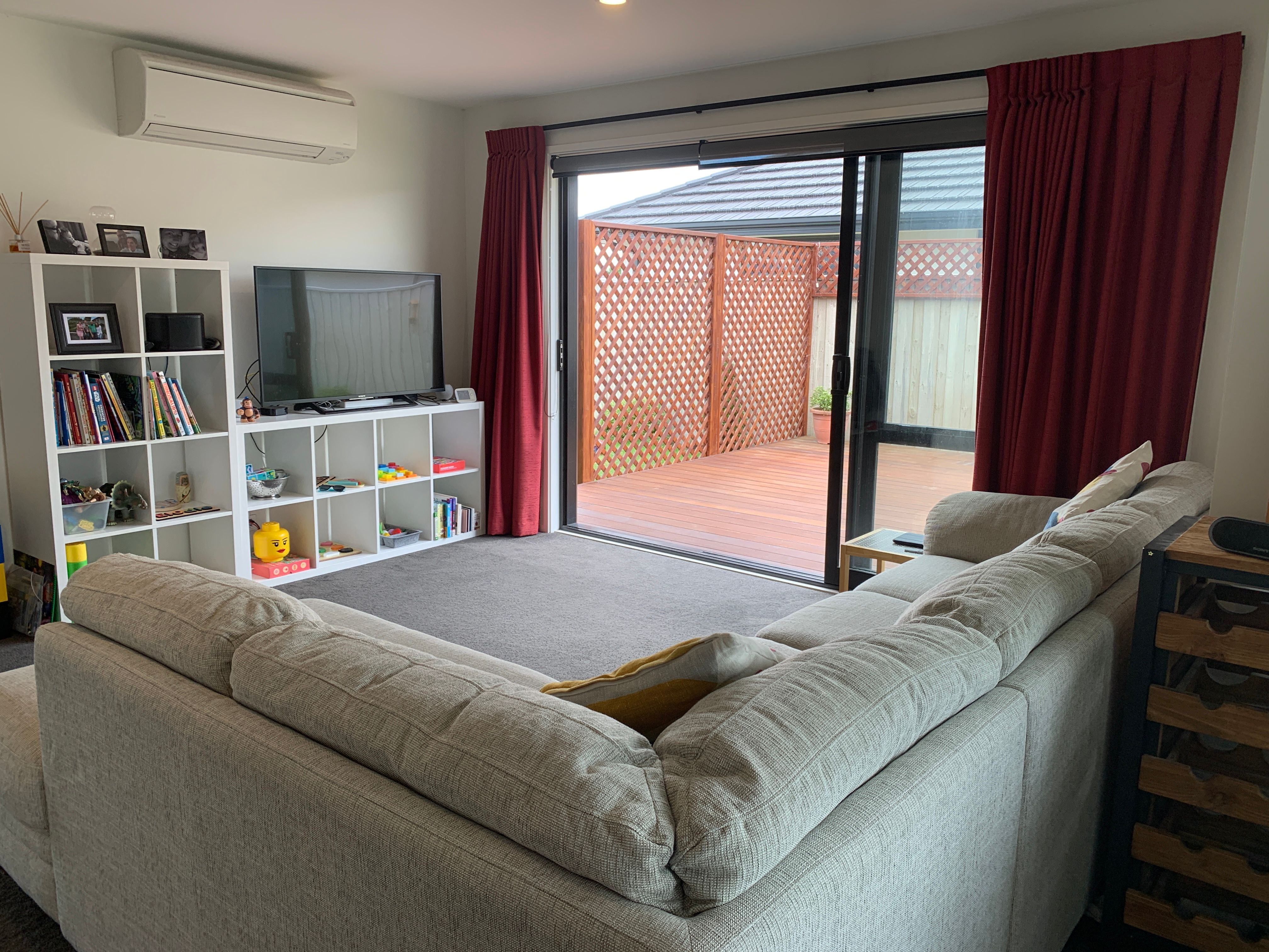 A good-sized deck opening off the living area. Easy care section with room for the kids to run and play. The property also has a built-in playhouse.