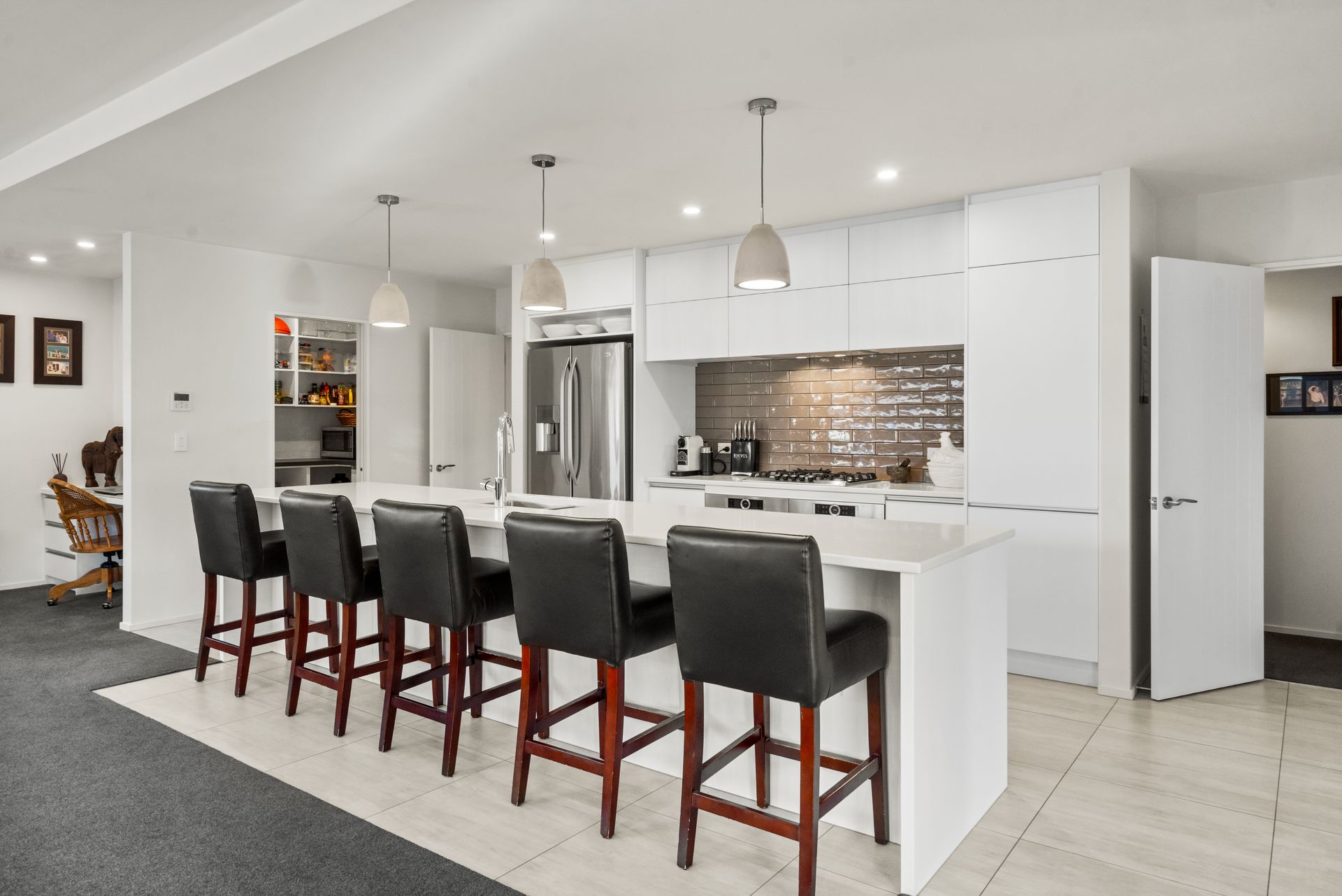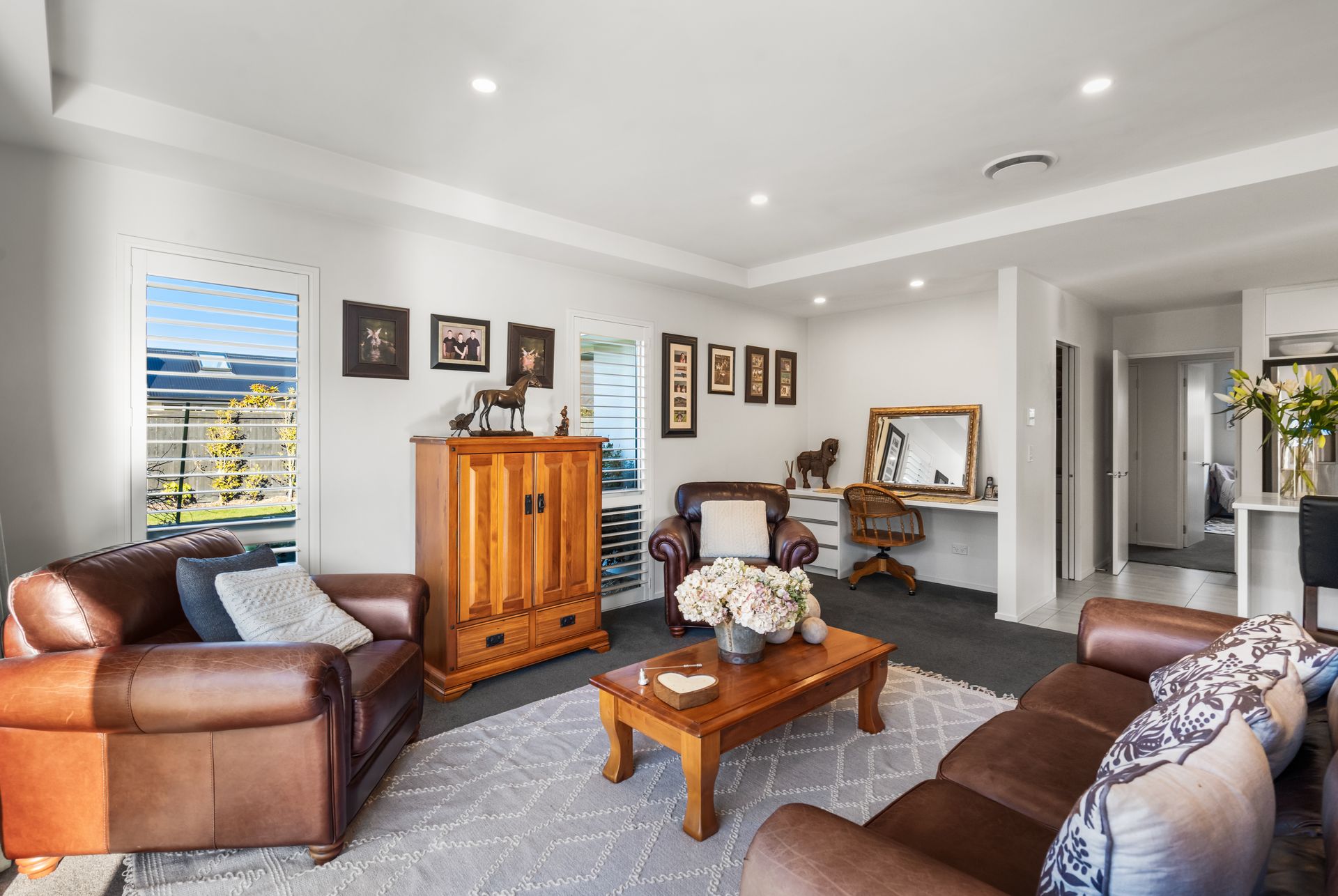 Year-round comfort is assured with a ducted heat pump system that ensures the home is always at the perfect temperature. The master bedroom is a luxurious retreat, complete with a tiled double shower with underfloor heating, an oversized walk-in wardrobe, and a sliding door that opens to a private deck area.