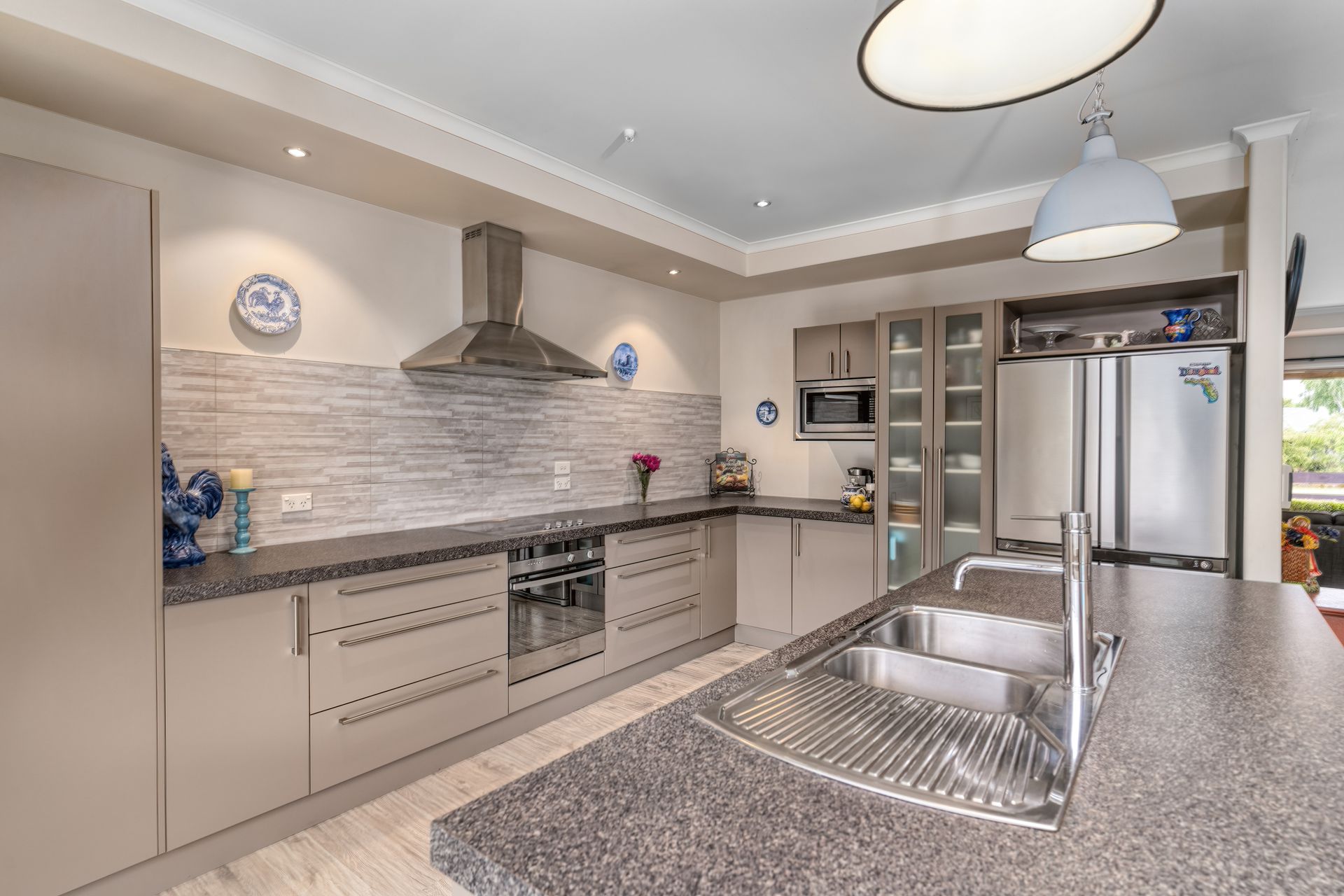 The heart & hub of the home is surely the open plan kitchen, dining & lounge, the perfect place for the family & friends to socialise, with space for entertaining large gatherings. The spacious kitchen with a large island is perfect for quick meals or for hosting a large buffet. Stacker sliding doors in the extended living area peel back to reveal a covered alfresco area providing a sheltered area to relax & enjoy the vista of the Port Hills & the local reserve. The updated landscaping completes the feeling of peace with multiple other outdoor areas of interest. Slider doors from the dining & the formal lounge give access to another patio area to ensure outdoor entertaining makes the most of the sun-filled days. The separate formal lounge provides extra space for family living & entertaining options.