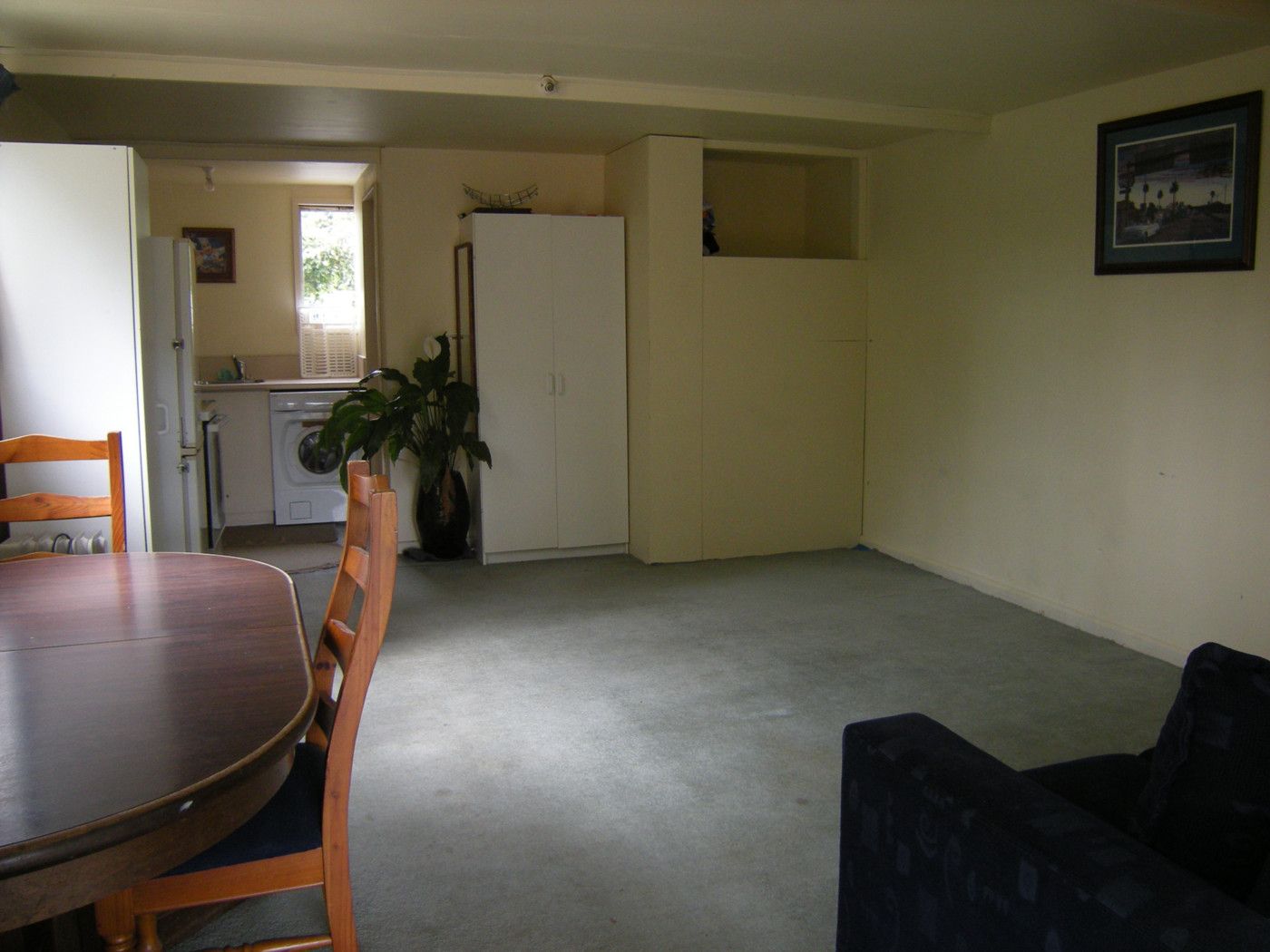 Main area is a good size with a separate bathroom comprising a shower, toilet and vanity. The kitchenette is open plan with a underbench washing machine.
