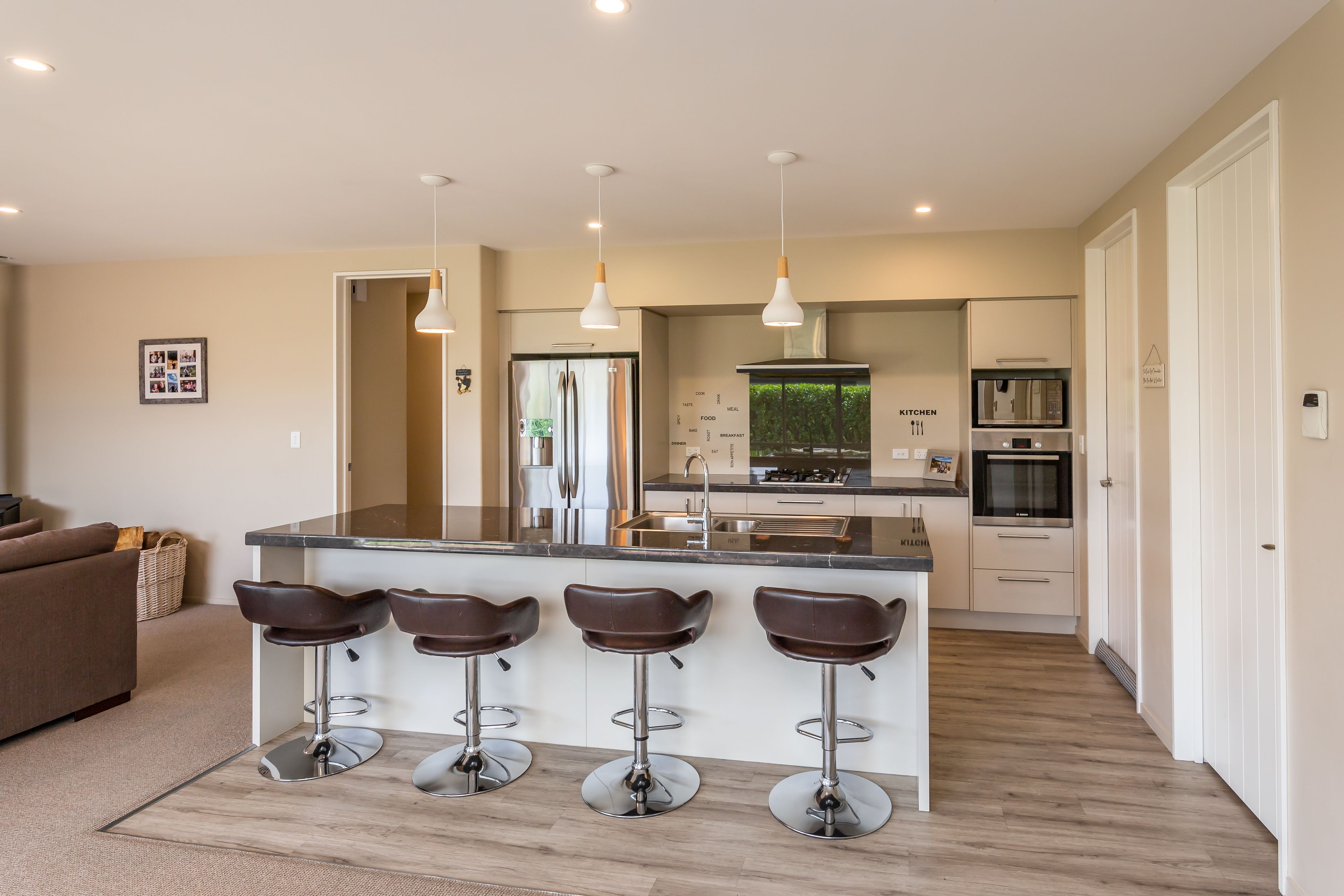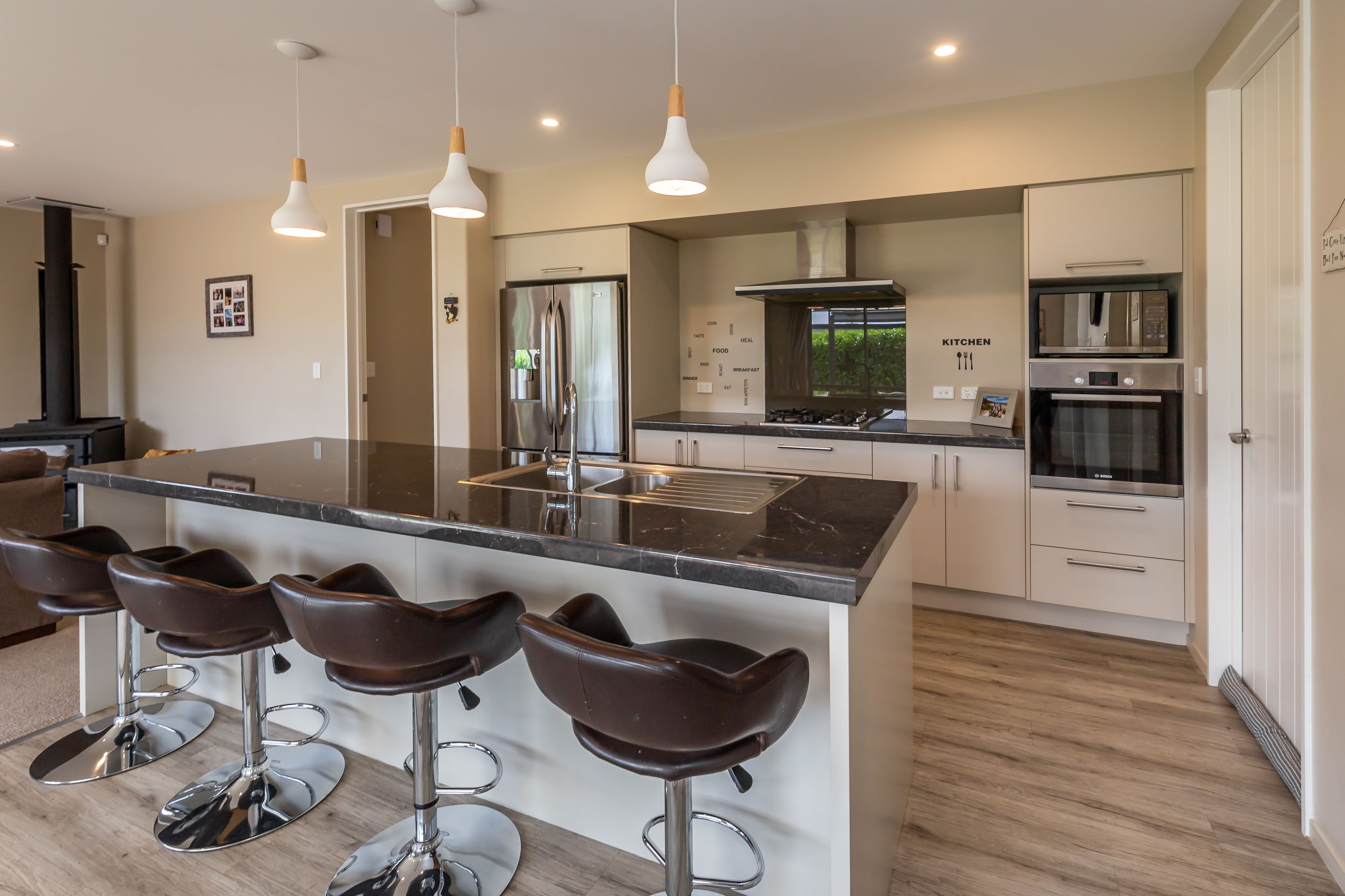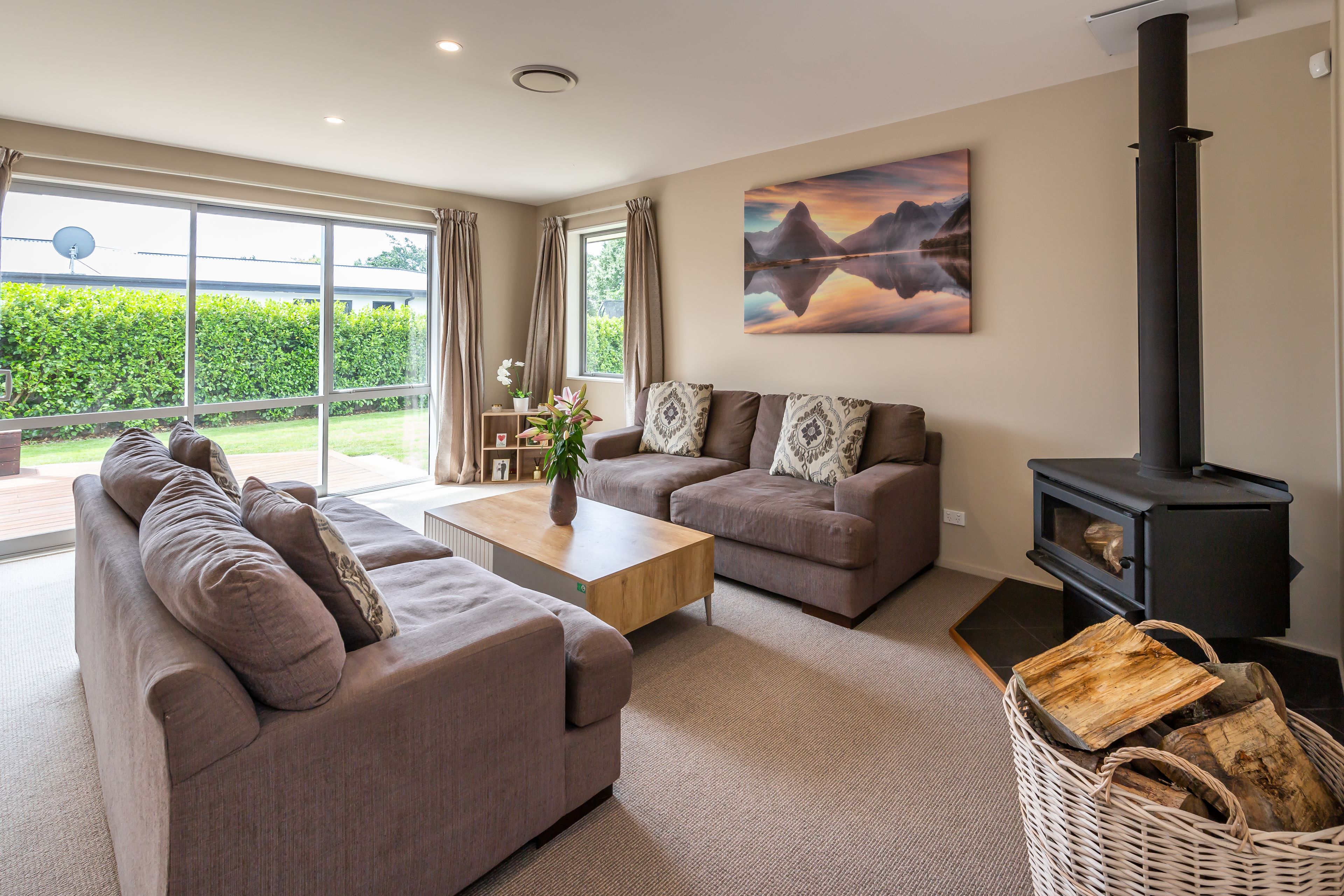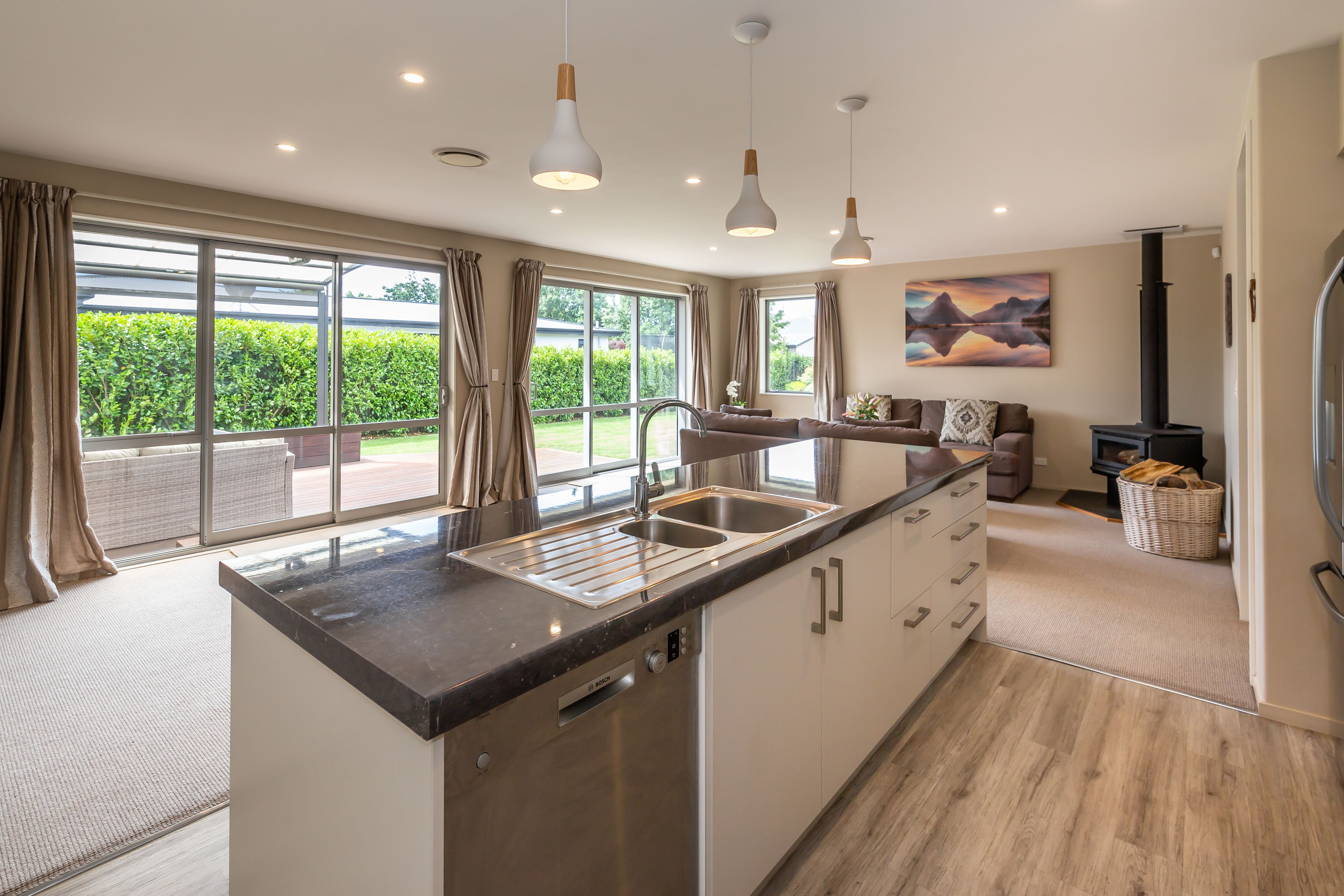 Keeping warm in the winter and cool in the summer will be easily achieved with a ducted heat pump system along with a wood fire and double glazing. With 2.55 stud and over-height doors throughout, the air is able to flow more efficiently around the home.
