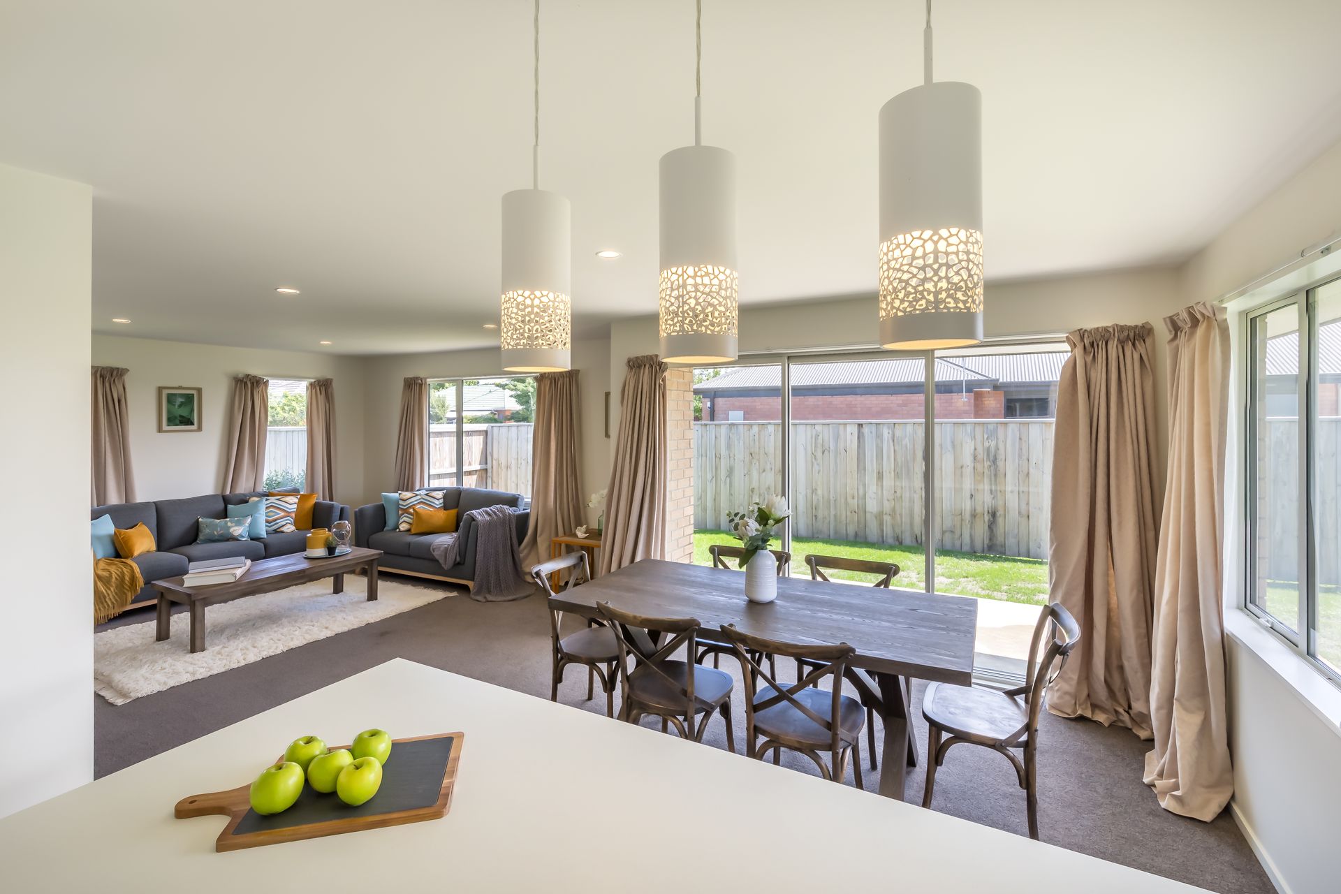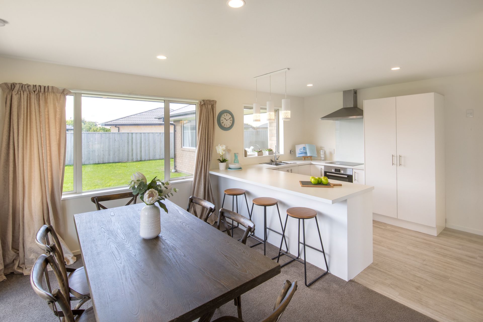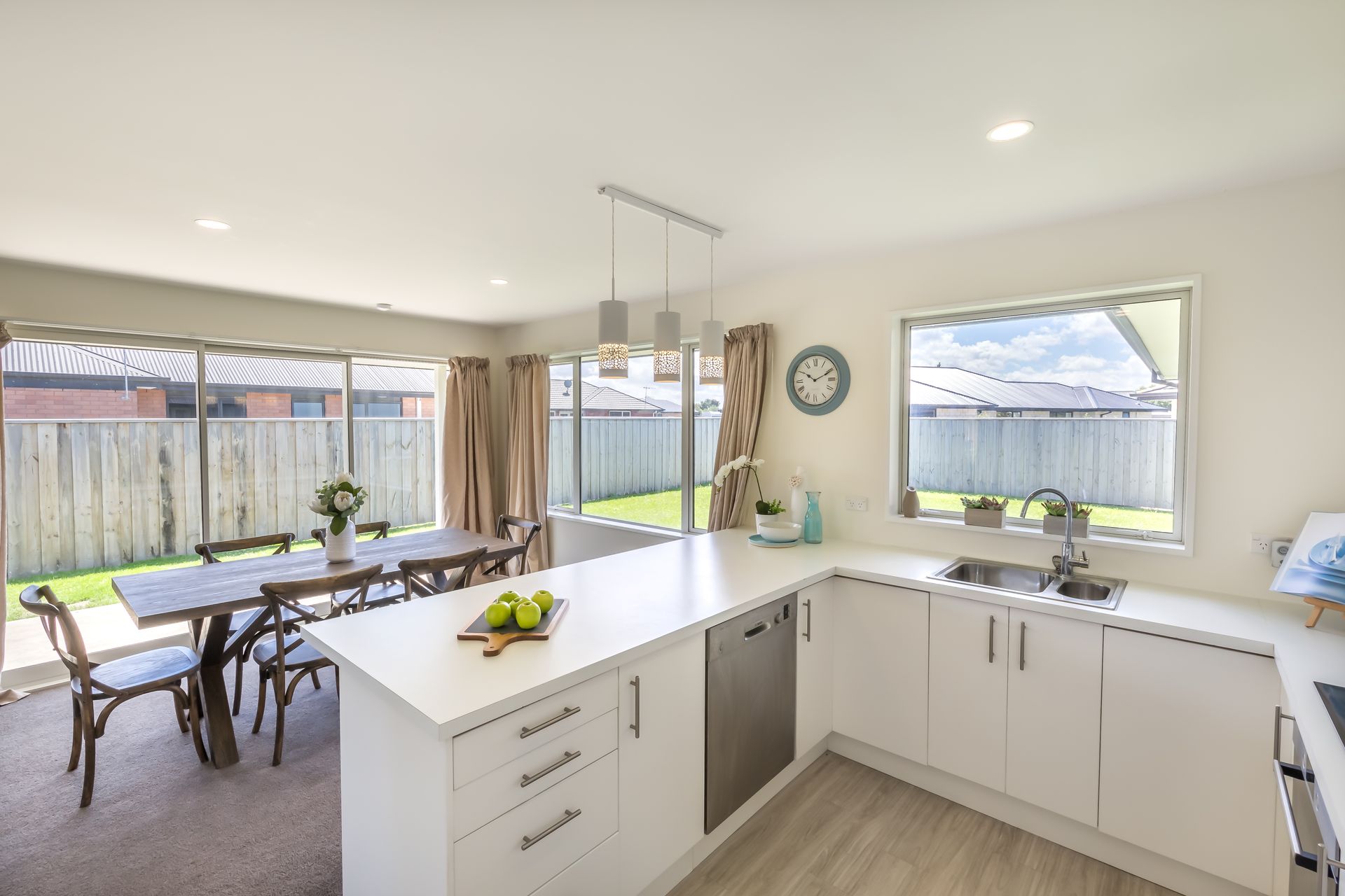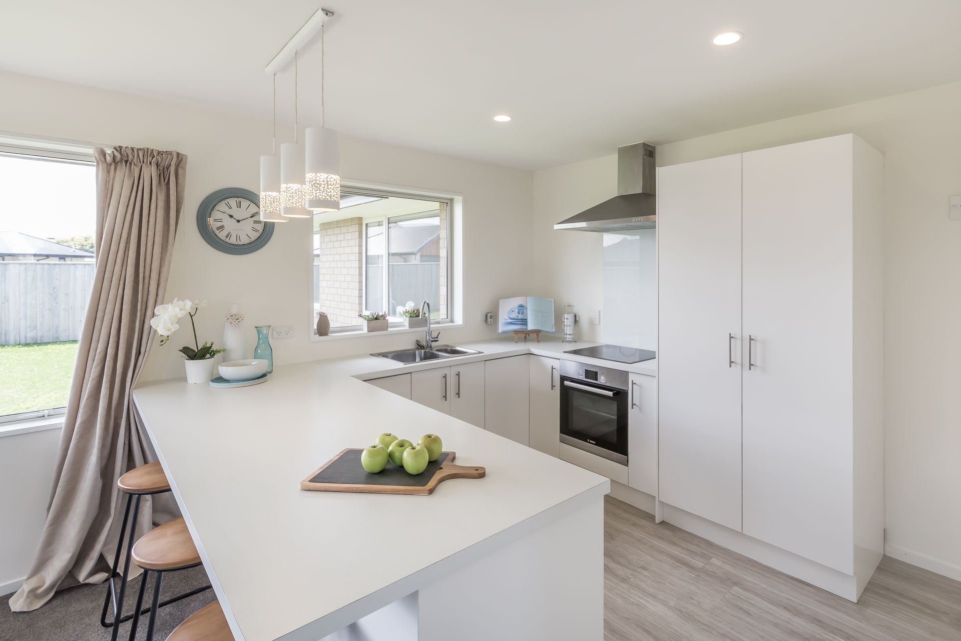 The home itself also caters to easy living with a functional layout and practical design. The large open-plan living area with additional study nook provides ease of access to the sun-drenched private patio and rear garden; with the crisp white kitchen, complete with quality Bosch appliances and induction hob, being at the heart of the home. Three generously-proportioned bedrooms, two trendy bathrooms, a spacious walk-in robe for the master bedroom, ample storage and additional attic storage above the double garage are just some of the further benefits on offer here.