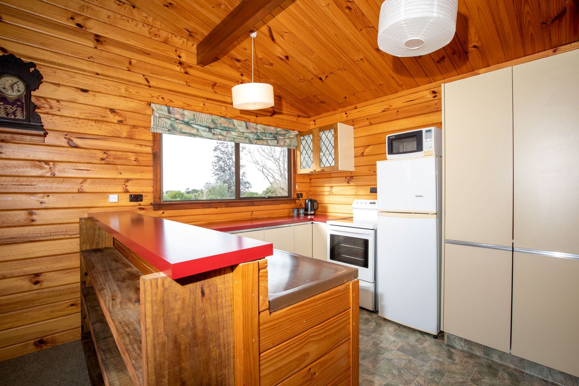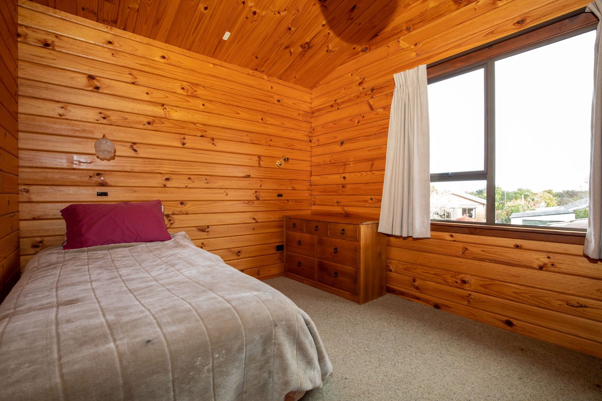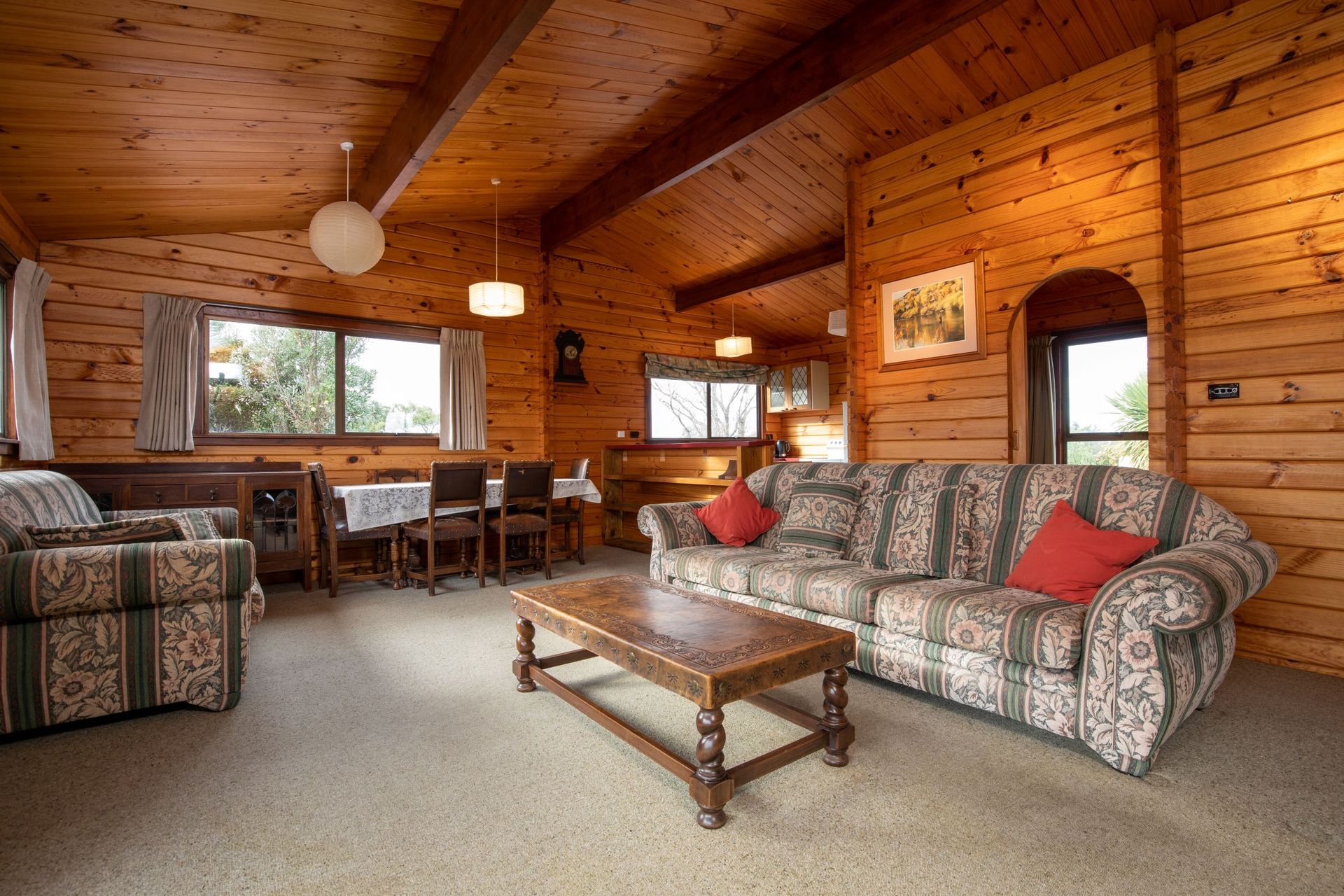As you walk up the steps into this cosy 2-bedroom home, you will be taken by its beautiful wooden finishes, high pitched ceilings, and its open plan kitchen/living/dining which includes a large log burner as well as a heat pump, perfect for these coming months! The upstairs is completed with a separate toilet and bathroom while downstairs is a large trophy room, plenty of opportunity here for someone to really make it theirs. Leading off this room is access to the laundry and double car garage which has recently had a new garage door installed. Beside the garage is a generous sized carport for those who have boats, caravans, trailers, and any other toys!