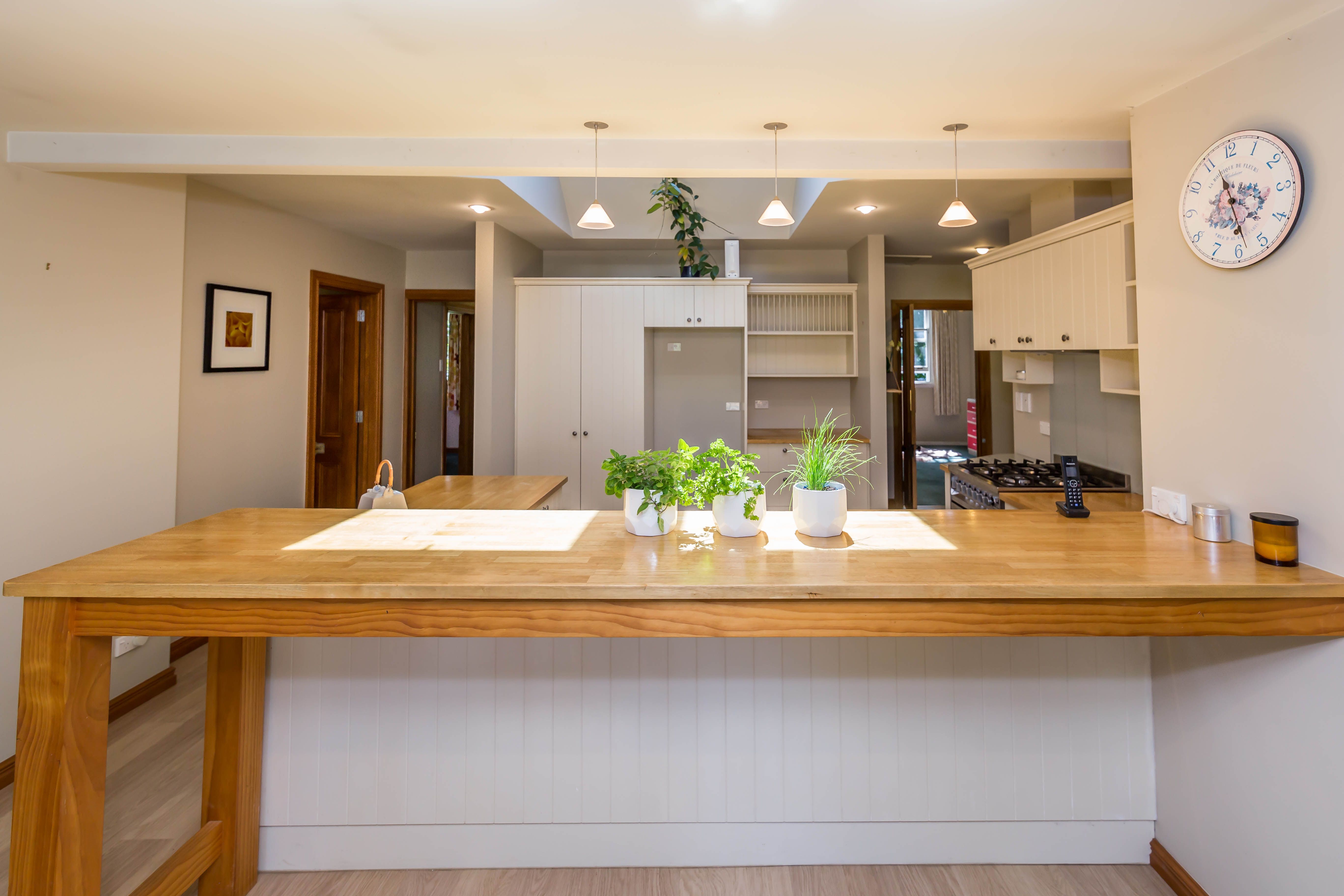 - Updated kitchen, keeping with the era of the home, including a 90cm freestanding oven with gas cooktop.