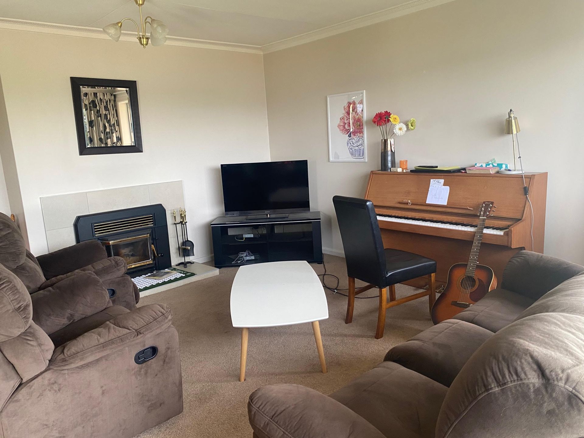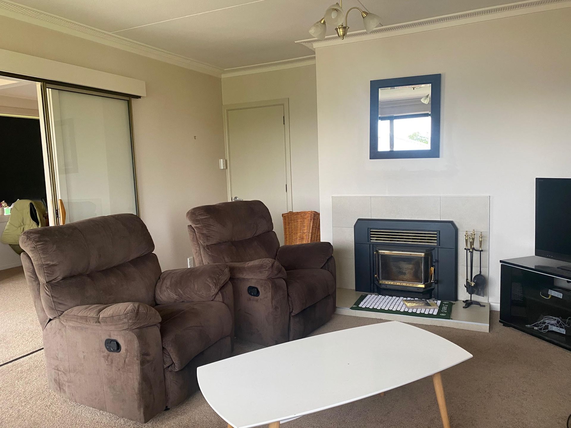 Fully insulated and heated by a log fire and a heat pump. All chattels included are of good quality and quite new.