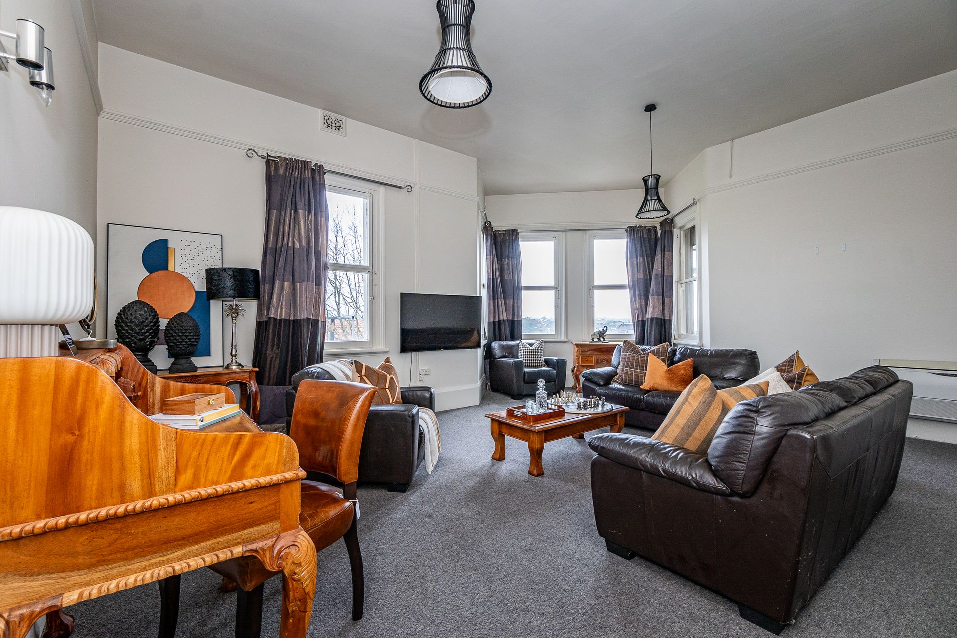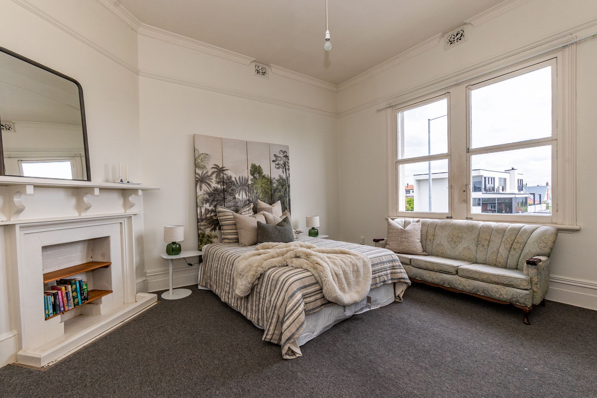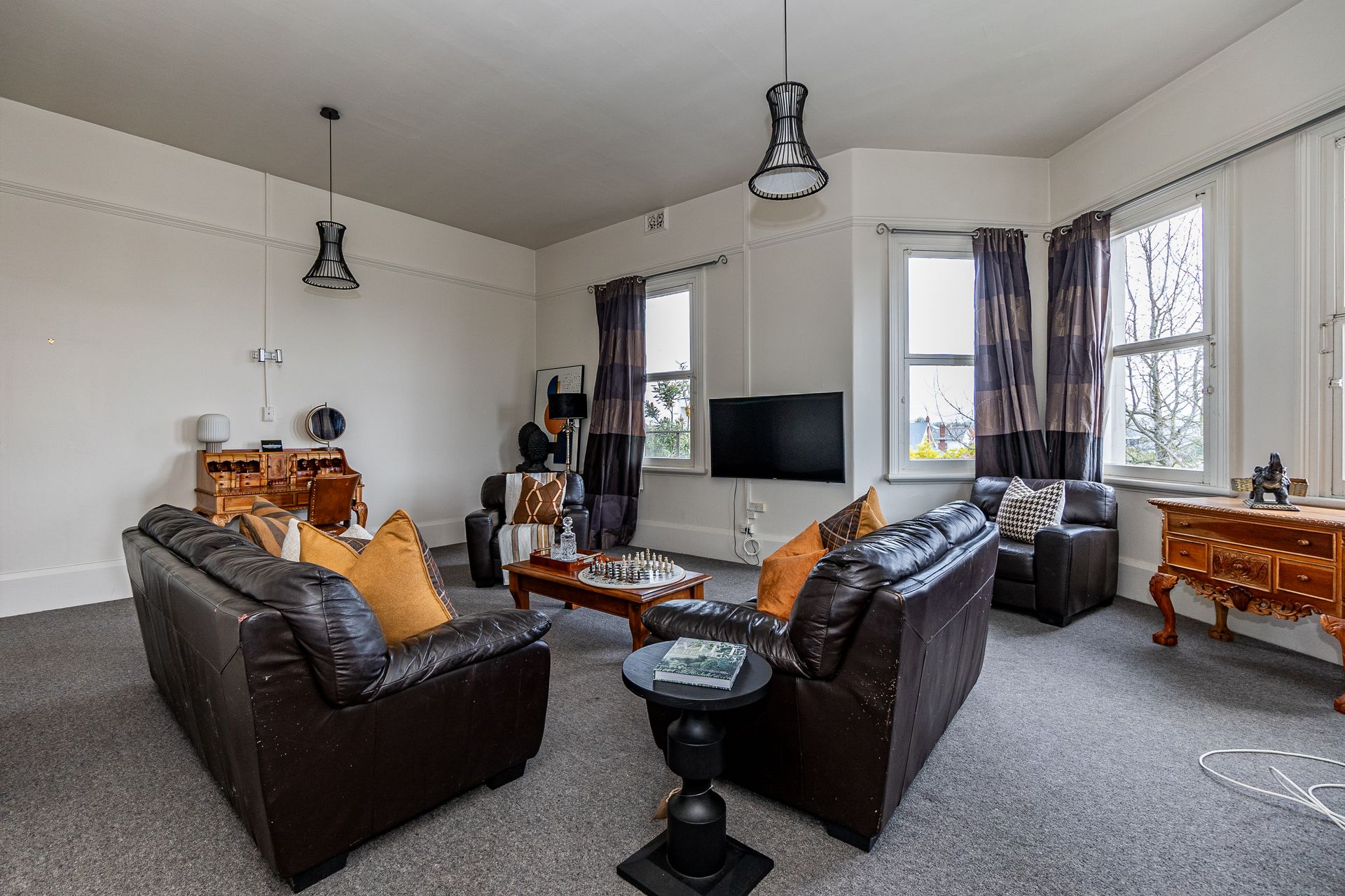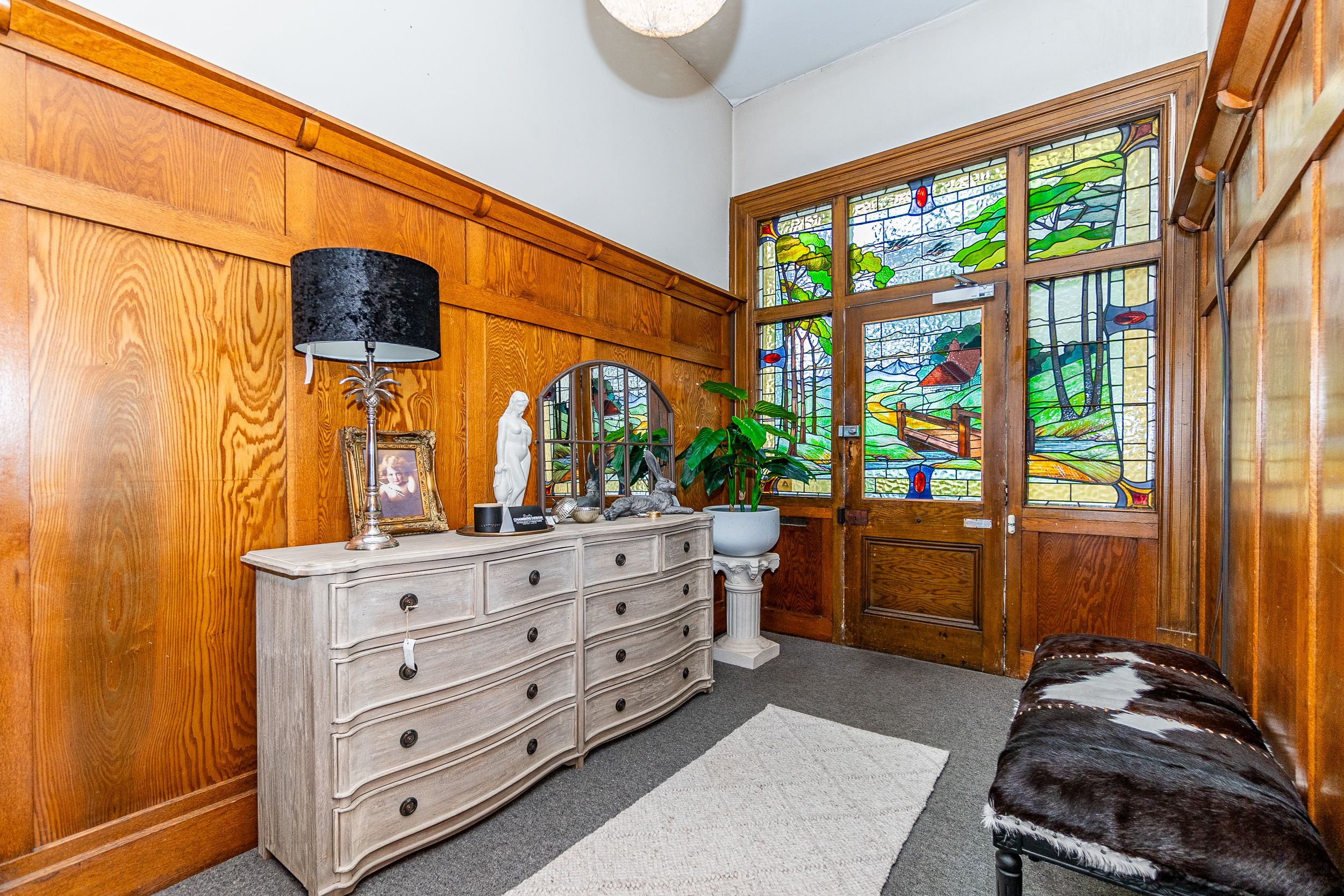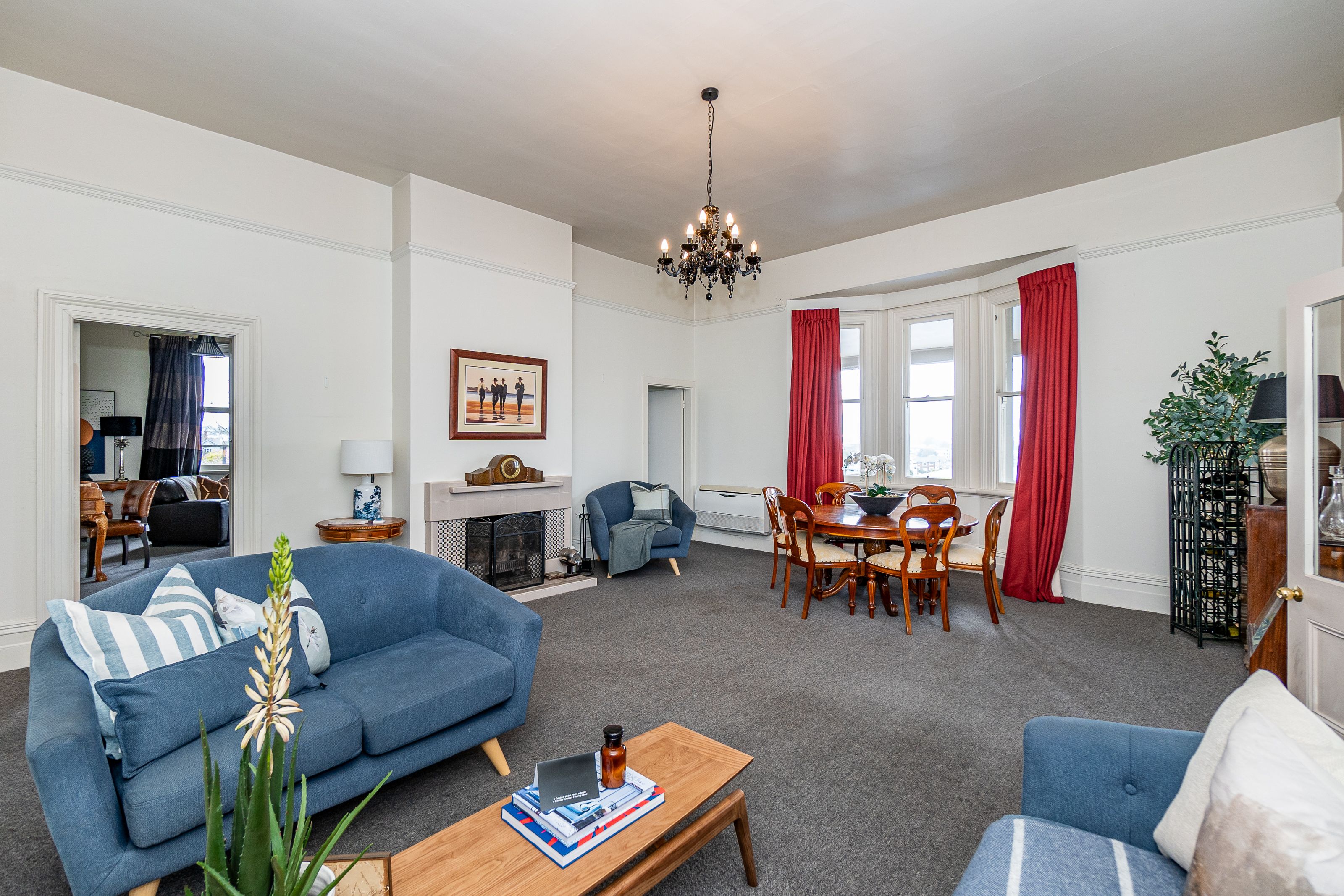 4 King-sized bedrooms, 4 living spaces 2 bathrooms, and heat pumps to keep you cosy in winter and cool in summer. Multiple living spaces. With a kitchen downstairs and upstairs to suit various needs. Ideal Air BnB or large home/ business or convert back to flats. The woodwork and leadlights are done with precision craftsmanship and materials rarely seen nowadays.