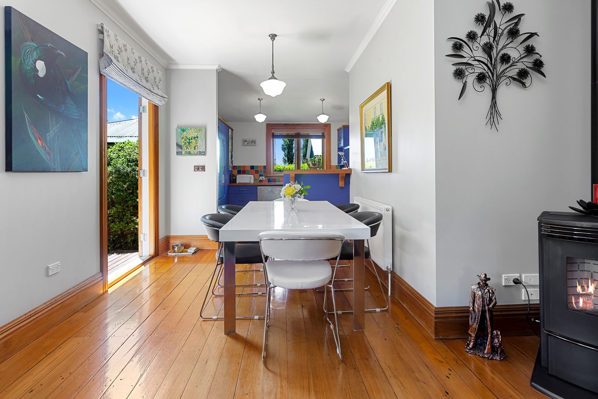This home has been lovingly maintained, boasting three double and one single bedrooms, a well-appointed family bathroom with a second toilet. Large Open plan living areas make for ease of access to the courtyard area which is a true delight. Timber floors create timeless appeal, and French doors provide excellent indoor/outdoor flow with the added convenience of a studio or office/yoga or artist's space a real bonus. Let us not forget the Pallet fire and central heating with radiators in every room to keep you snug in those Winter months.