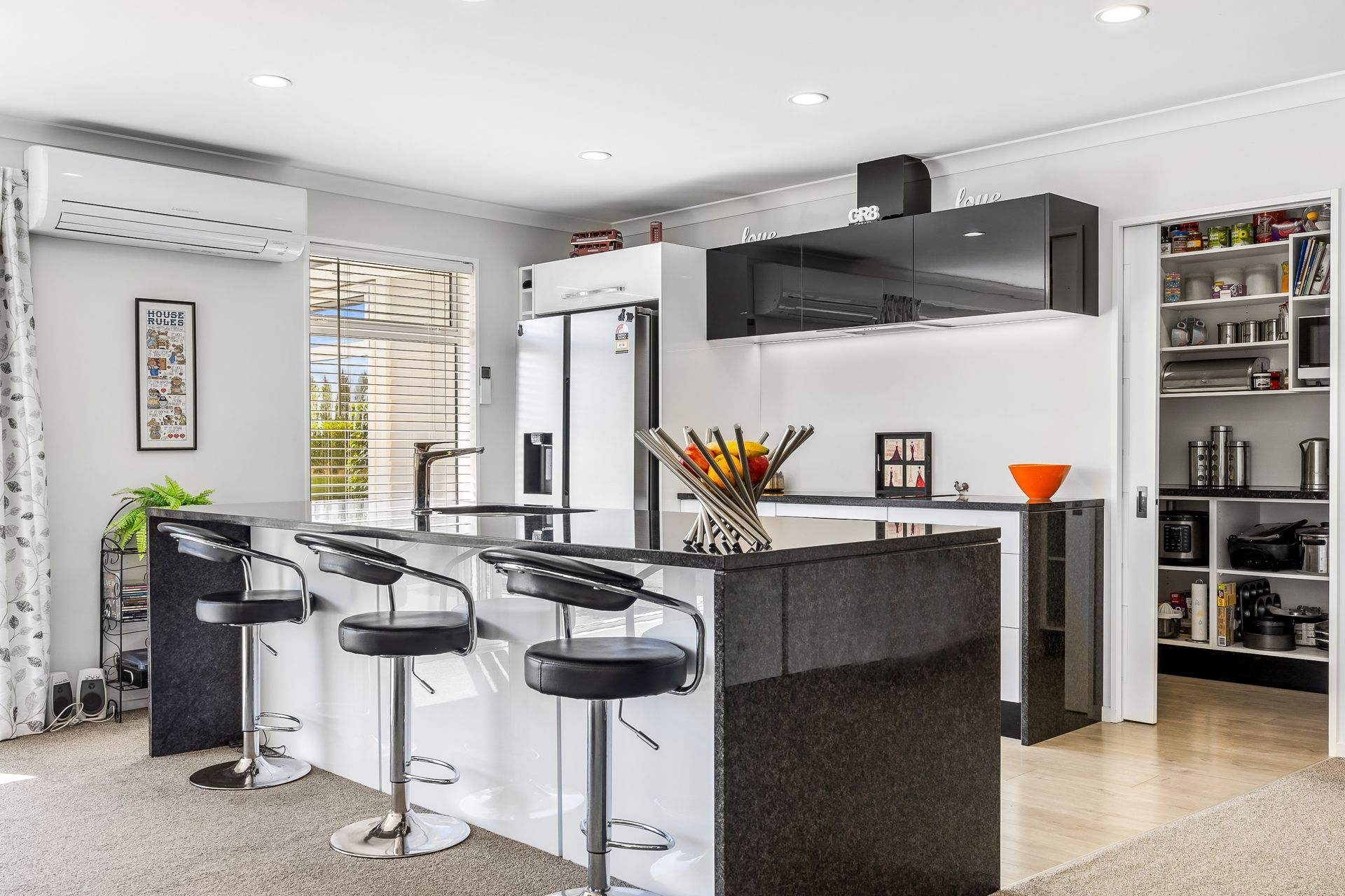 • A butler's pantry complementing the well-appointed kitchen with stone benchtop and plumbed double fridge space.