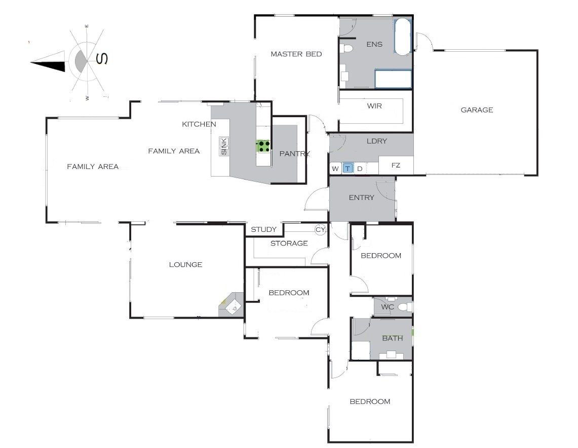 • Established garden with sheltered raised vegetable planter boxes and large 3x3m garden shed.