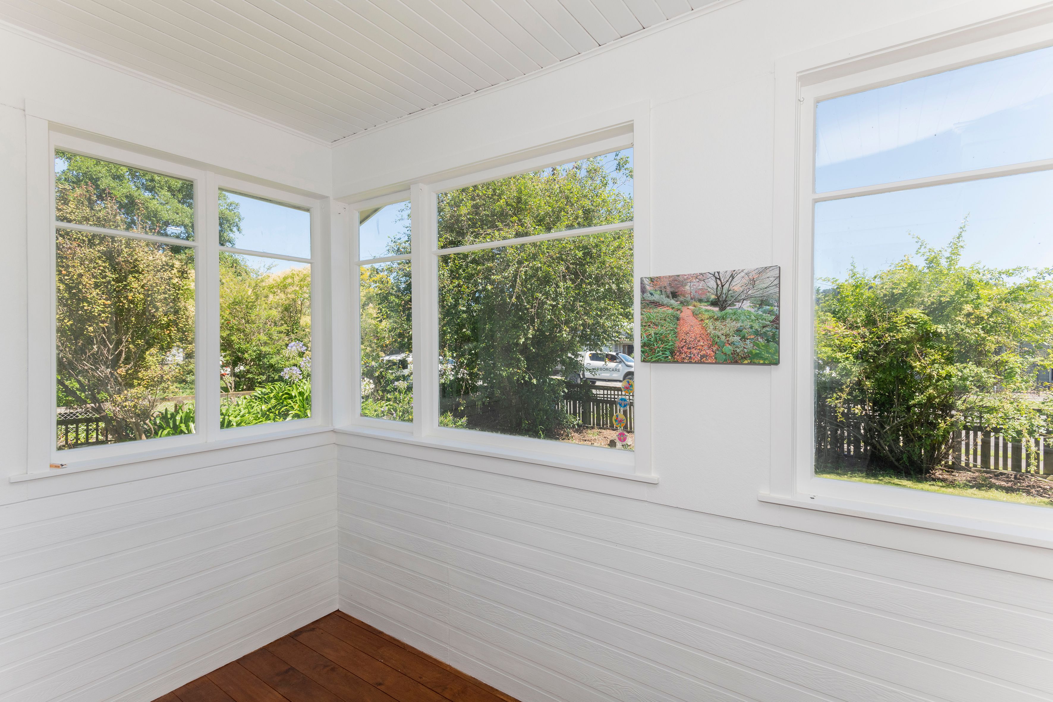 A covered deck at the rear of the home makes alfresco dining a breeze whatever the weather, while the low maintenance garden and fully fenced section provides ample space for kids and pets alike. A combined single garage/ workshop means there's plenty of room for storage or really making sure broken appliances are broken. While the real added bonus is the sunroom at the front of the home, perfect for the home office or an additional living area.
