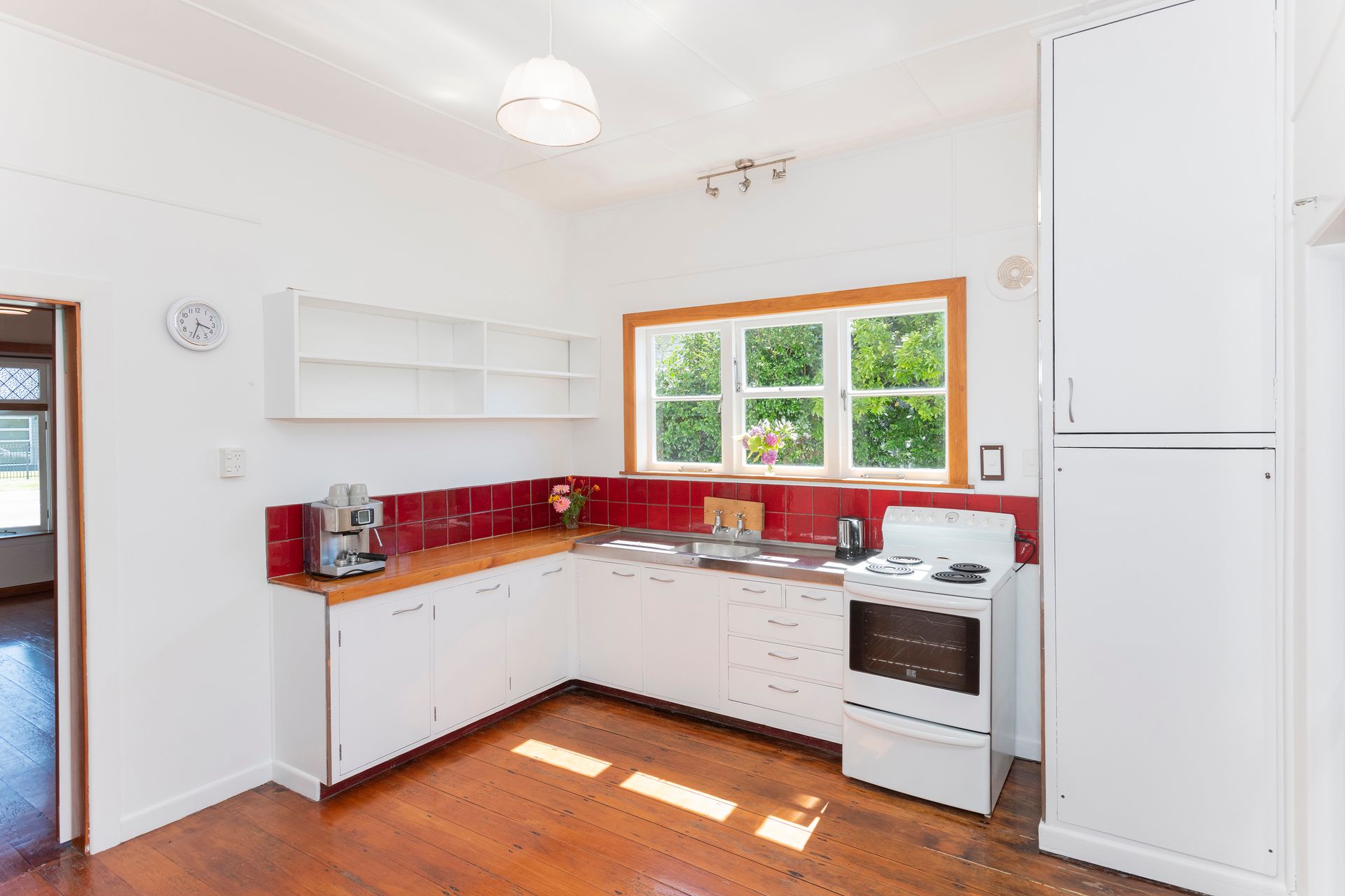 The benefit of the hallway running the length of the home, is the fact that there's two sets of walls between the living and sleeping areas, so there's very little disturbance between the both. The lounge and kitchen sit side-by-side and feature stunning native floorboards, and like the rest of the home, allow plenty of room for the whole family. Perfectly functional as it is… however, savvy buyers will see the opportunity to create an open plan living, dining and kitchen experience.