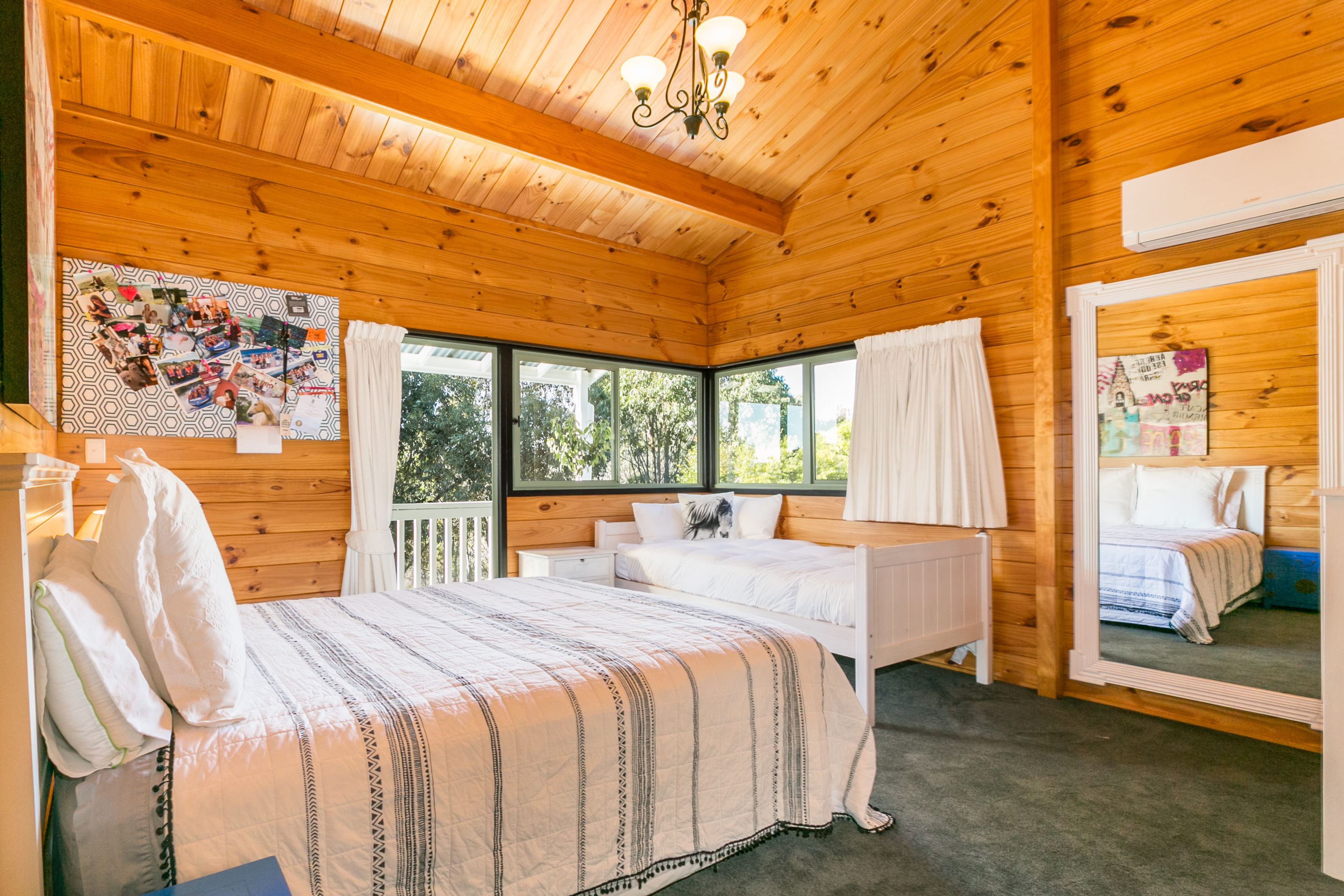 Native birdsong plays to the backdrop of mature established gardens and many tree varieties including avocado, birch, oak, gum and the paddocks run into a meadow like a postcard, beautifully green in the summer heat while woody and stunning on a blue winters day.