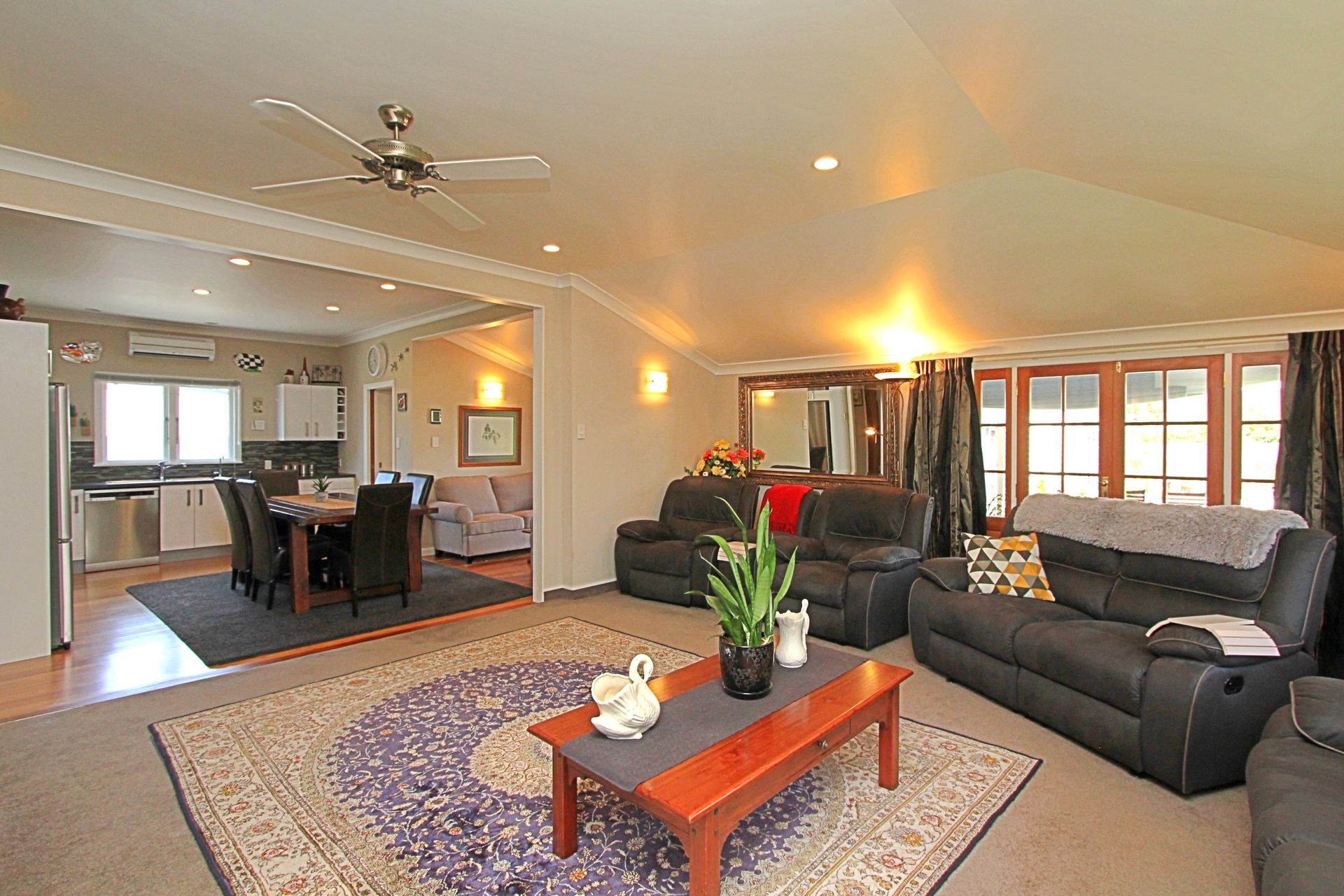 The spacious lounge with french doors has a touch of elegance and offers options to embrace that sought after indoor outdoor flow. The bathroom includes generous storage space and there are two toilets in the home.