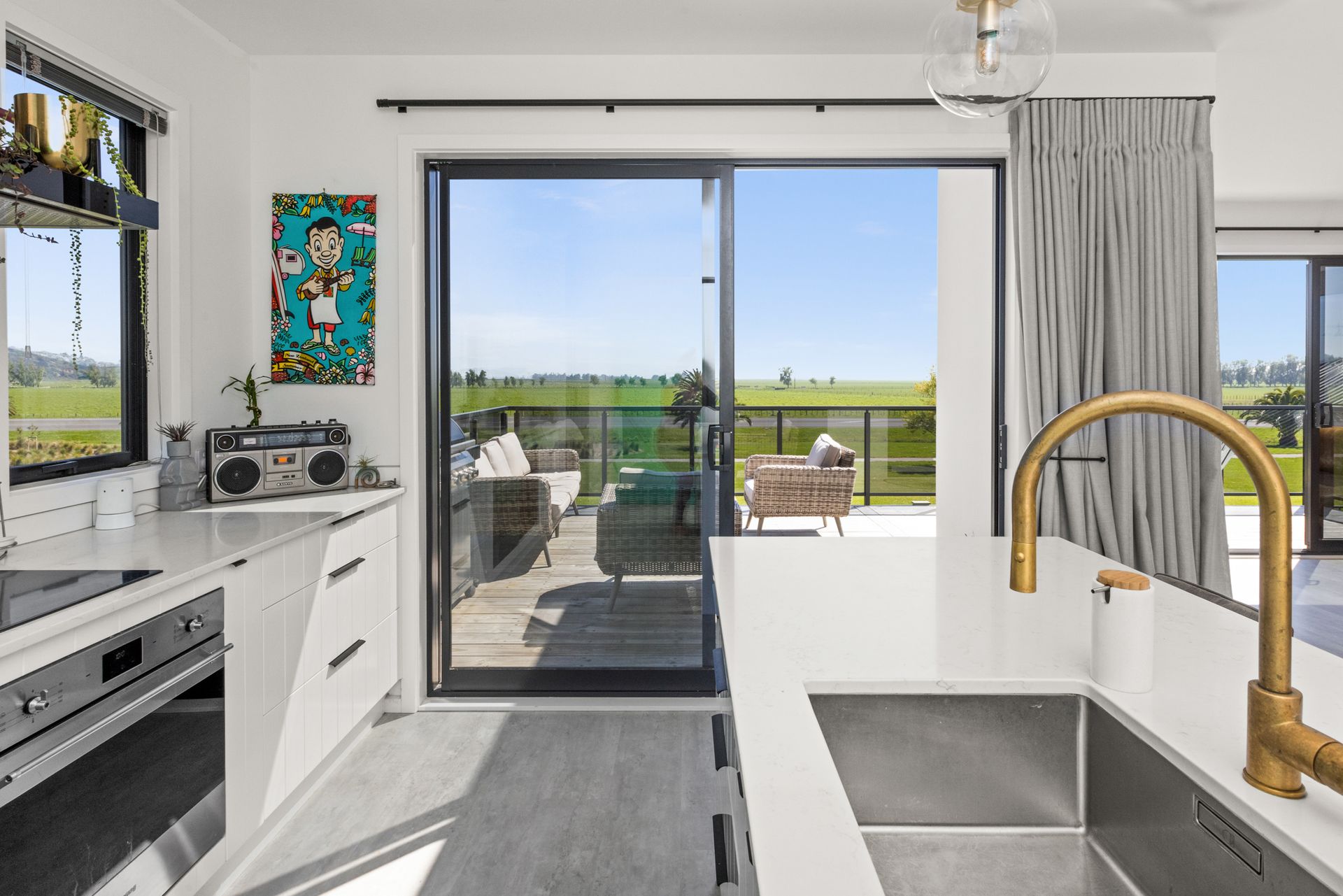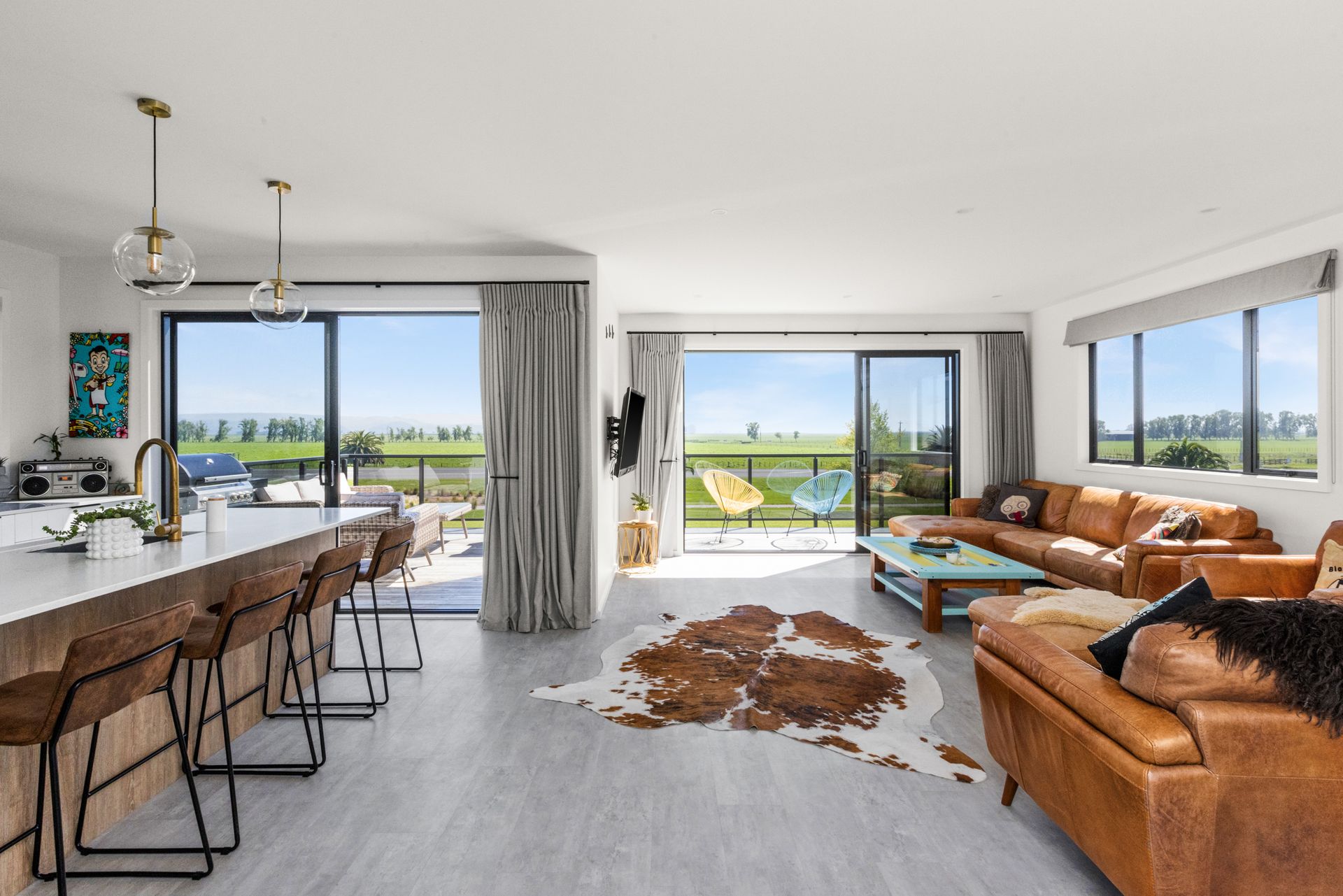 Dual alfresco options beckon, the expansive balcony offering breathtaking semi-rural views and the sheltered patio below surrounded by lush green lawns.