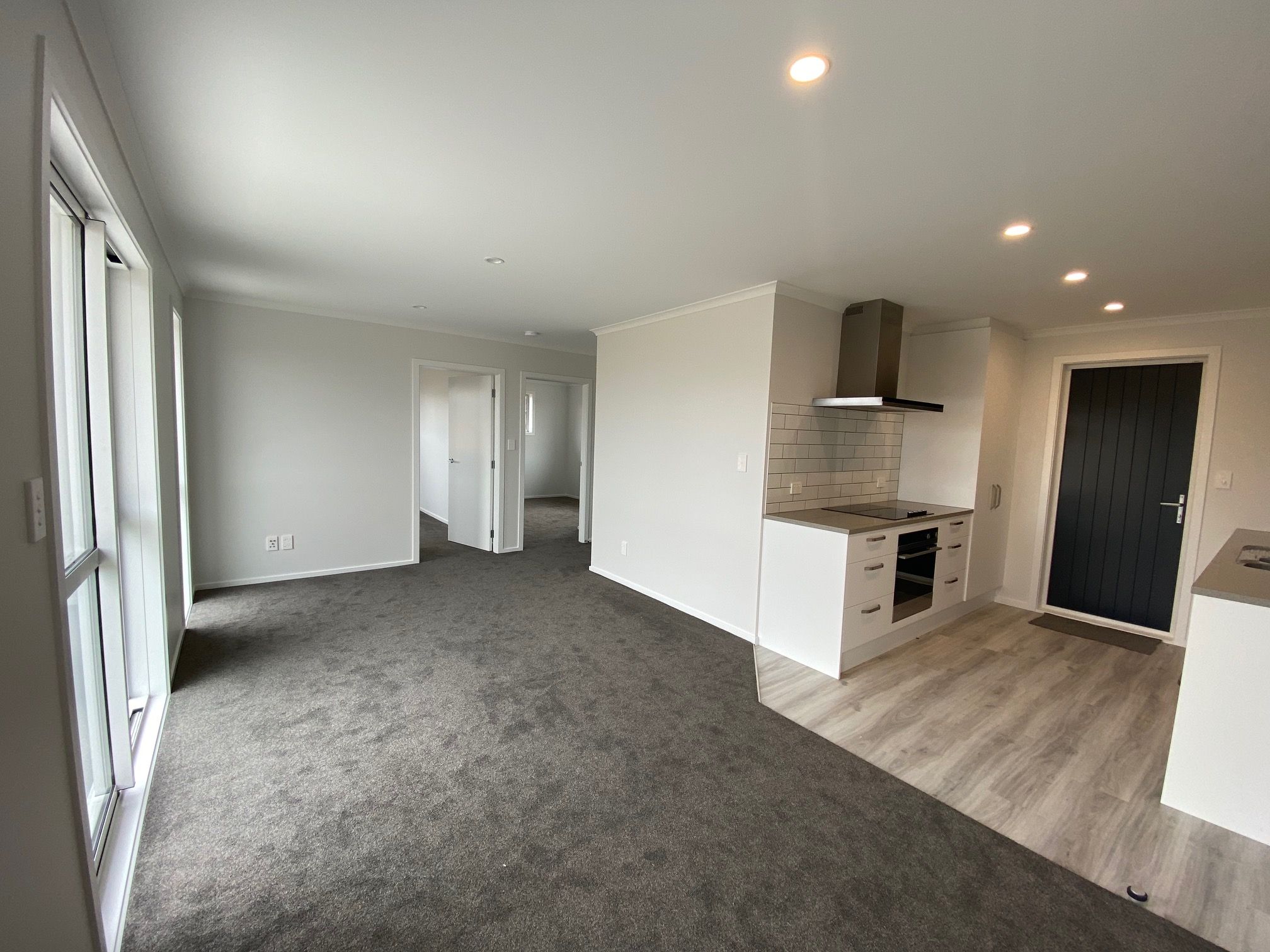 Open plan living, the kitchen and living area surrounded by windows letting all the natural light stream in all day.