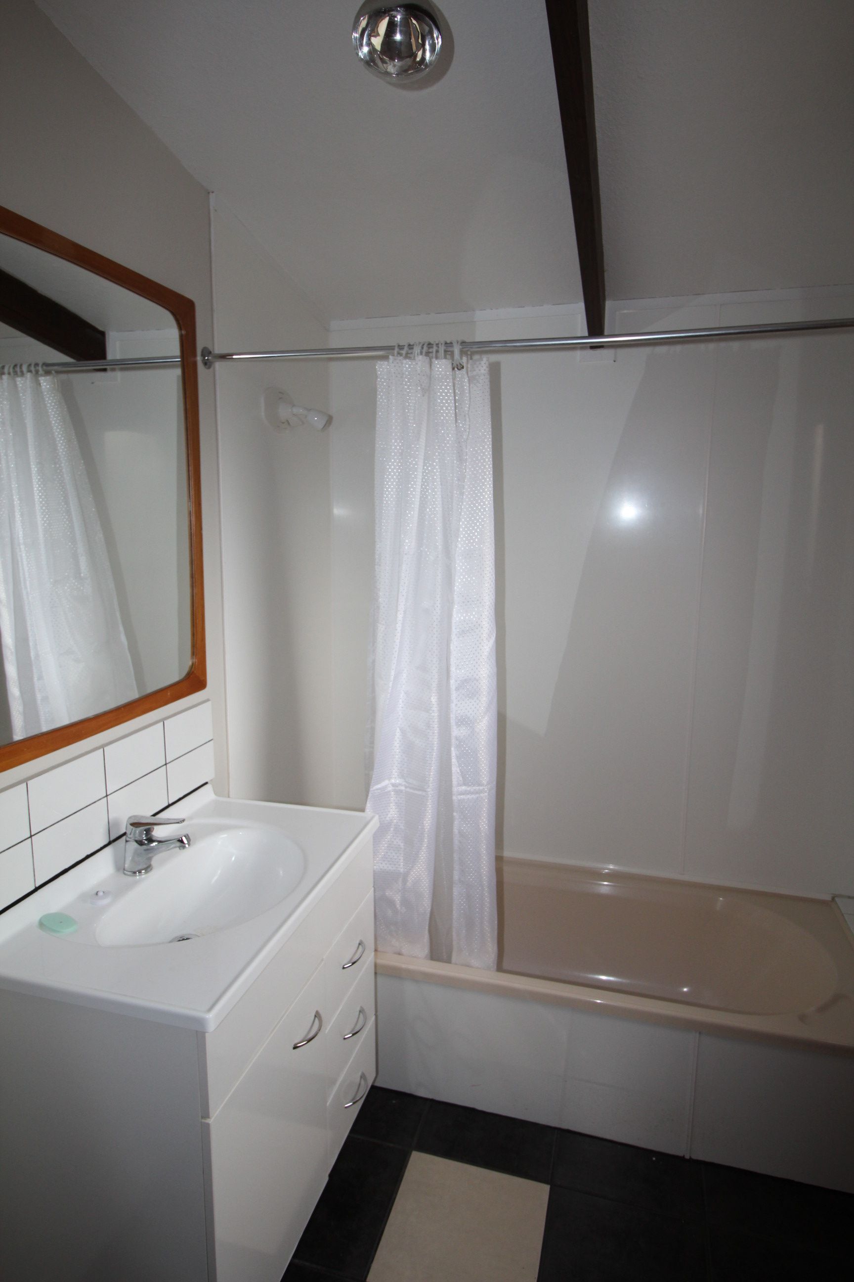 The bathroom has a shower over bath, separate toilet and laundry.