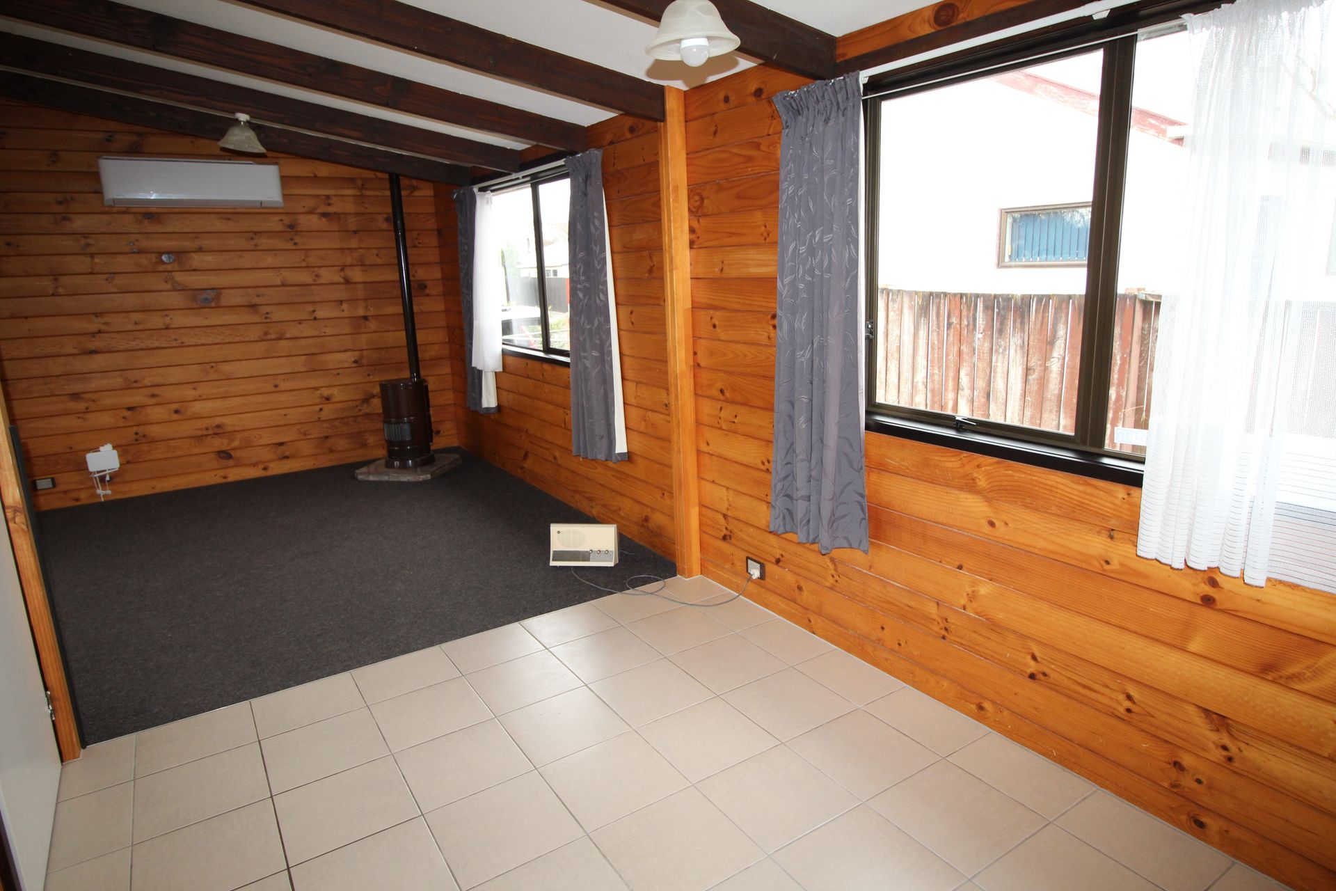 The kitchen has plenty of cupboard space with a open plan dining room and lounge with a heatpump to keep you warm.