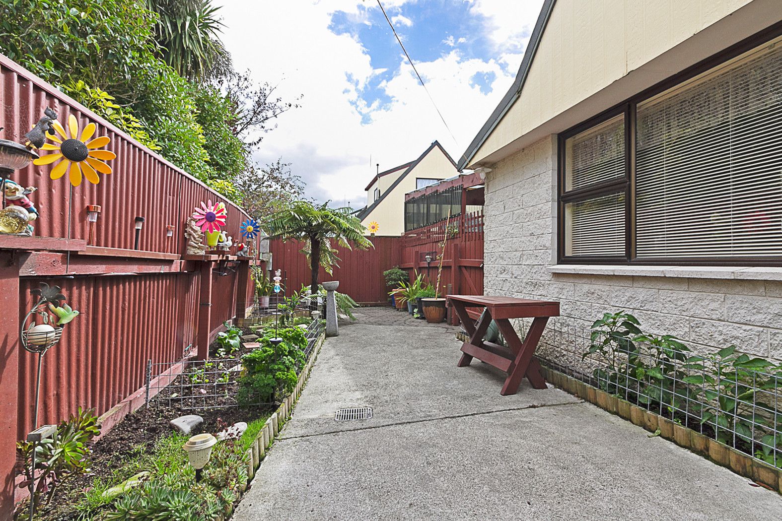 The fully fenced back courtyard is a quiet place to relax, or potter in the fantastic vegetable gardens.