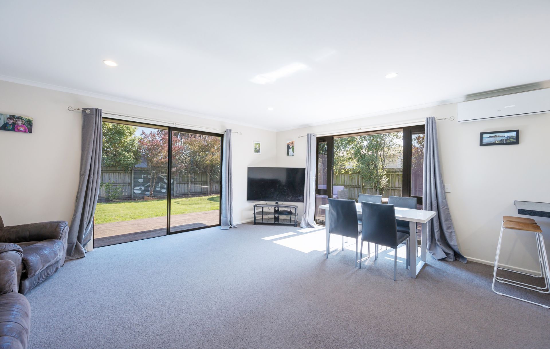 A flat grass area offers plenty of room for a trampoline, backyard cricket, or simply a safe spot for children and pets to run around. The fully fenced section ensures peace of mind, making it an ideal space for family life. With a double internal garage and additional off-street parking, you won't have to worry about where to store vehicles or outdoor gear.
