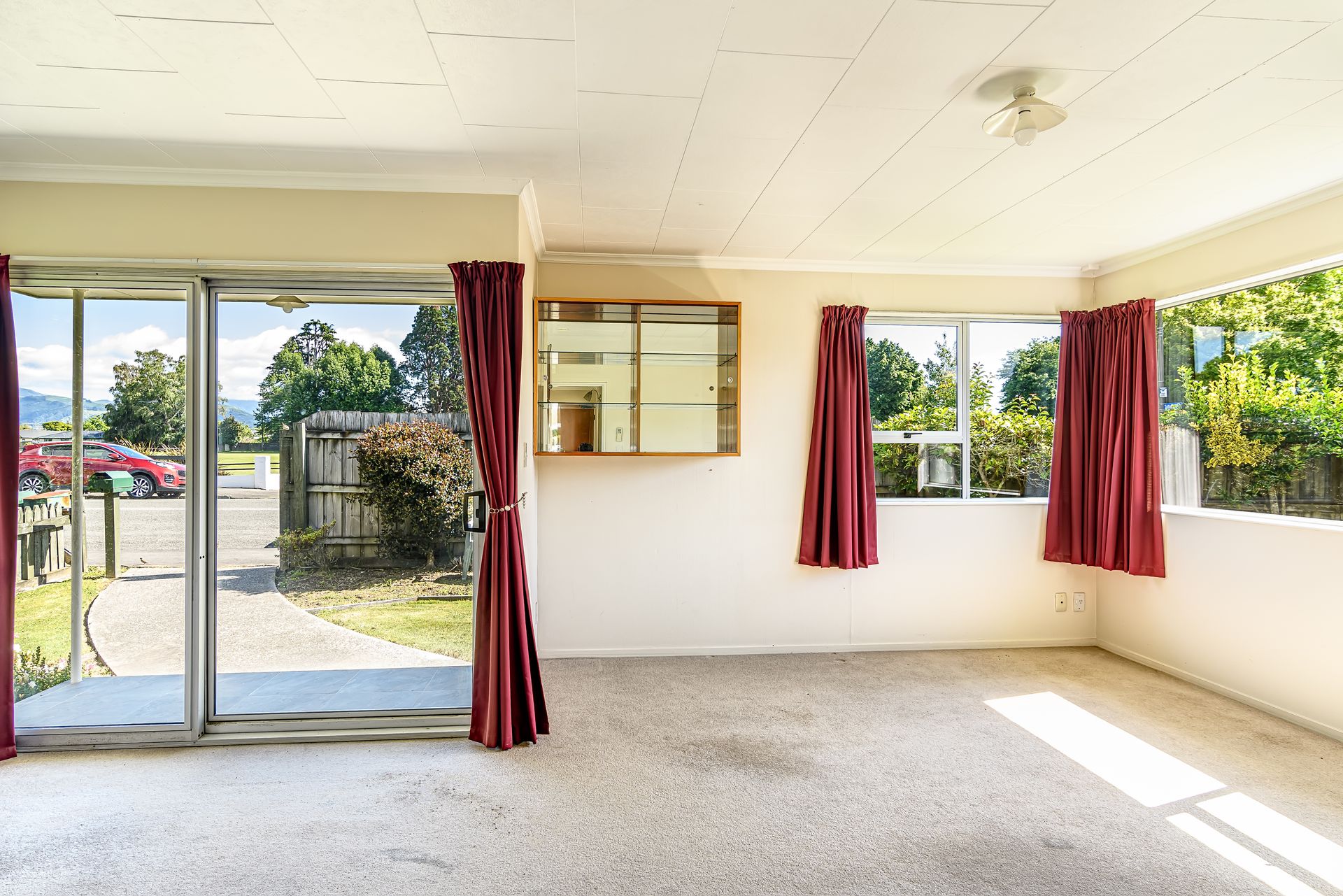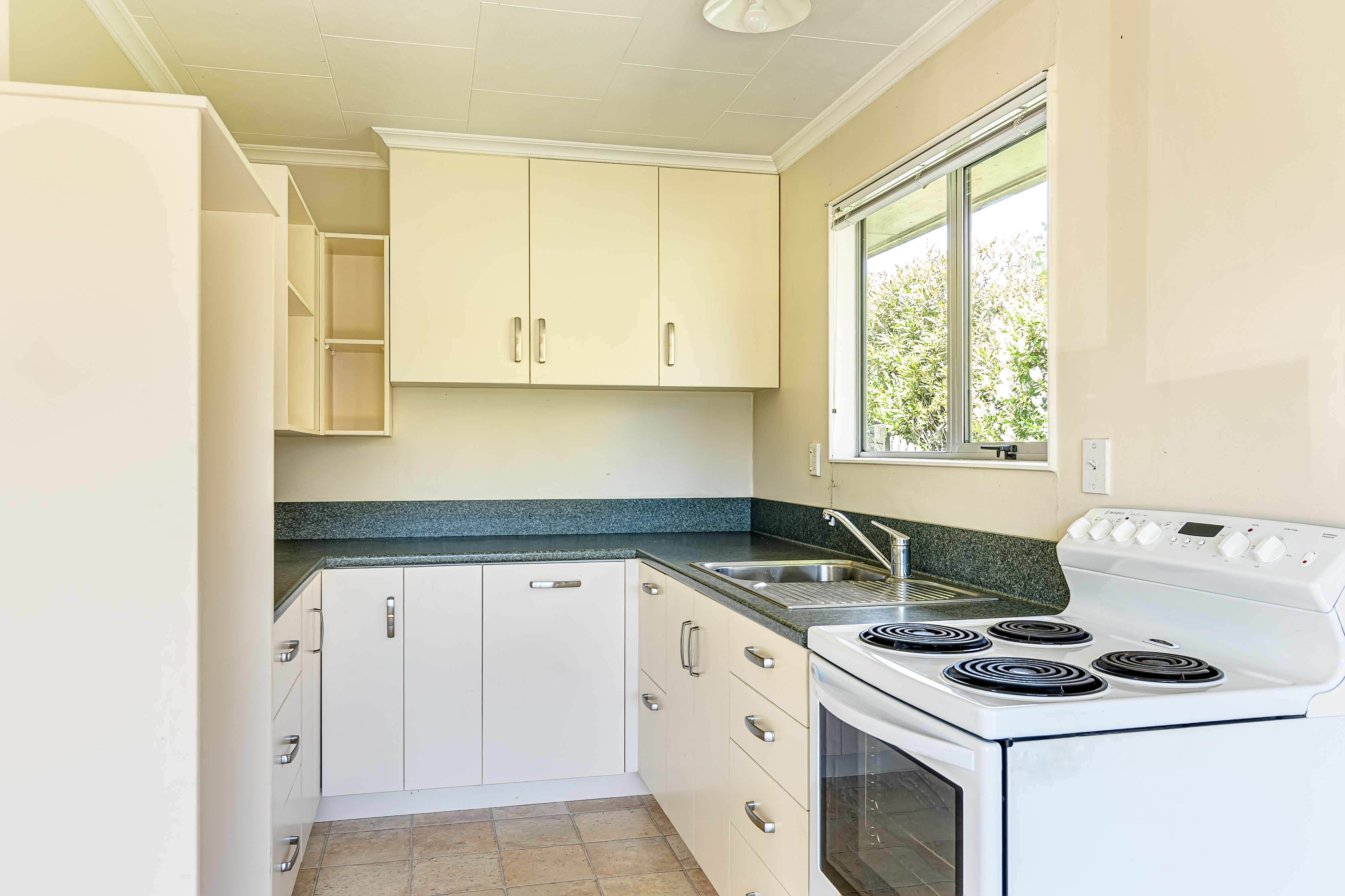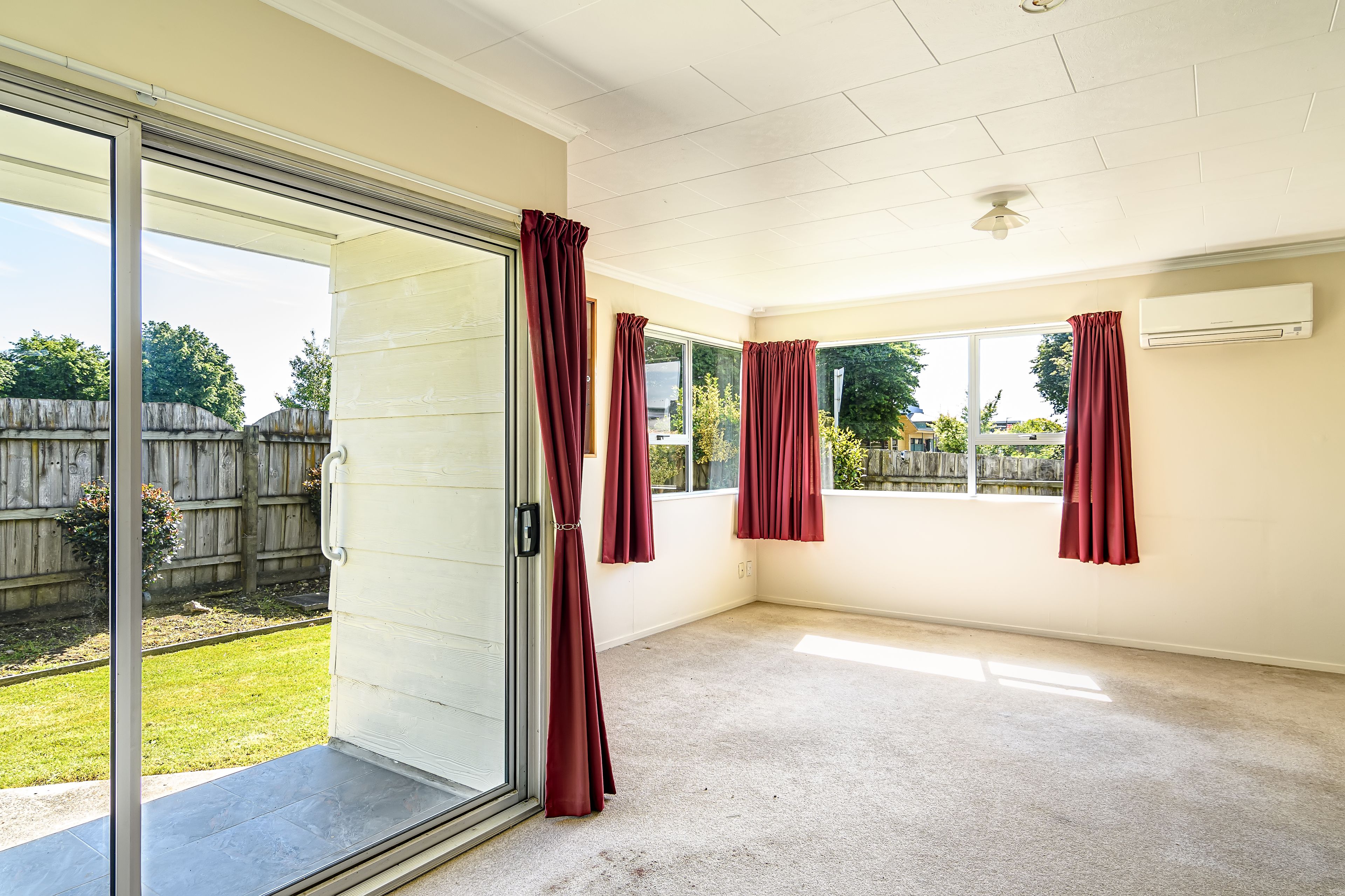 Inside, this sun-soaked home boasts a double and single bedroom, a generous bathroom and a neutral kitchen, ready for its new owners to give it a splash of colour. The heat pump and double glazing throughout ensures this home has year-round comfort.