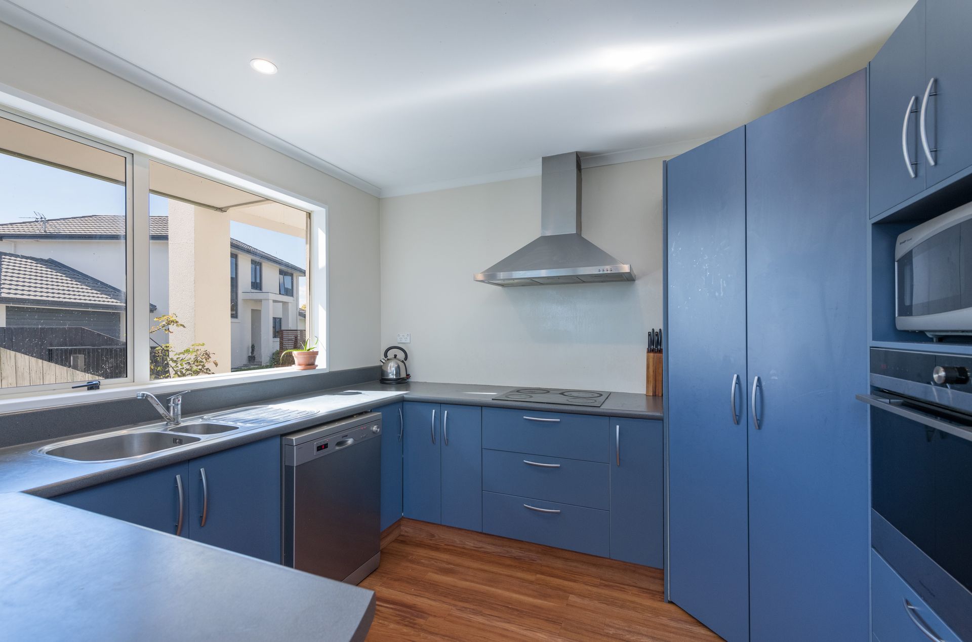 Built from Hebel block, the high quality construction of the home is evident. Open plan living on the ground floor enjoys the views, opening out to a deck for entertaining and the easy care section.