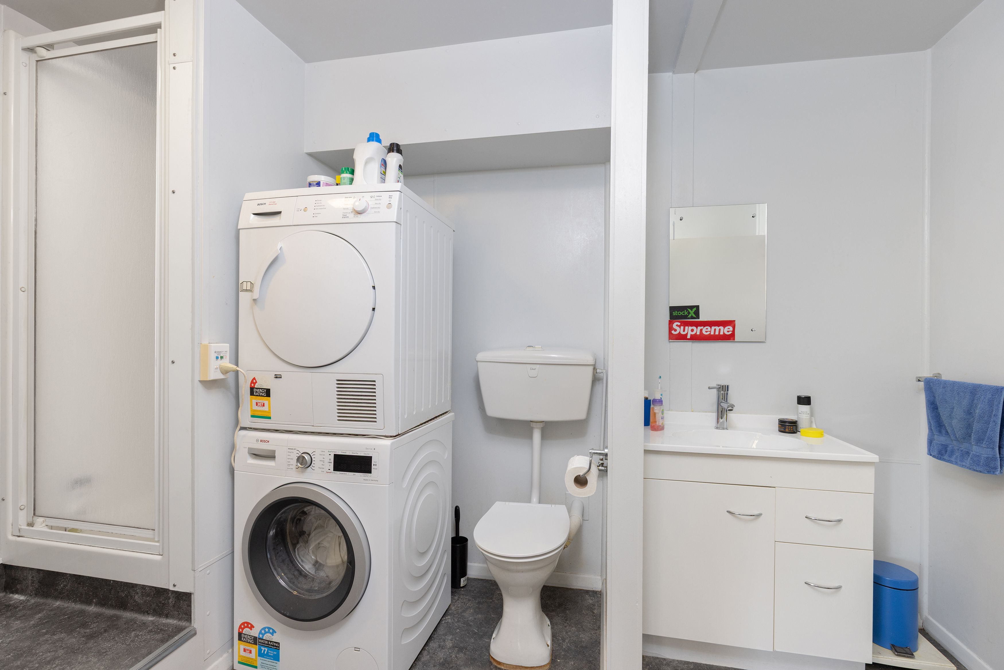 Upstairs features light-filled open-plan living and dining, enhanced by stacker doors flowing to a sun-soaked entertainer's deck - ideal for those looking for indoor-outdoor flow and all-day sun. The modern kitchen anchors the space, while two generous double bedrooms, including a large master, and a full family bathroom with separate toilet complete the upper level.