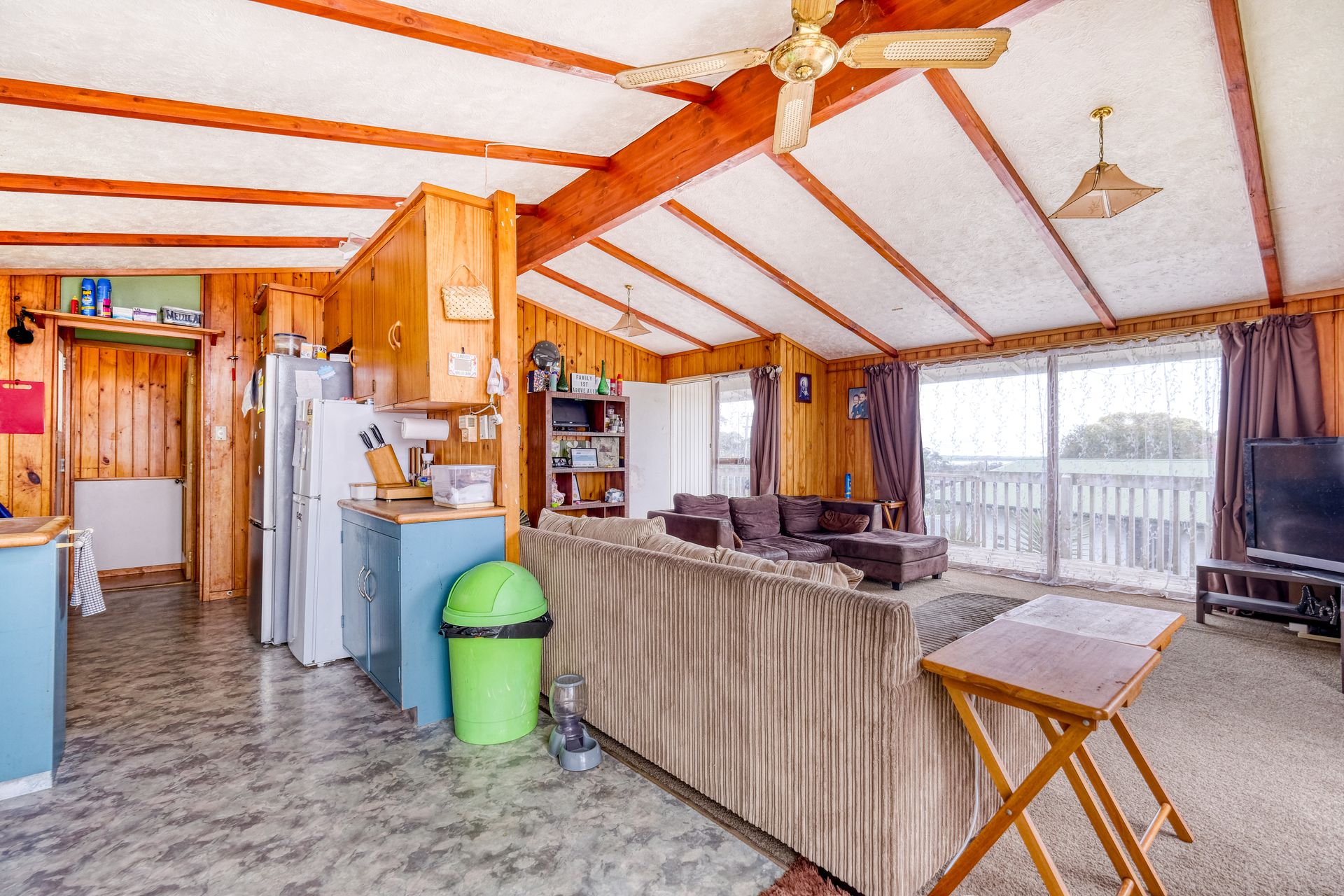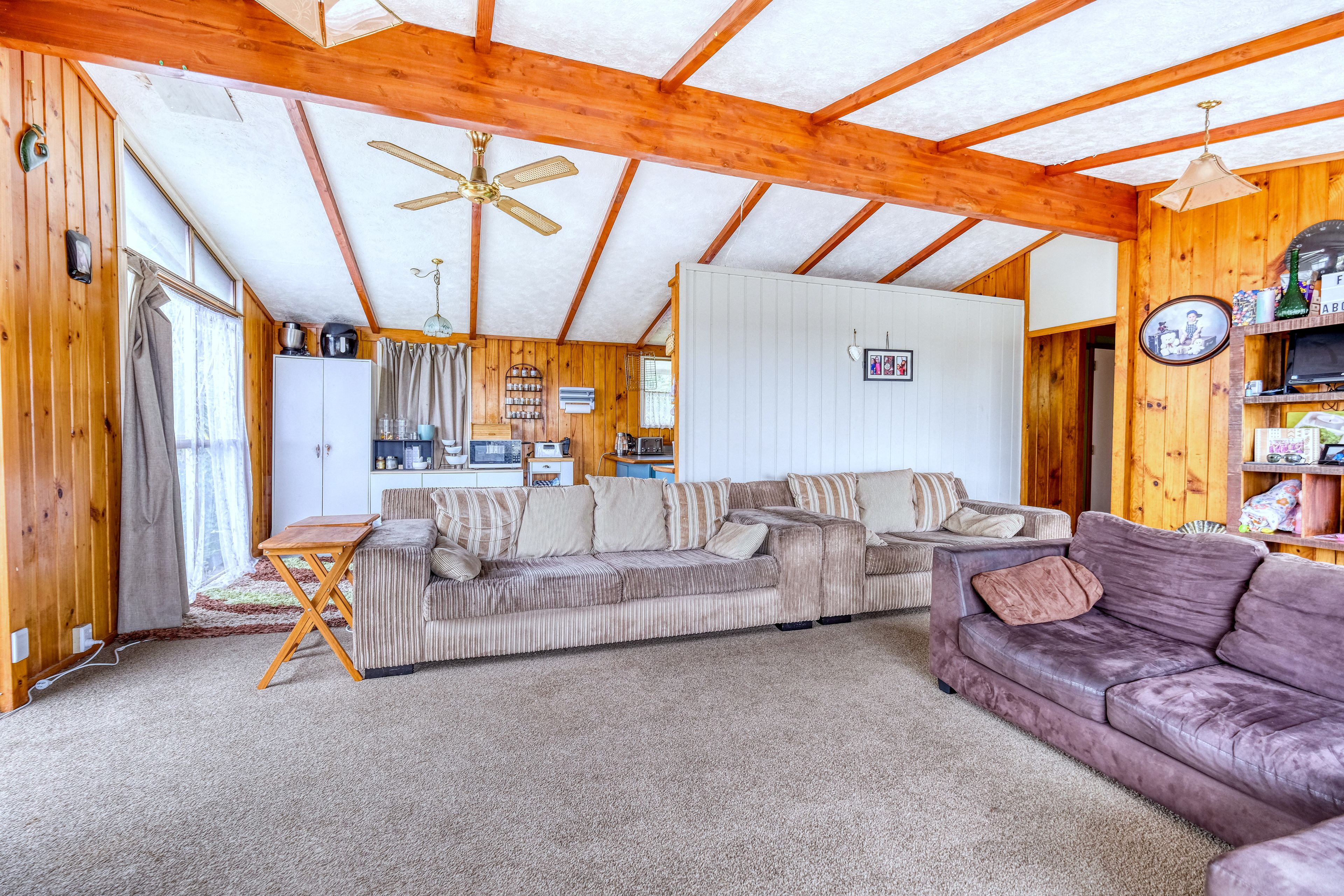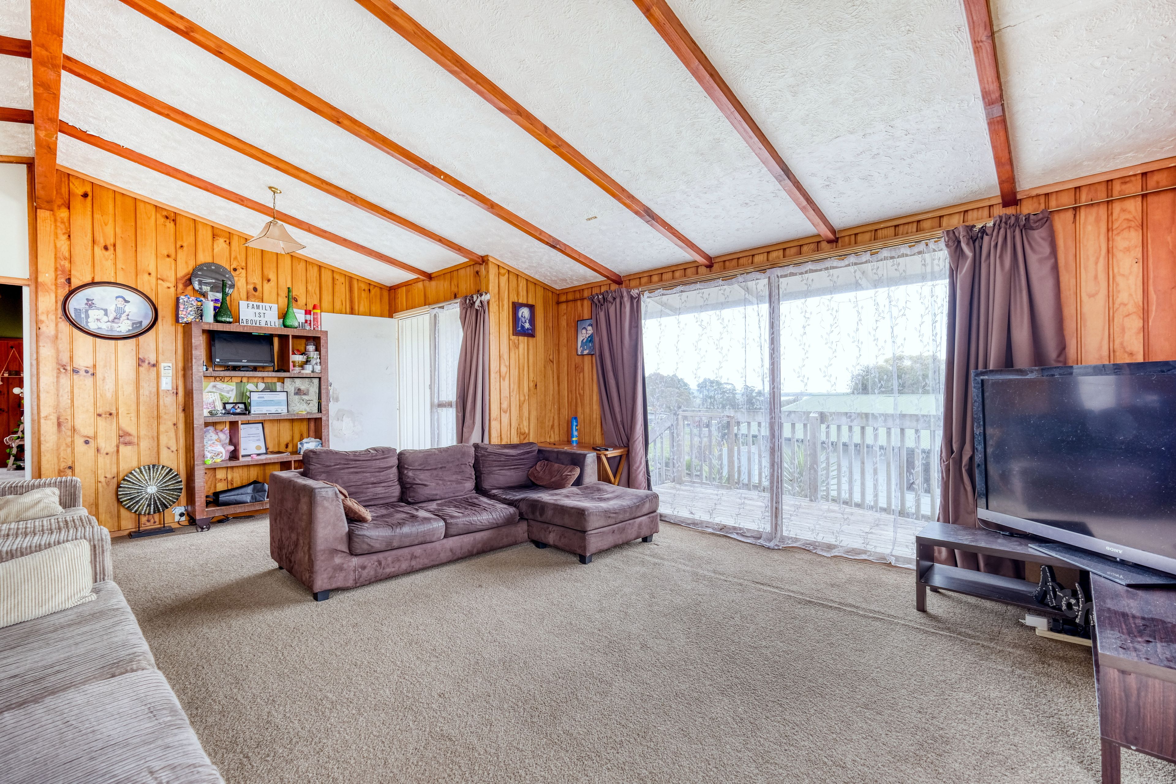This home is situated in a very good location handy to many local amenities. The upper level features the kitchen, open plan dining/lounge area, three bedrooms with timber wall panelling on the interior walls similar to a Lockwood home, and bathroom. The long running deck accessed by the front door and living area has fantastic views overlooking Kaitaia and the coast towards 90 Mile Beach.