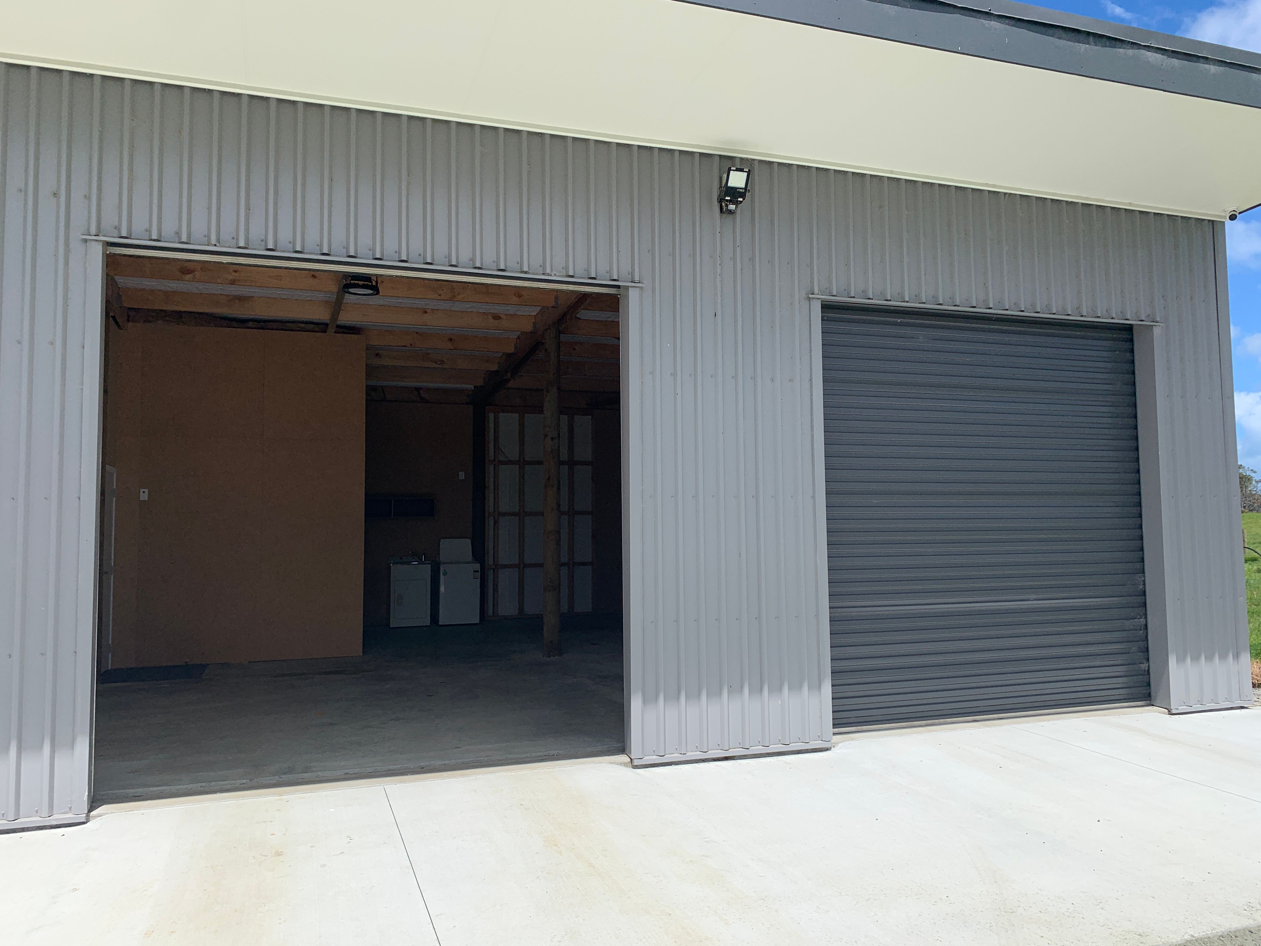 It features high stud ceilings, a large double garage with electric rollers doors, and a large metal parking area.
